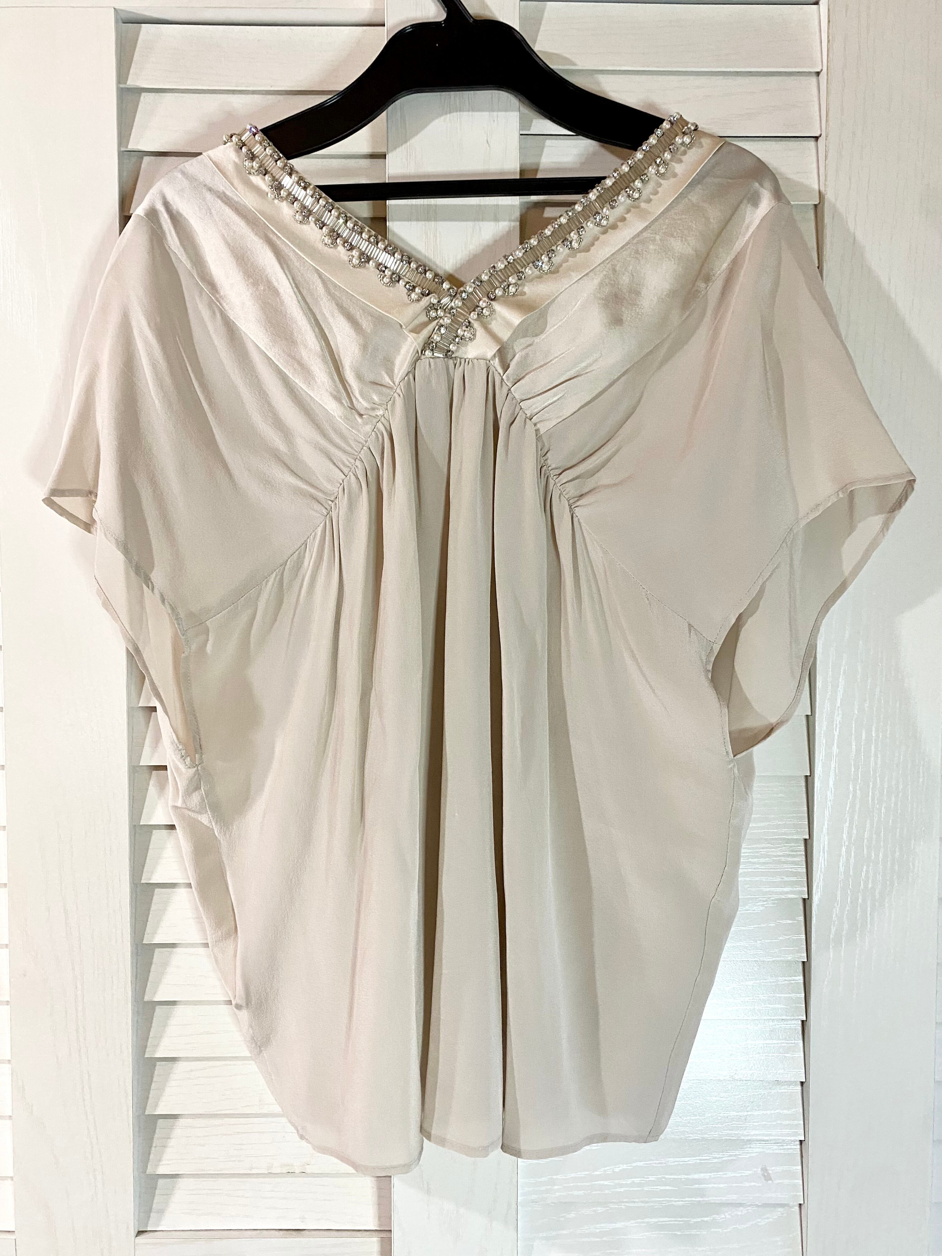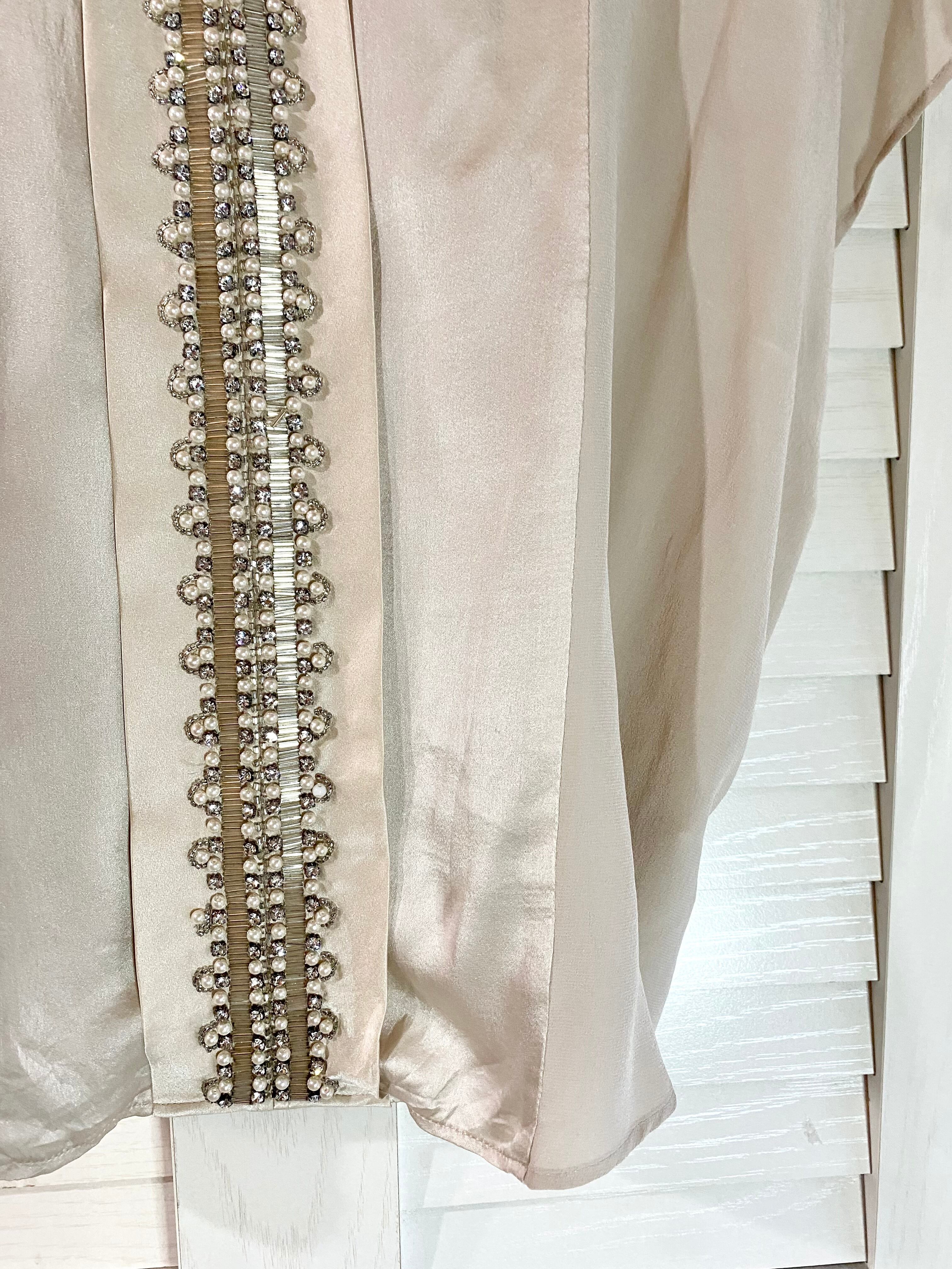 #72 GRACE CONTINENTAL ビジューカラー ヴィンテージサテン×ジョーゼットコンビ 変形デザインブラウス シャンパンベージュ