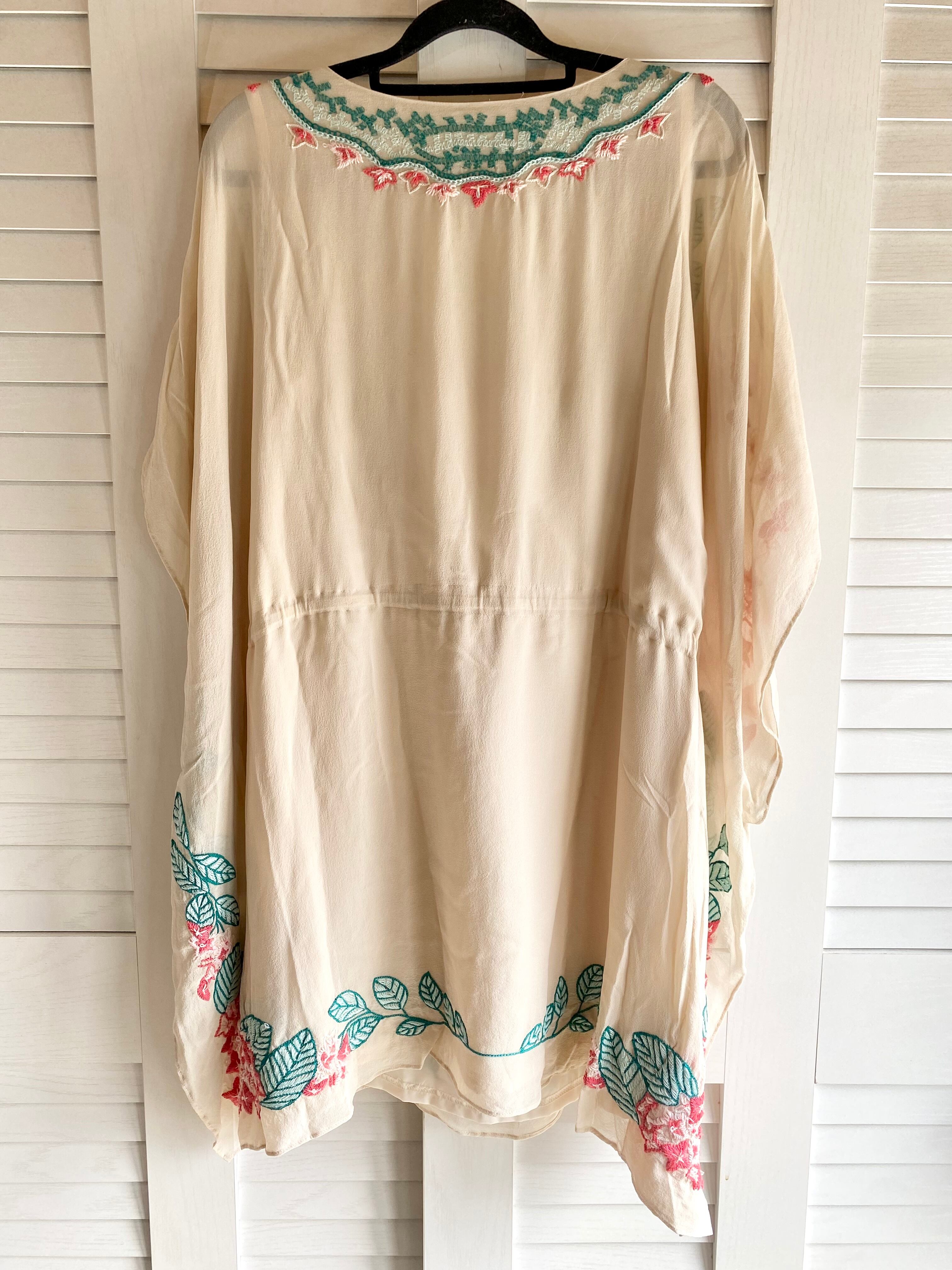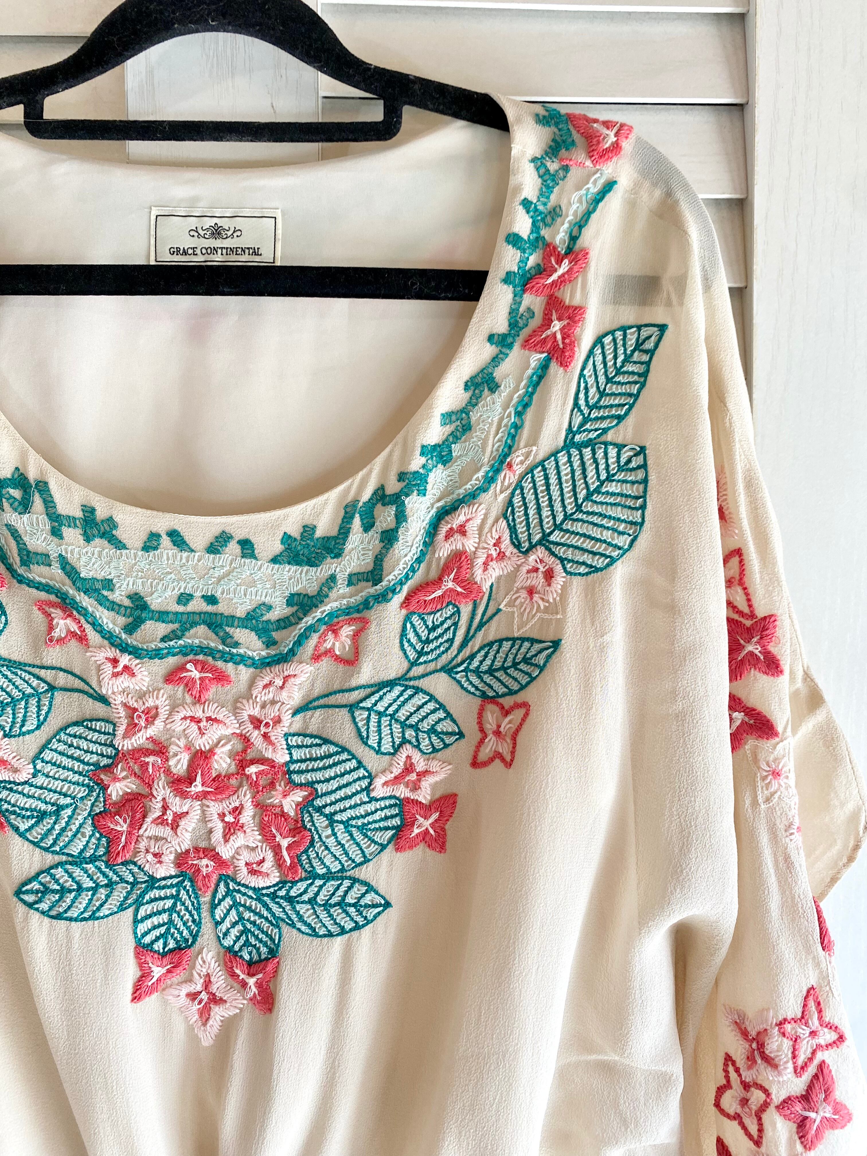 #73 GRACE CONTINENTAL 梨地ジョーゼット フラワー刺繍クリオネチュニックワンピ クリームベージュ