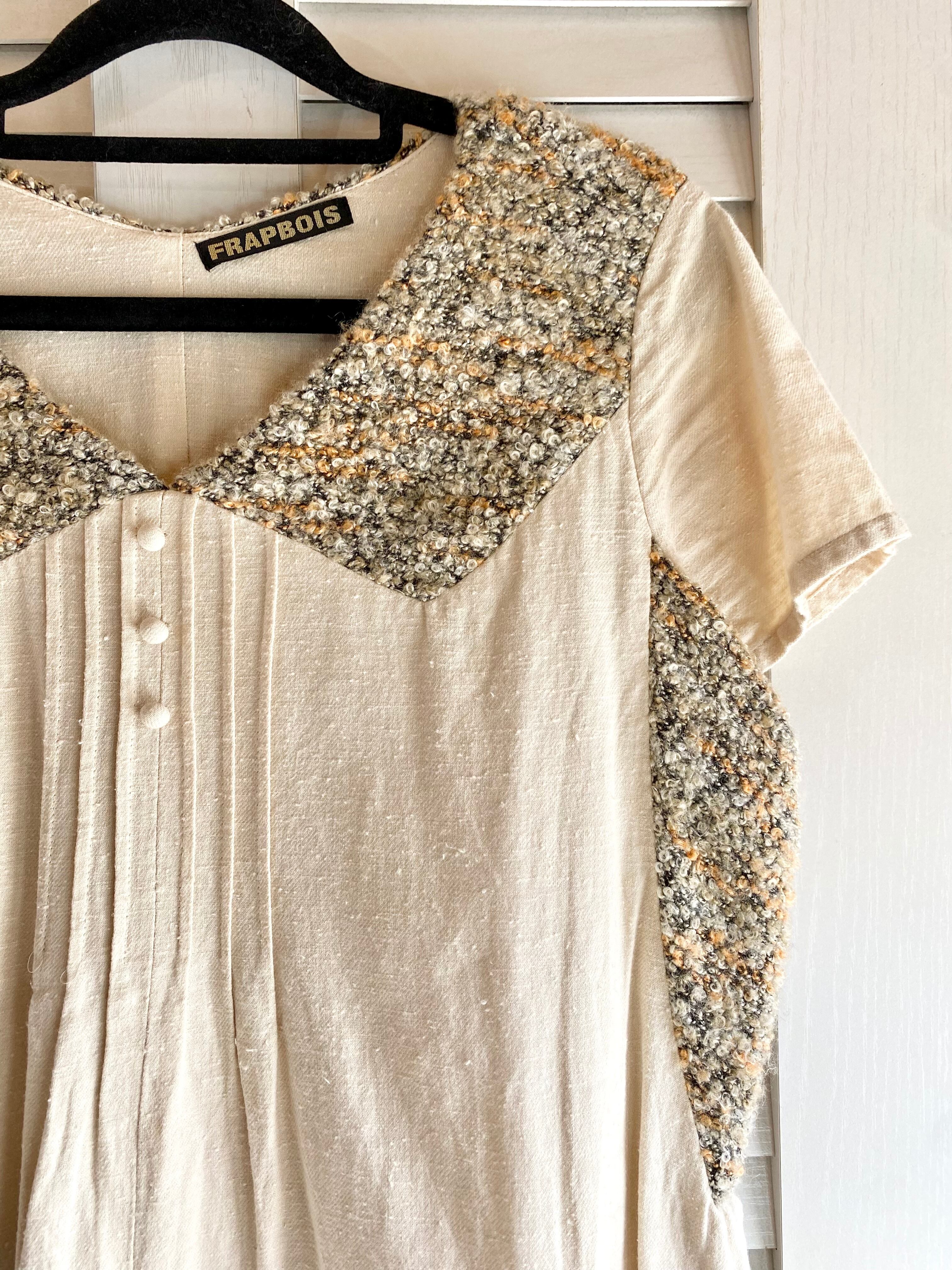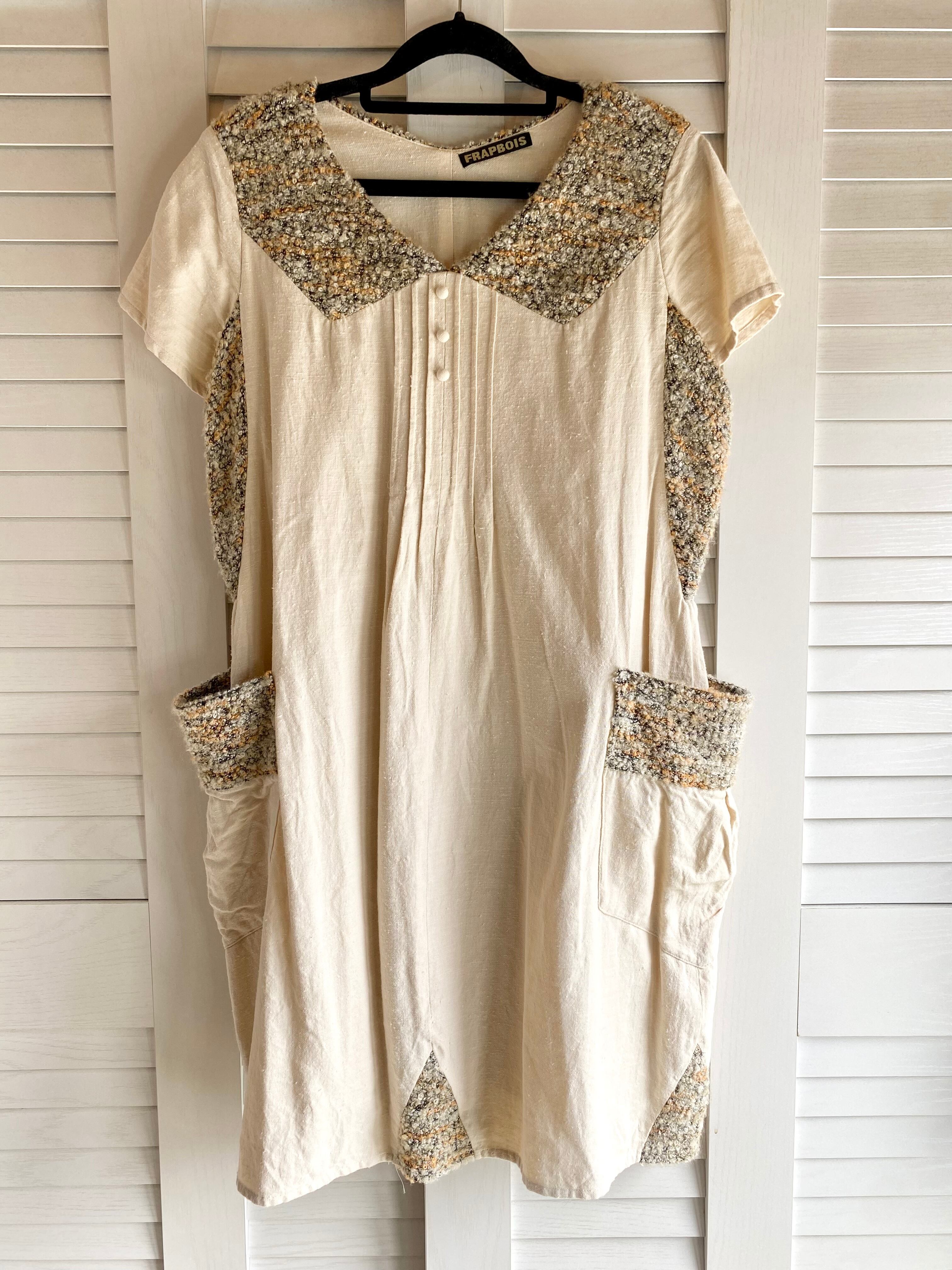 #73 FRAPBOIS ループツィードコンビ ナチュラルコットン チュニックワンピ クリームベージュ