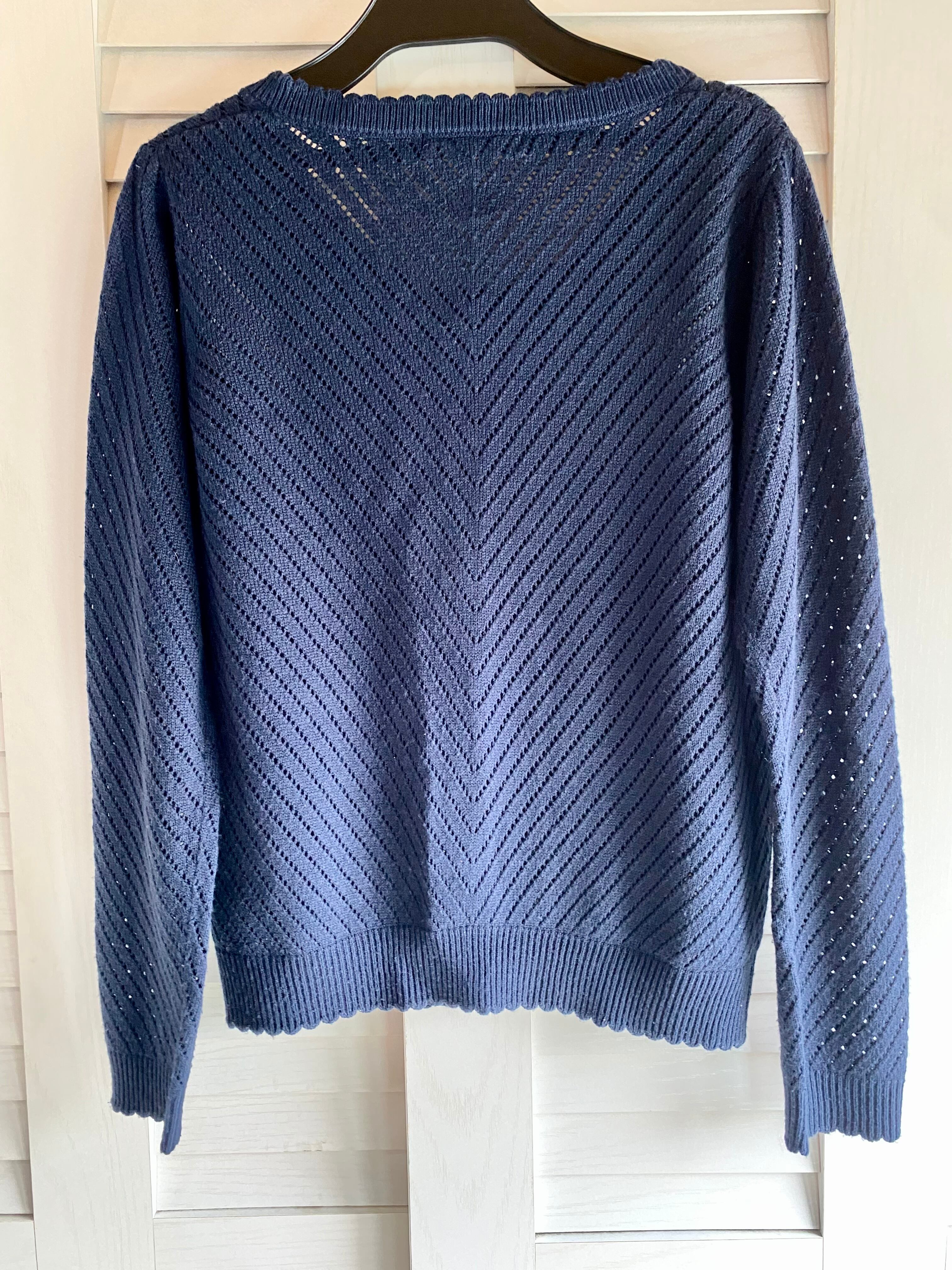 #73 OLIVE des OLIVE アンティーク風ボタン 透かし編みニットカーデ ネイビー