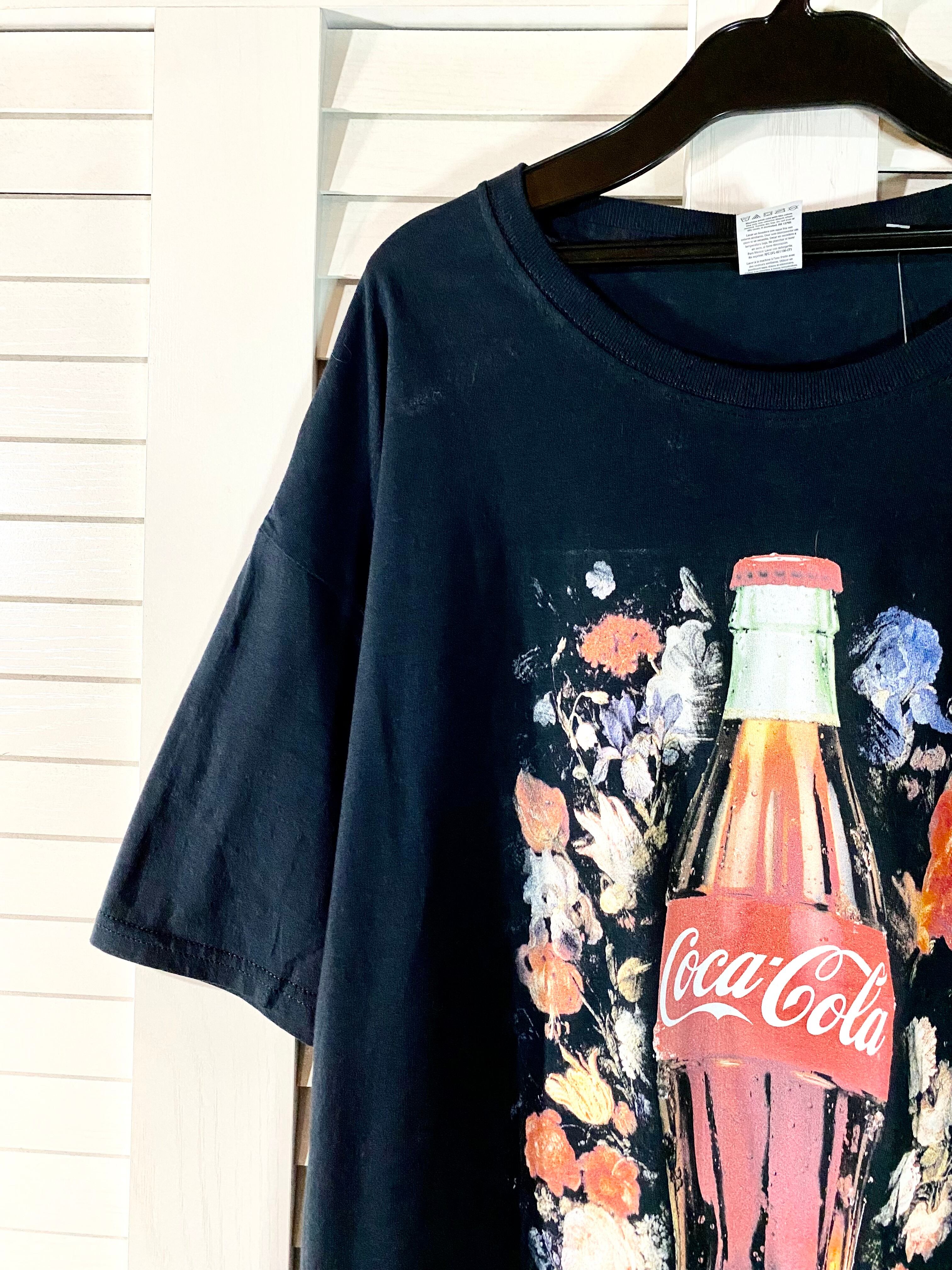 #74 THRIFTY LOOK リアルフラワー&コカコーラプリント オーバーサイズTシャツ ブラック | お洋服屋さん 『GOKKO』