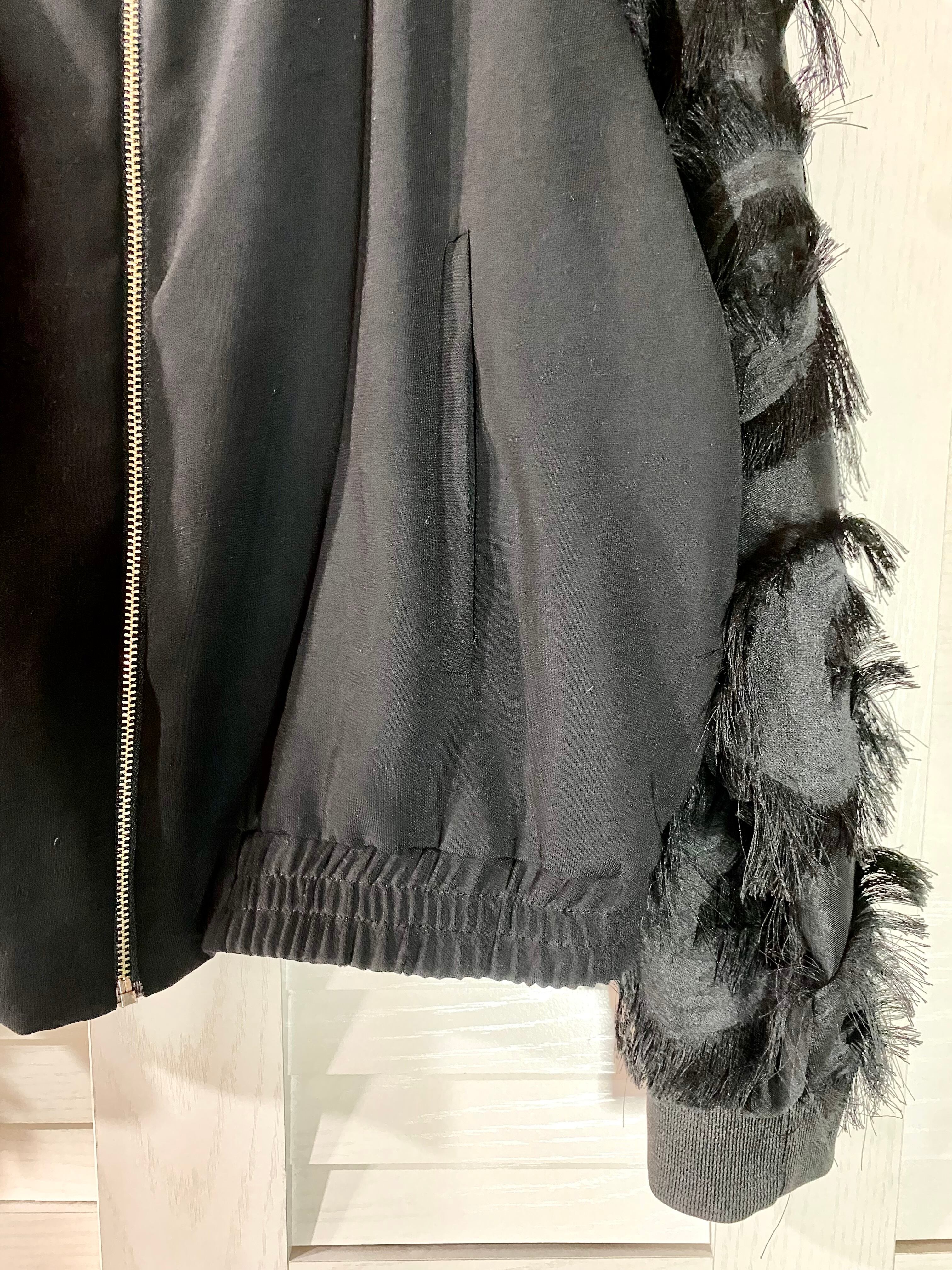 #74 ZARA もへもへペイズリースリーブ 裏地付きジョーゼットブルゾン ブラック