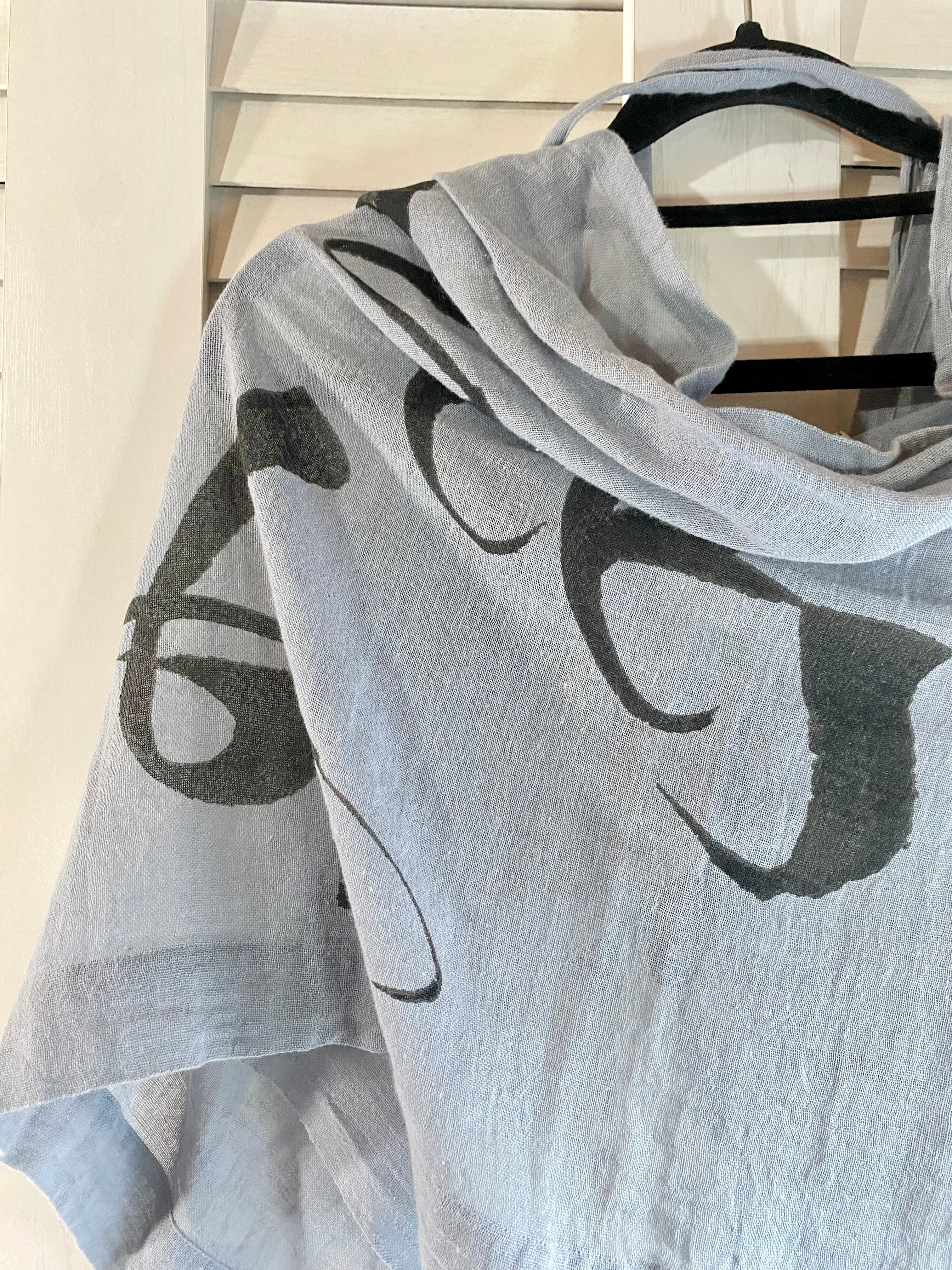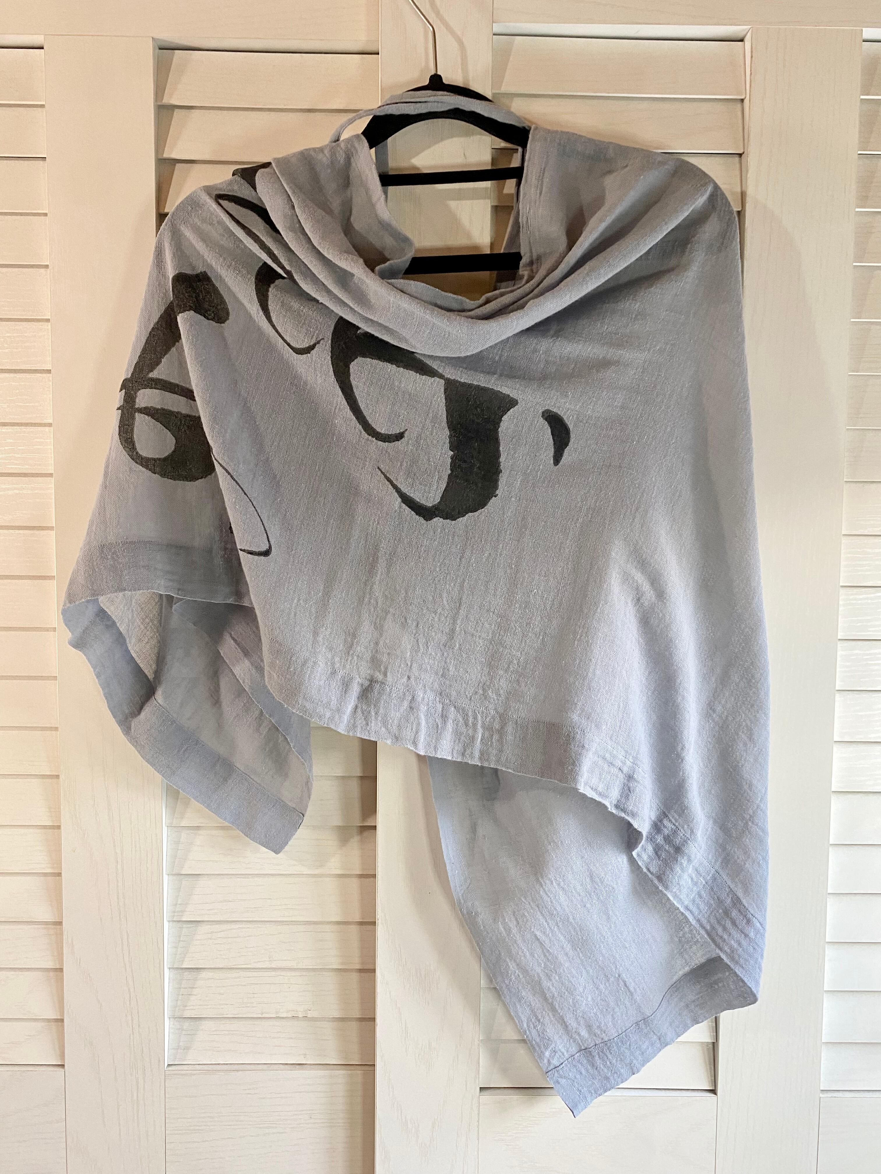 #75 agnes b. リボン付き 手描きロゴペイント ナチュラルコットンショール ブルーグレー | お洋服屋さん 『GOKKO』