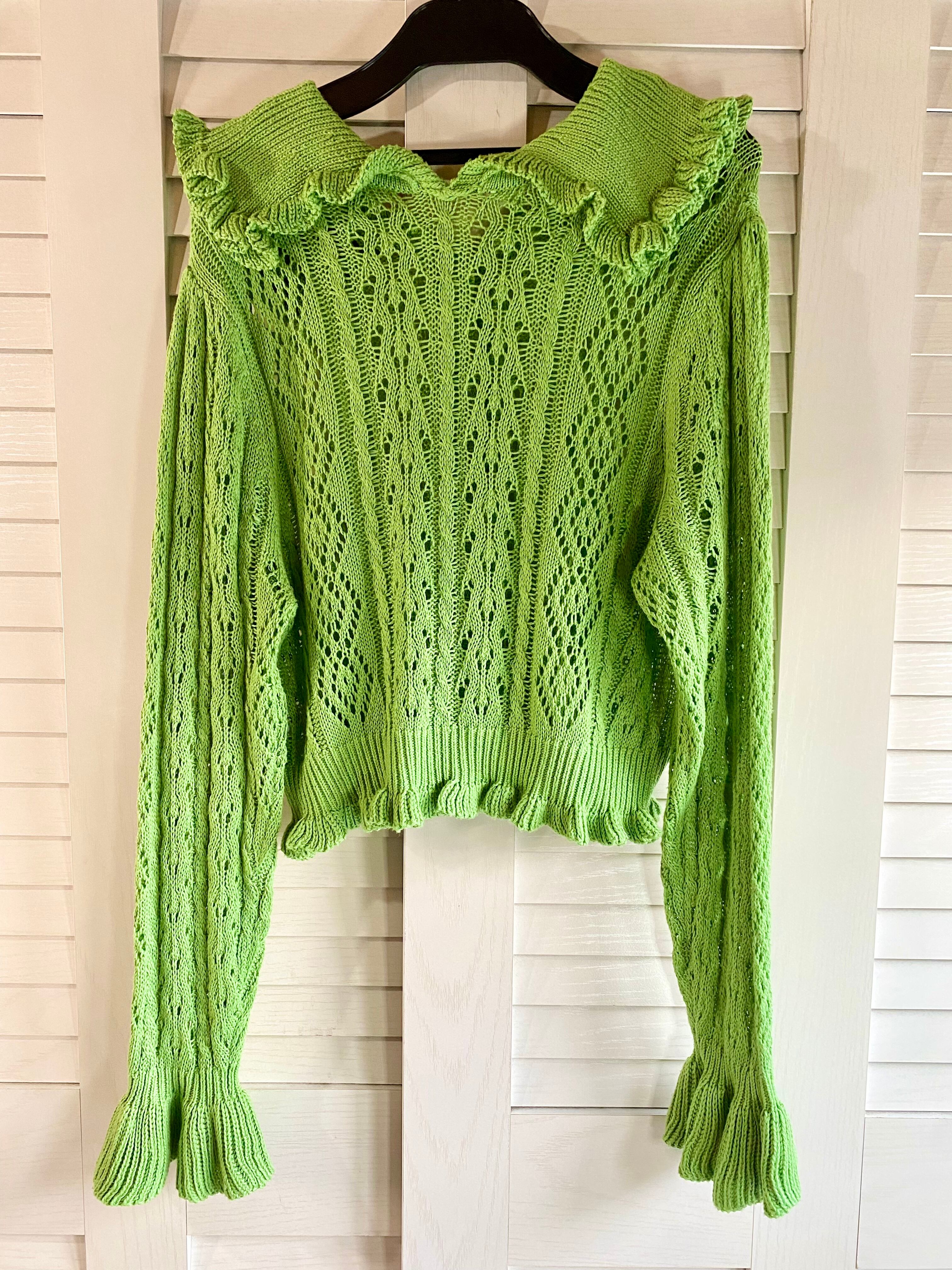 #75 jouetie BIGカラー 透かし編みショート丈ニットカーデ グリーン | お洋服屋さん 『GOKKO』