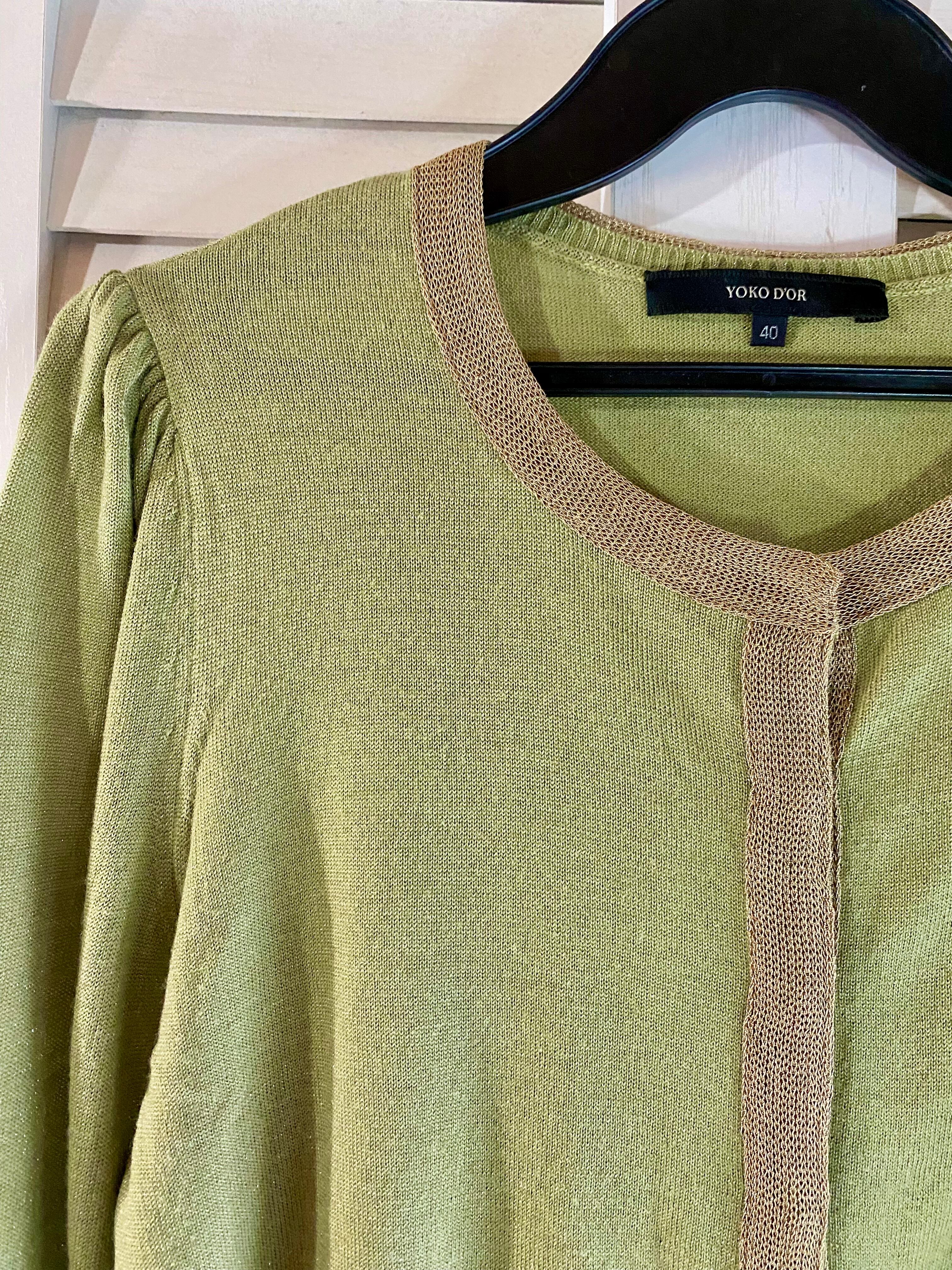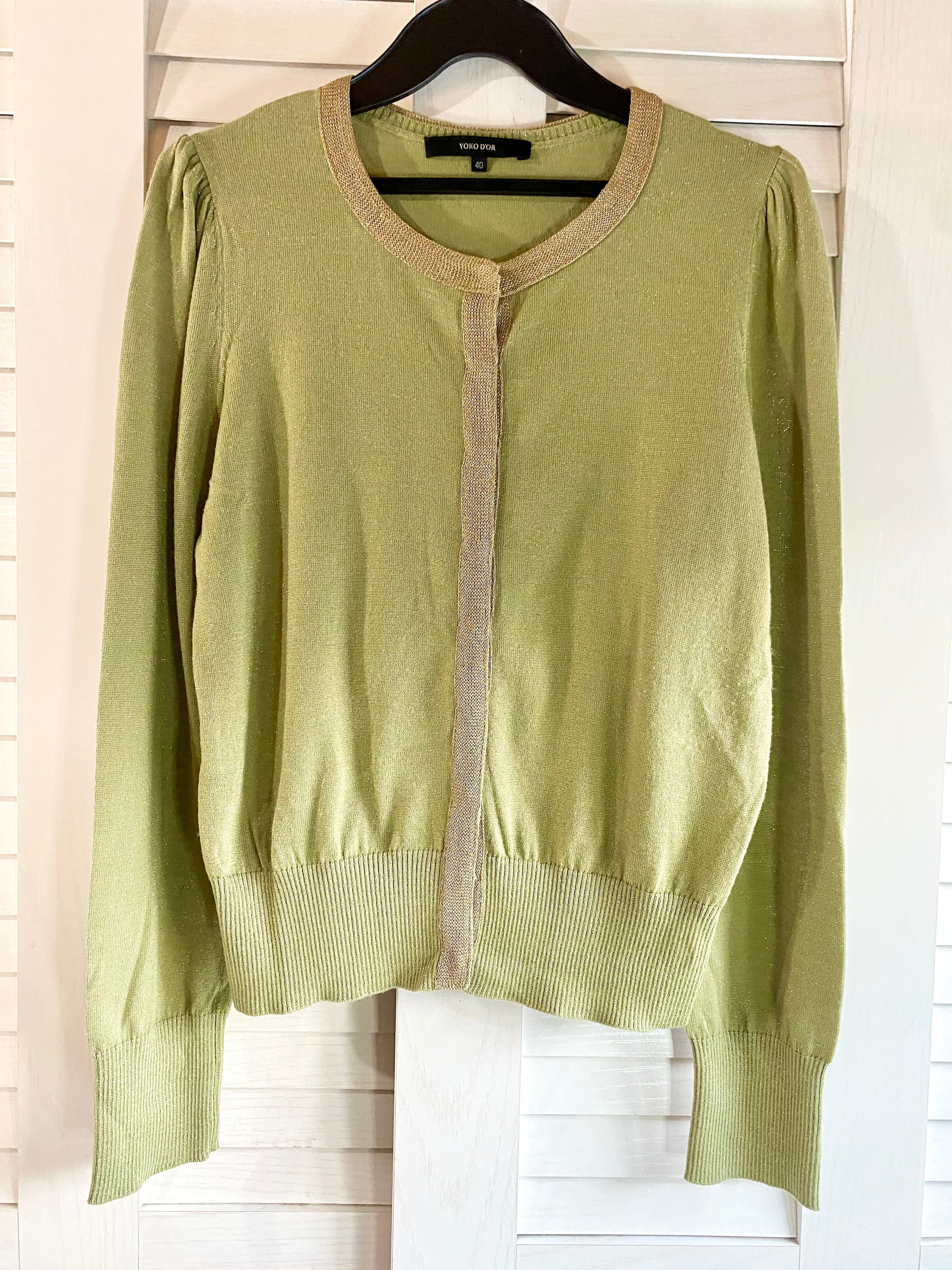 #75 YOKO D'OR ゴールドライン シルクウールニットカーデ オリーブ | お洋服屋さん 『GOKKO』