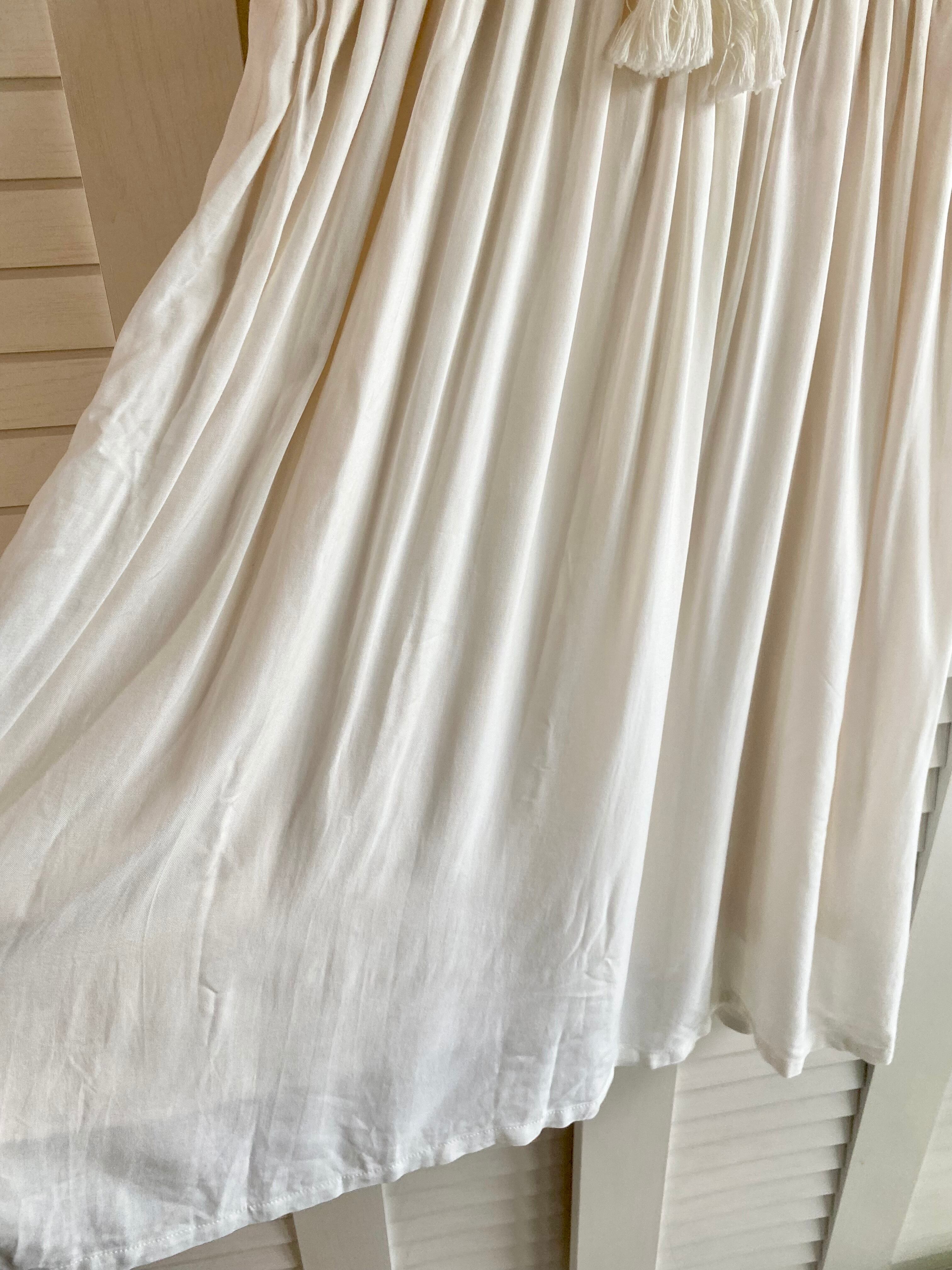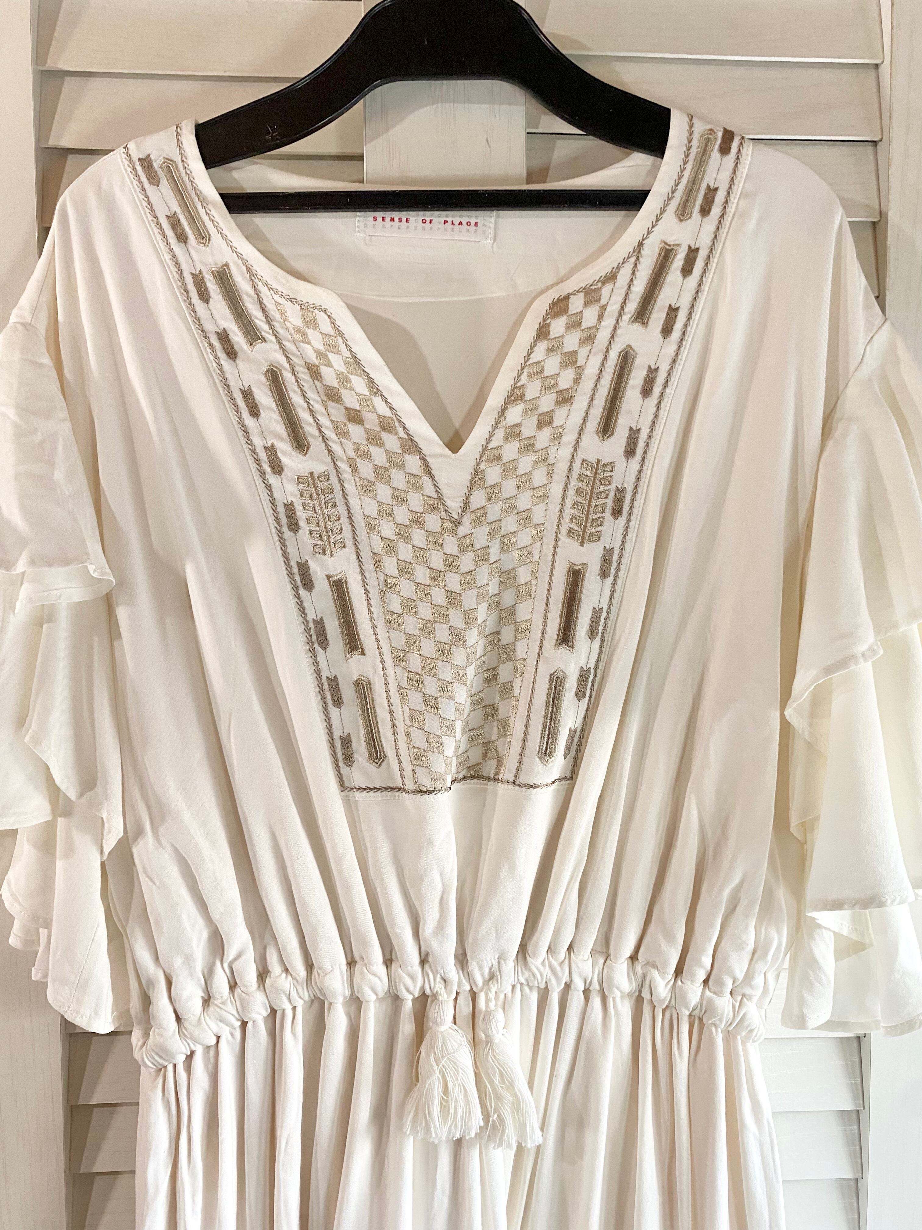 #75 SENSE OF PLACE ゴールド刺繍 フレアーレイヤードスリーブ レーヨンボリュームワンピ オフホワイト