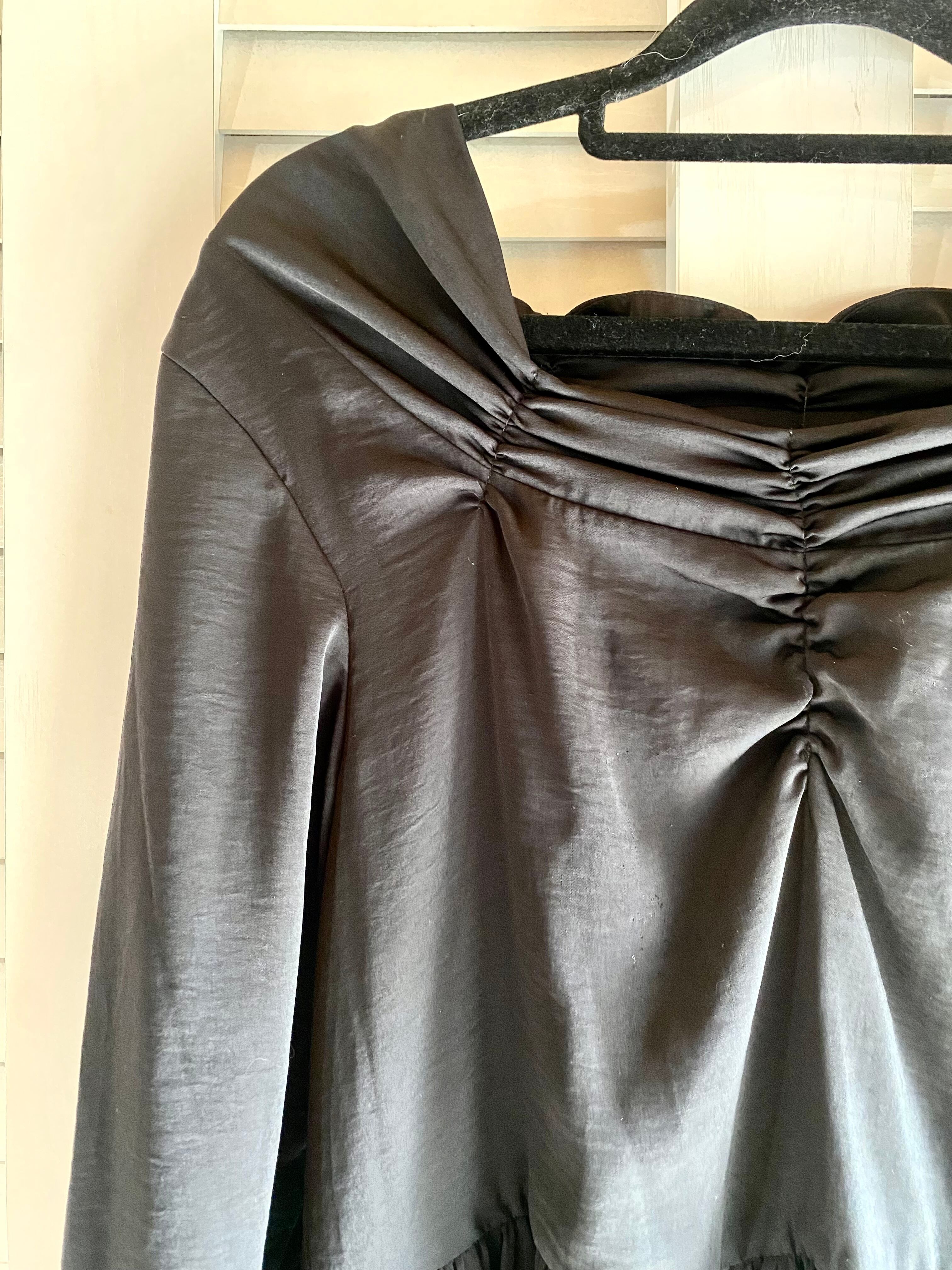 #76 Ne-net てんごくサテン カッティングフリル デザインワンピ ブラック