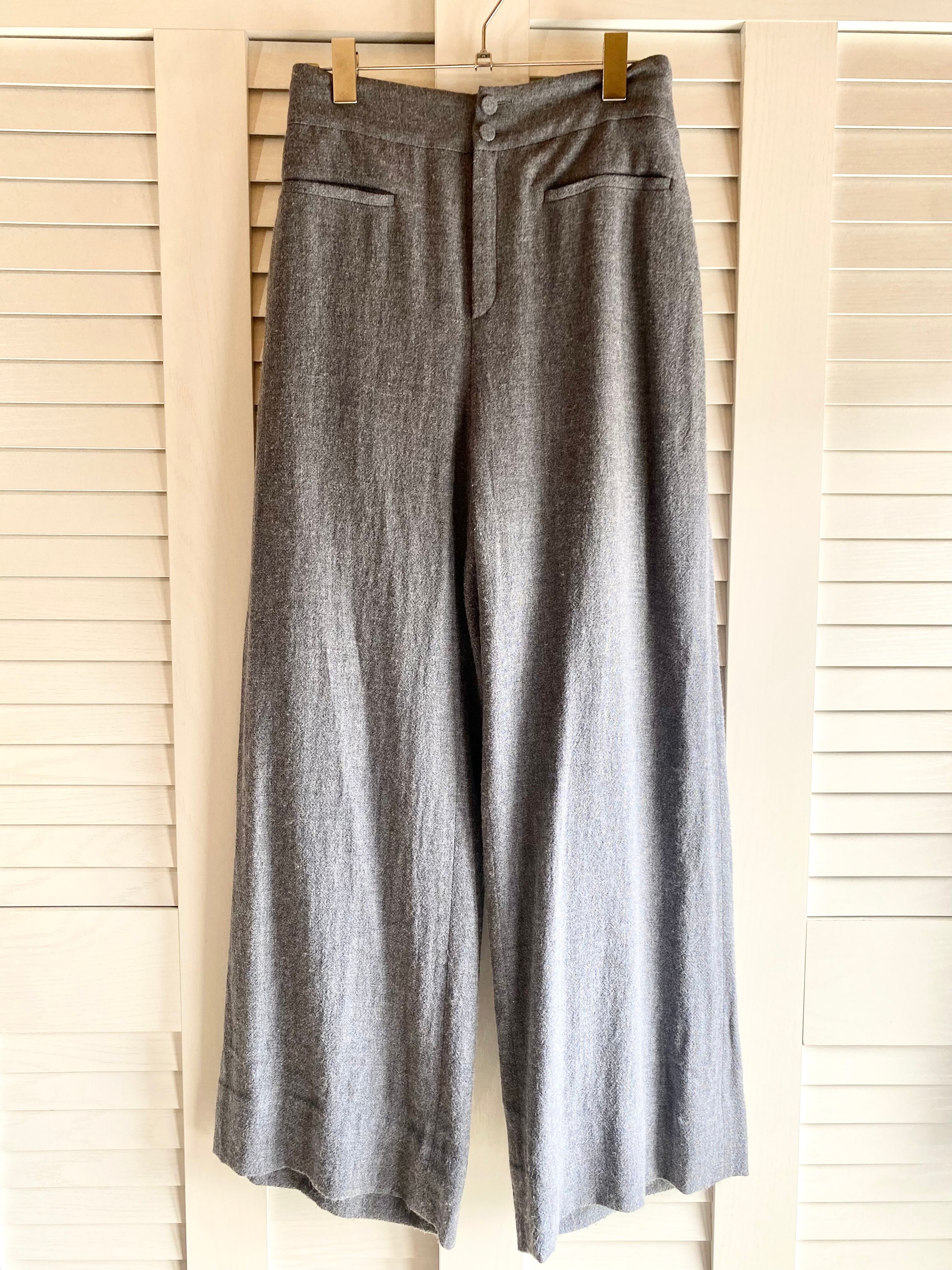 #76 agnes b. 定価3万!裏地付きレーヨンウール荒織製品洗スタンダードワイドパンツ グレー