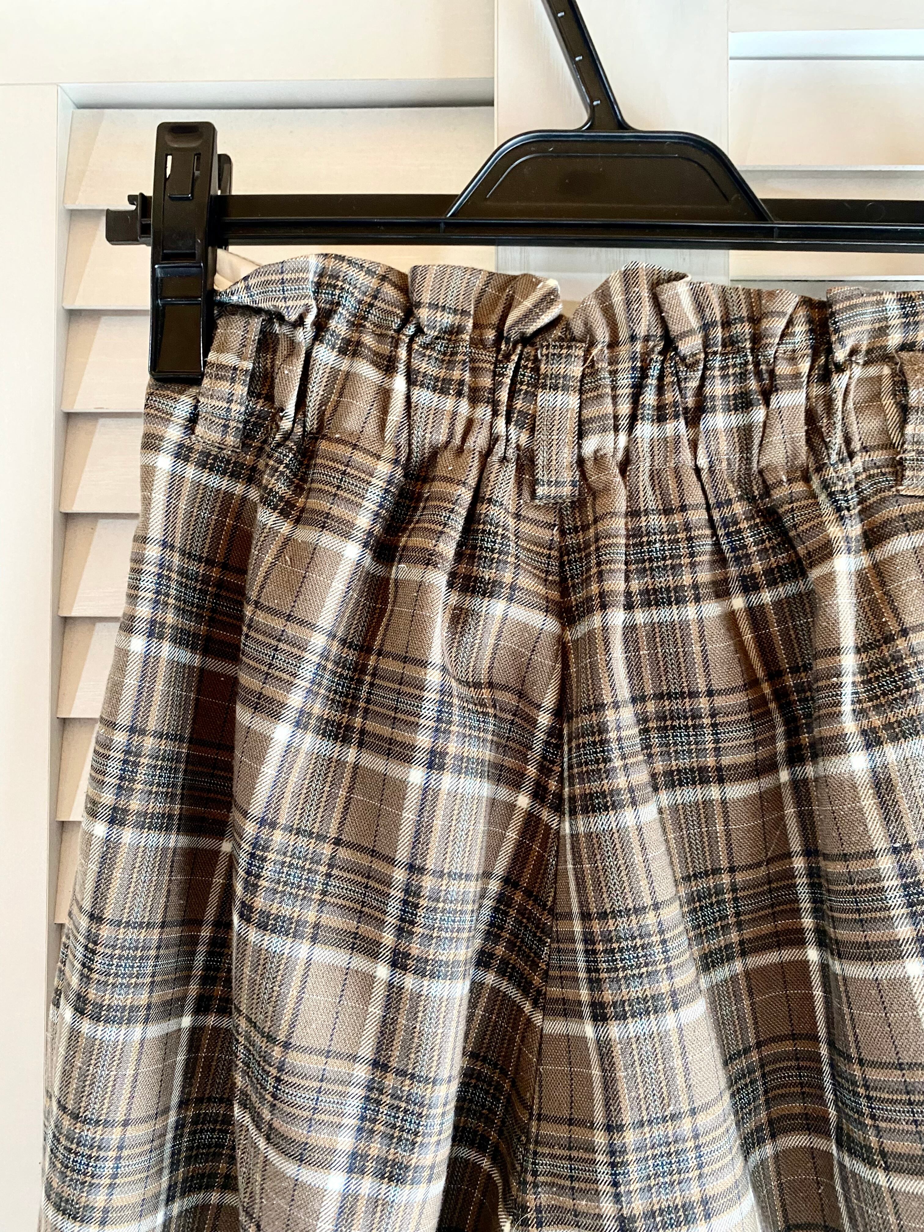 #76 NICE CLAUP タータンチェック ハイウエスト ワンタックテーパードパンツ ブラウン