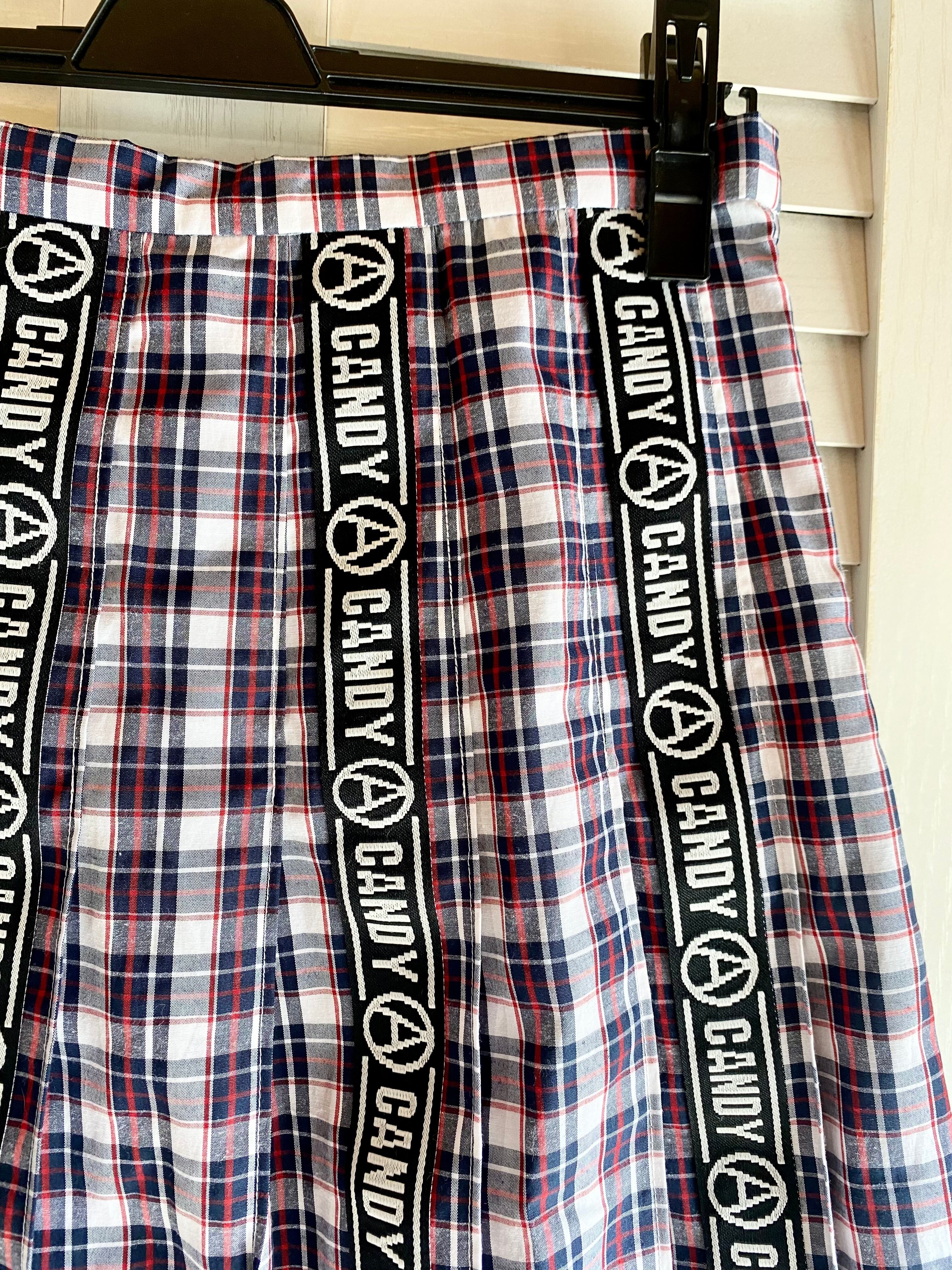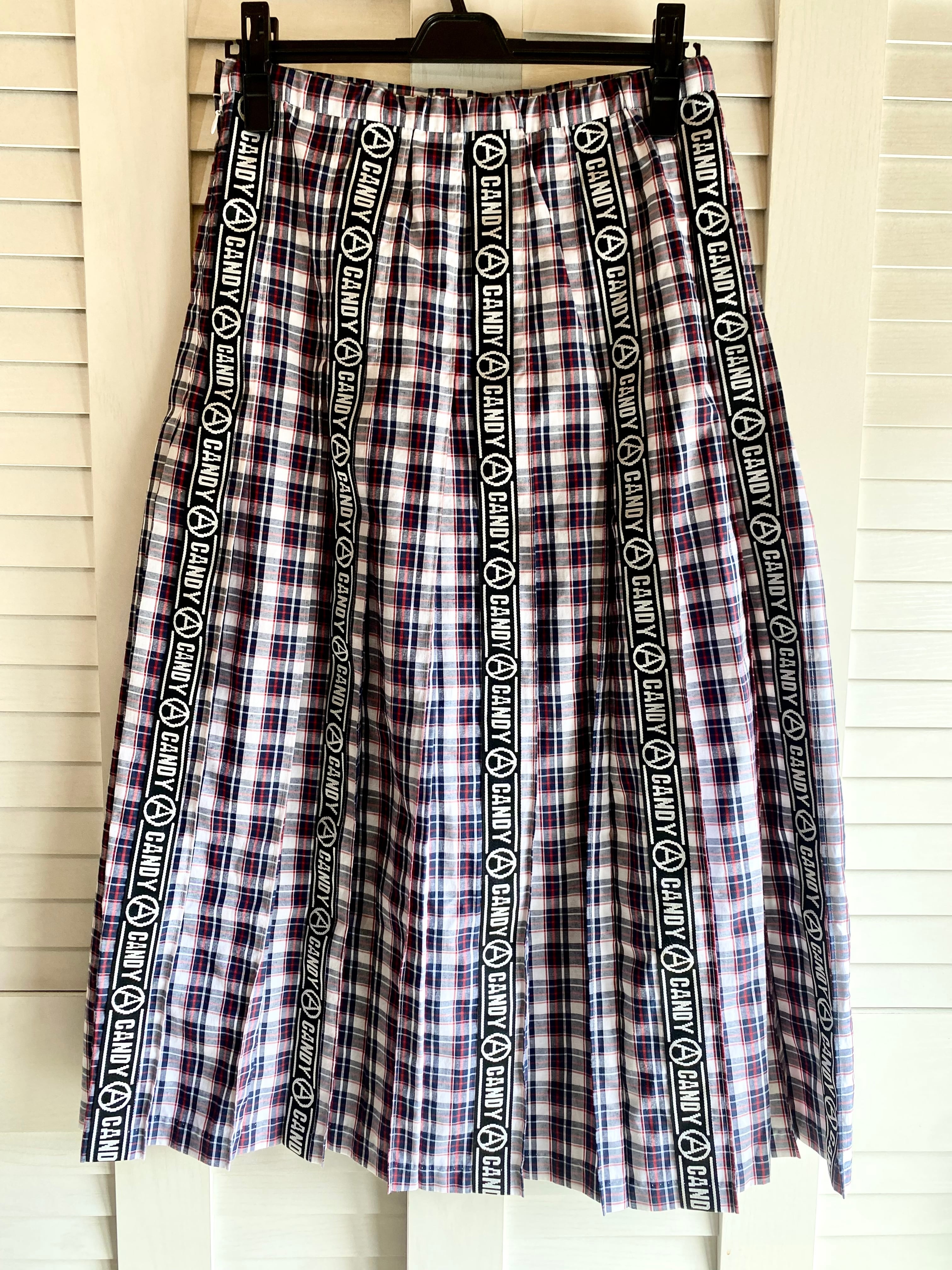 #76 Candy Stripper ロゴテープライン タータンチェック タックプリーツスカート レッド