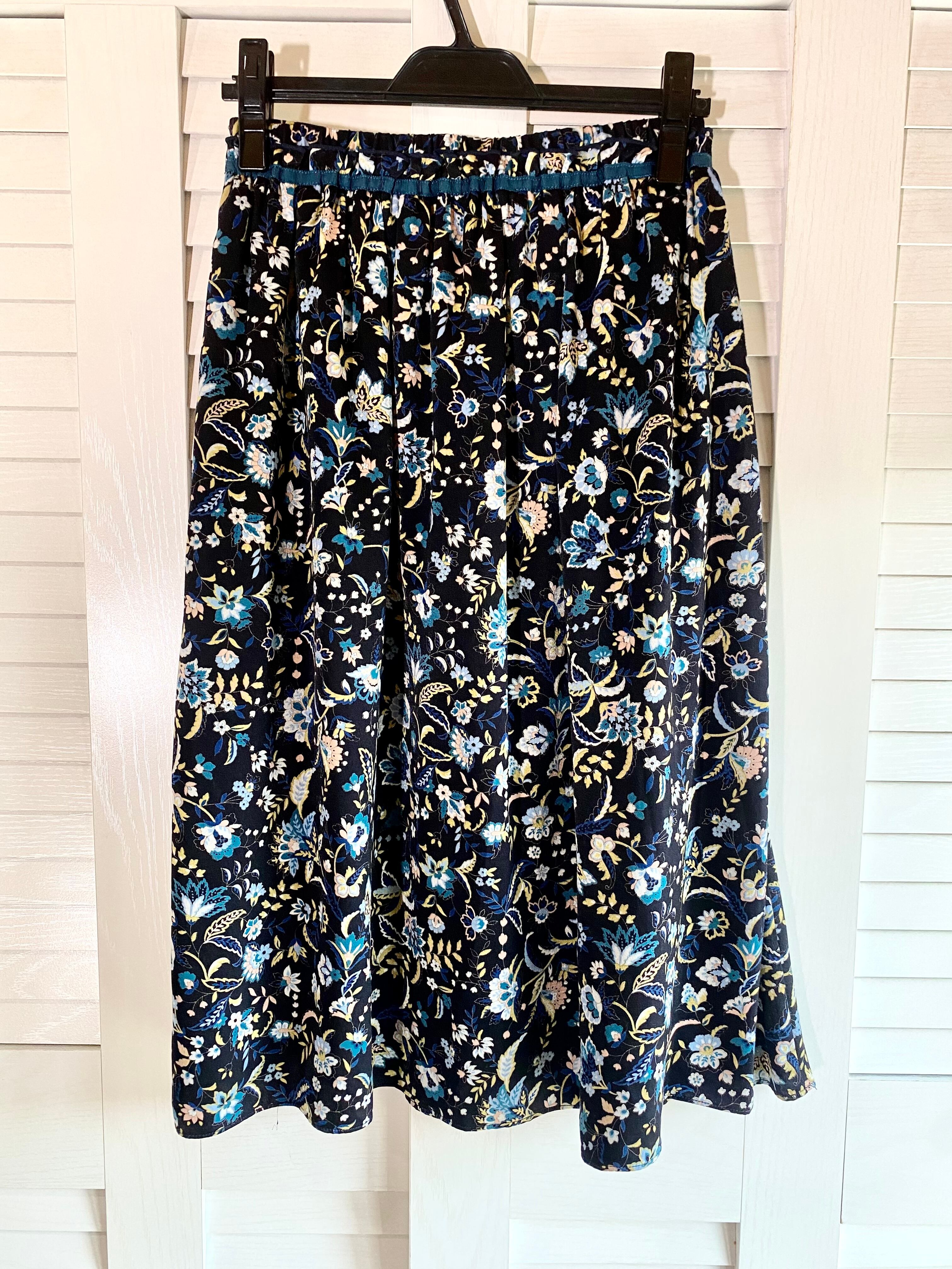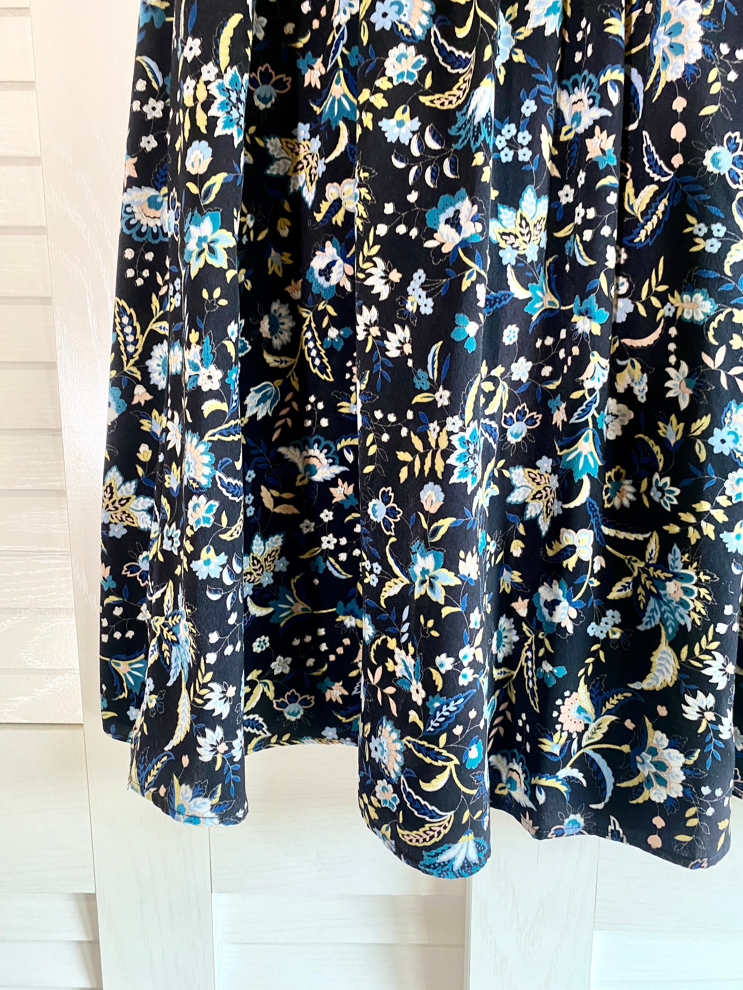 #77 TIENS ecoute ボタニカルプリント フレアーボリュームスカート ブラック