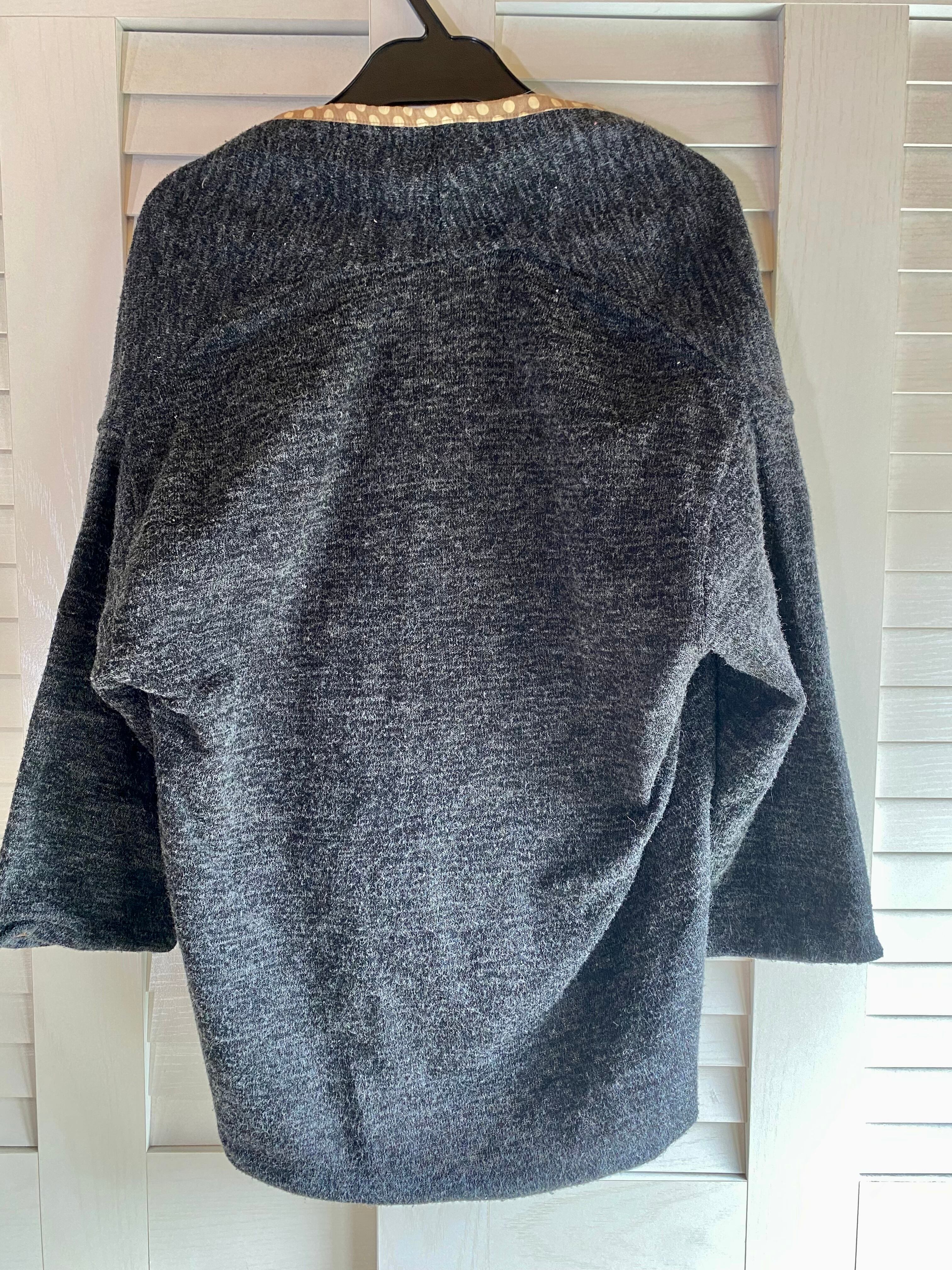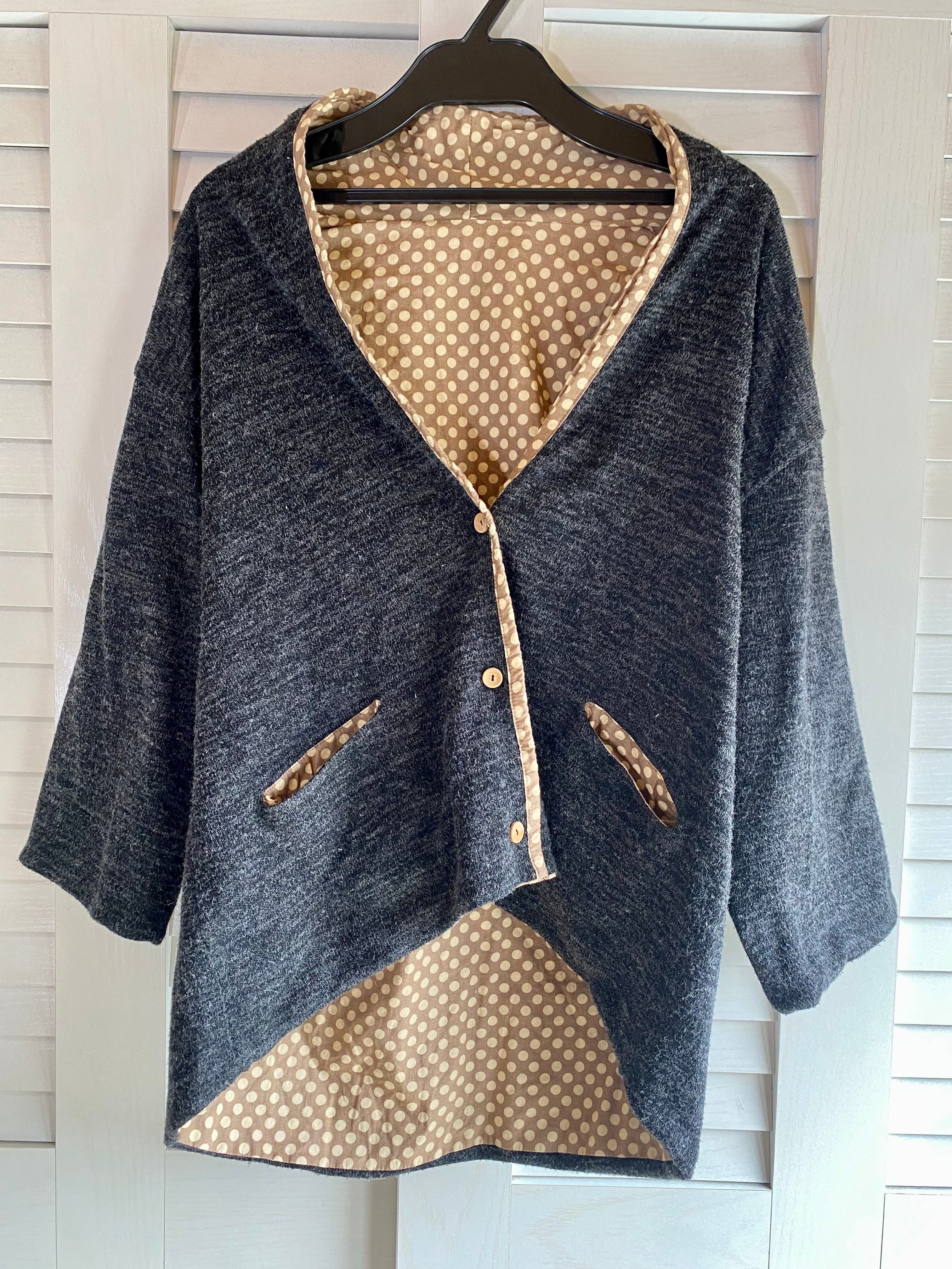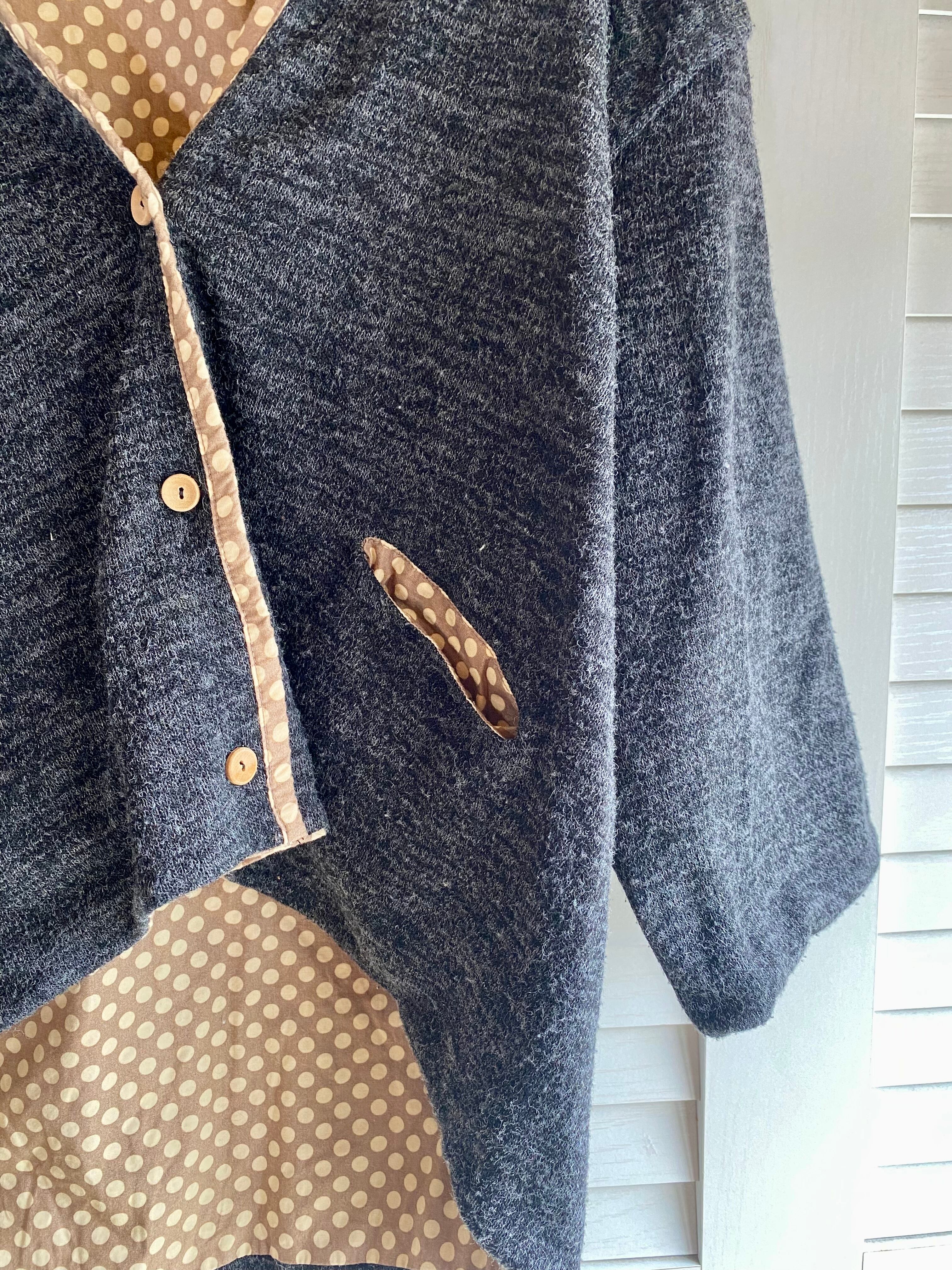 ★BASEクーポン★pink adobe コットンドットコンビ ポリエステルレーヨンニット ノーカラーデザインジャケット チャコールグレー