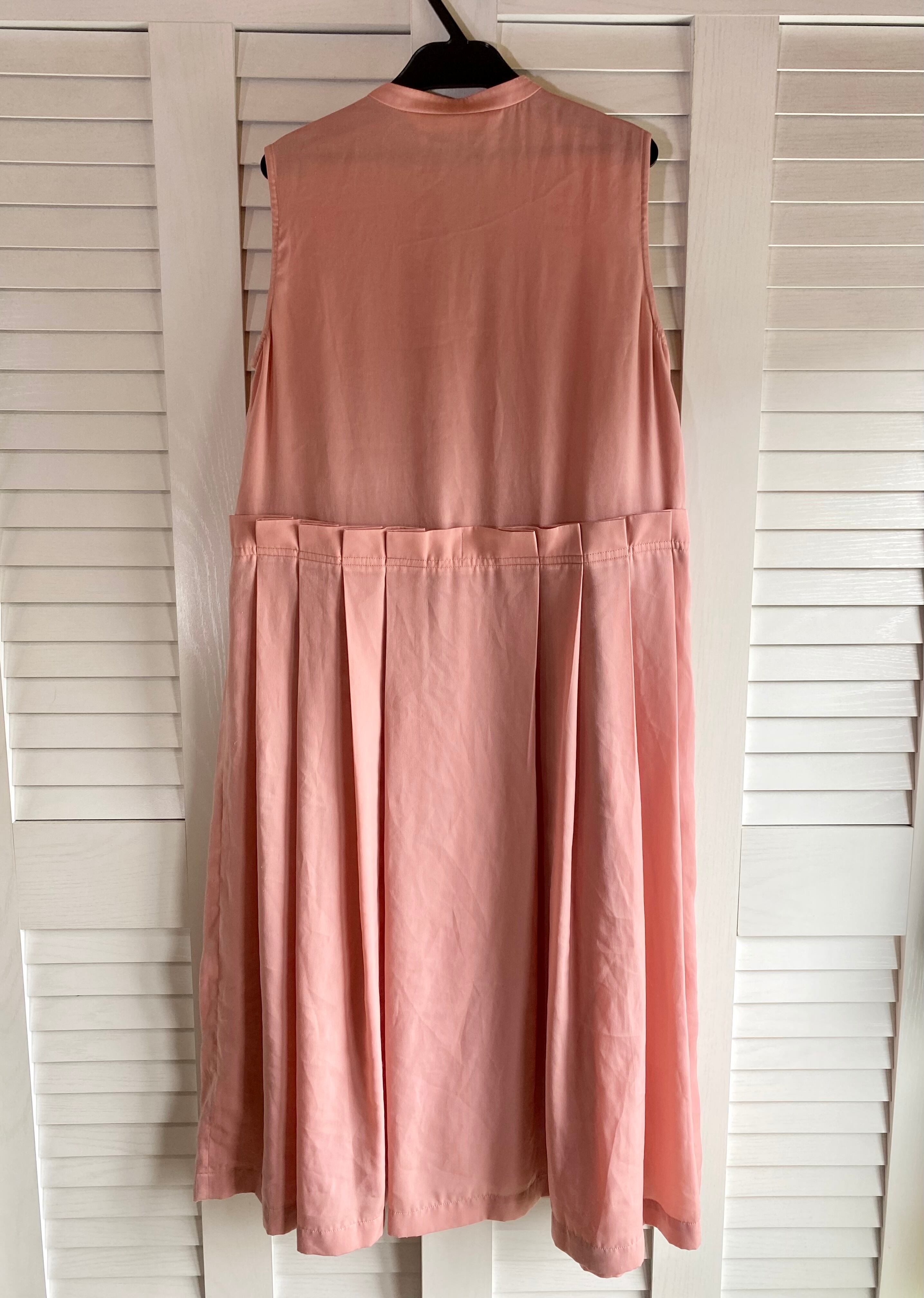 ★BASEクーポン★Ray BEAMS ヴィンテージサテン ウエスト切替 プリーツスカート ノースリーブワンピ サーモンピンク