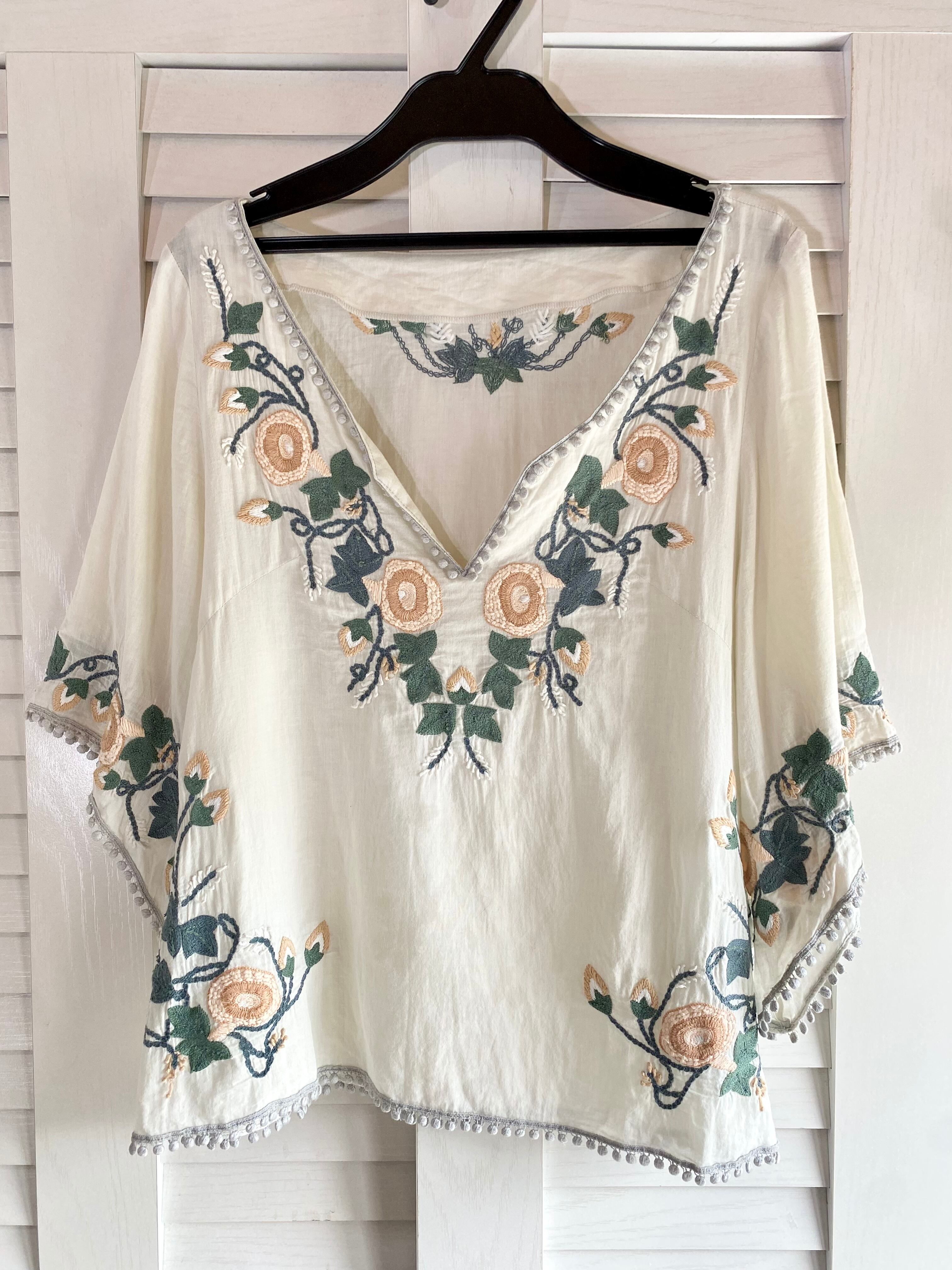 ★BASEクーポン★GRACE CONTINENTAL 定価3万2千円!フラワー刺繍&BIGピコットレース コットンガーゼデザインブラウス オフホワイト