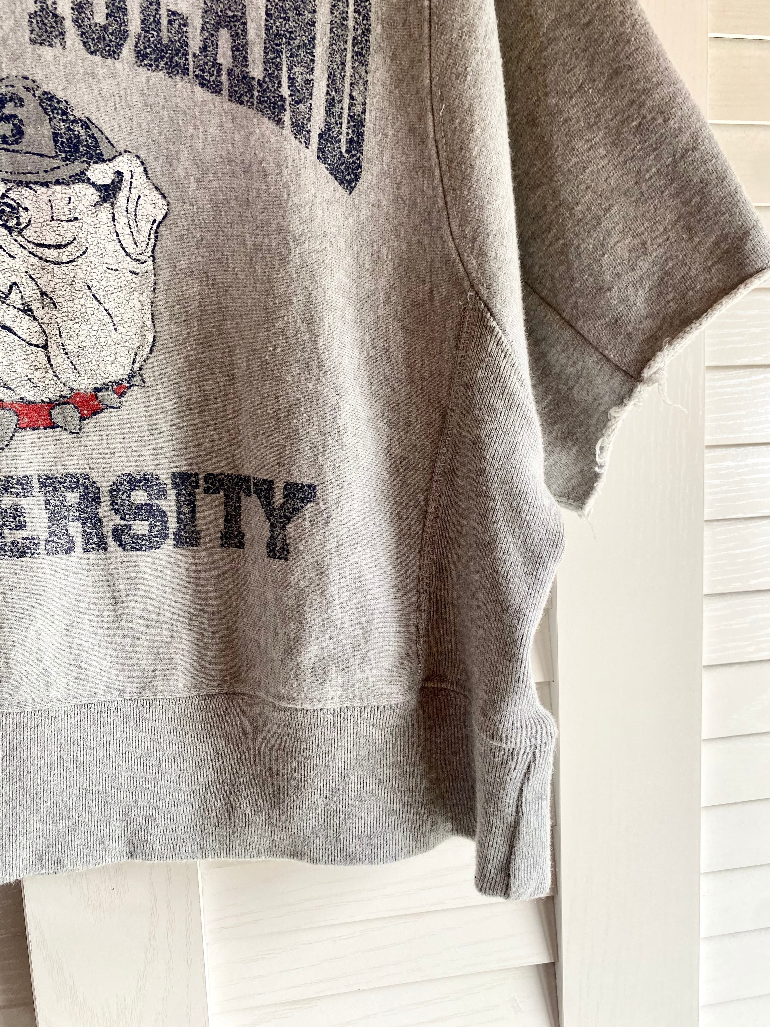 ★BASEクーポン★RCWB USED加工 ヴィンテージプリント風 半袖スウェットプルオーバー ライトグレー