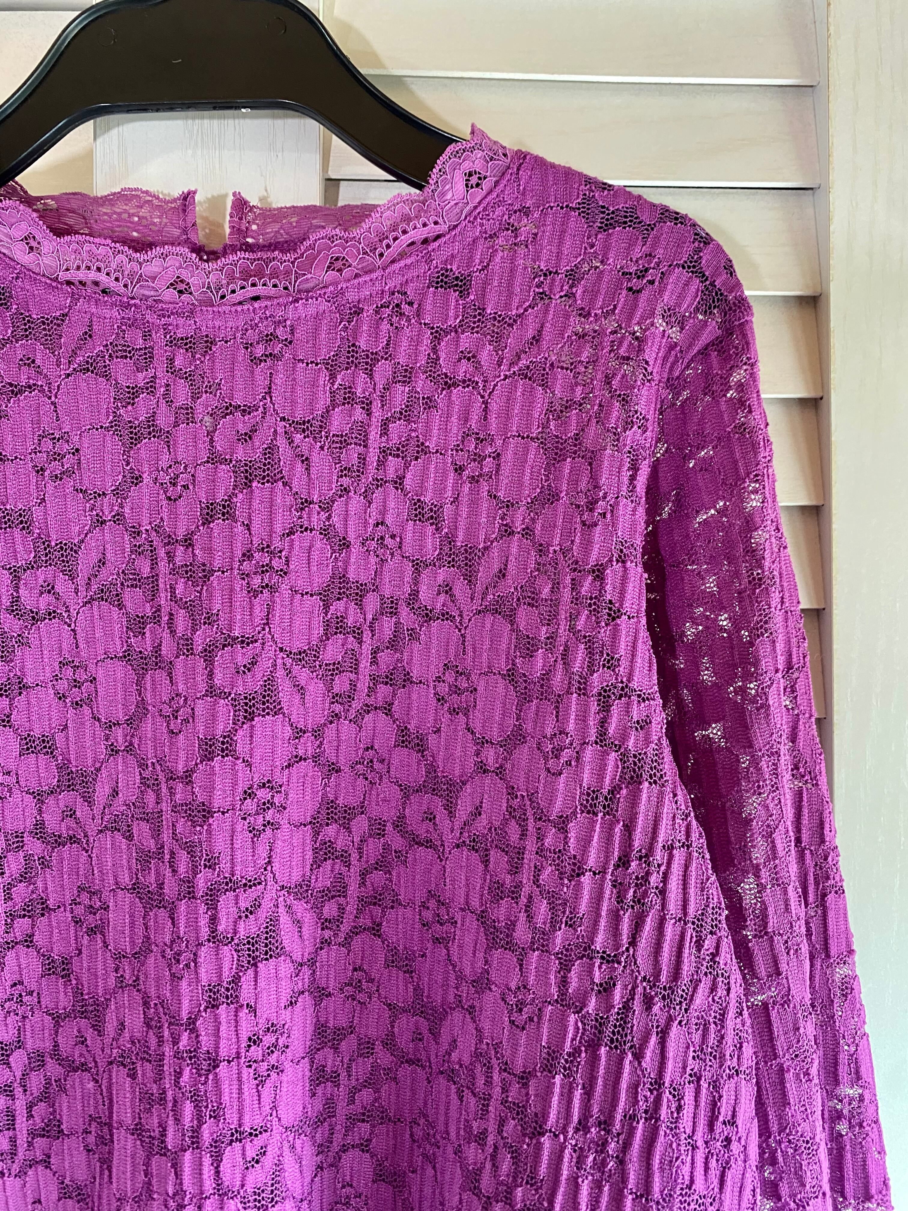 ★BASEクーポン★ROSE BUD 総ストレッチプリーツレースブラウス パープル