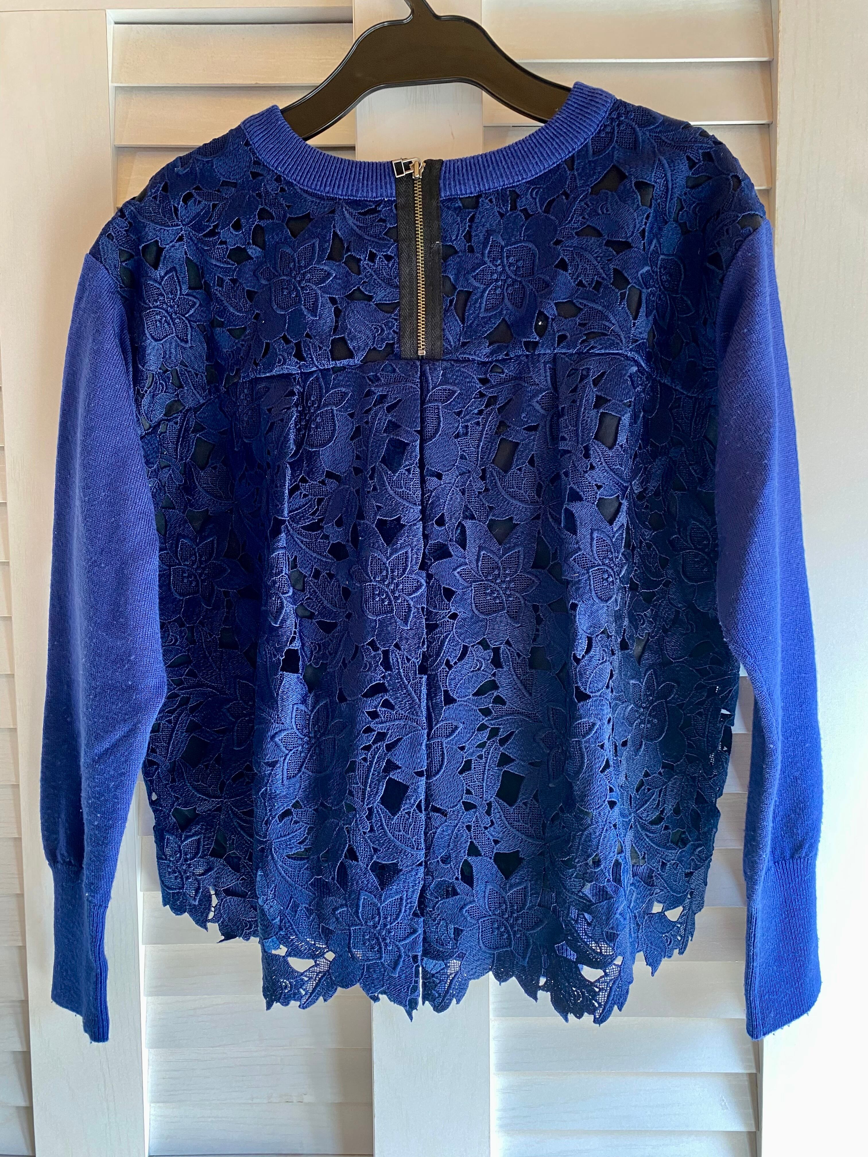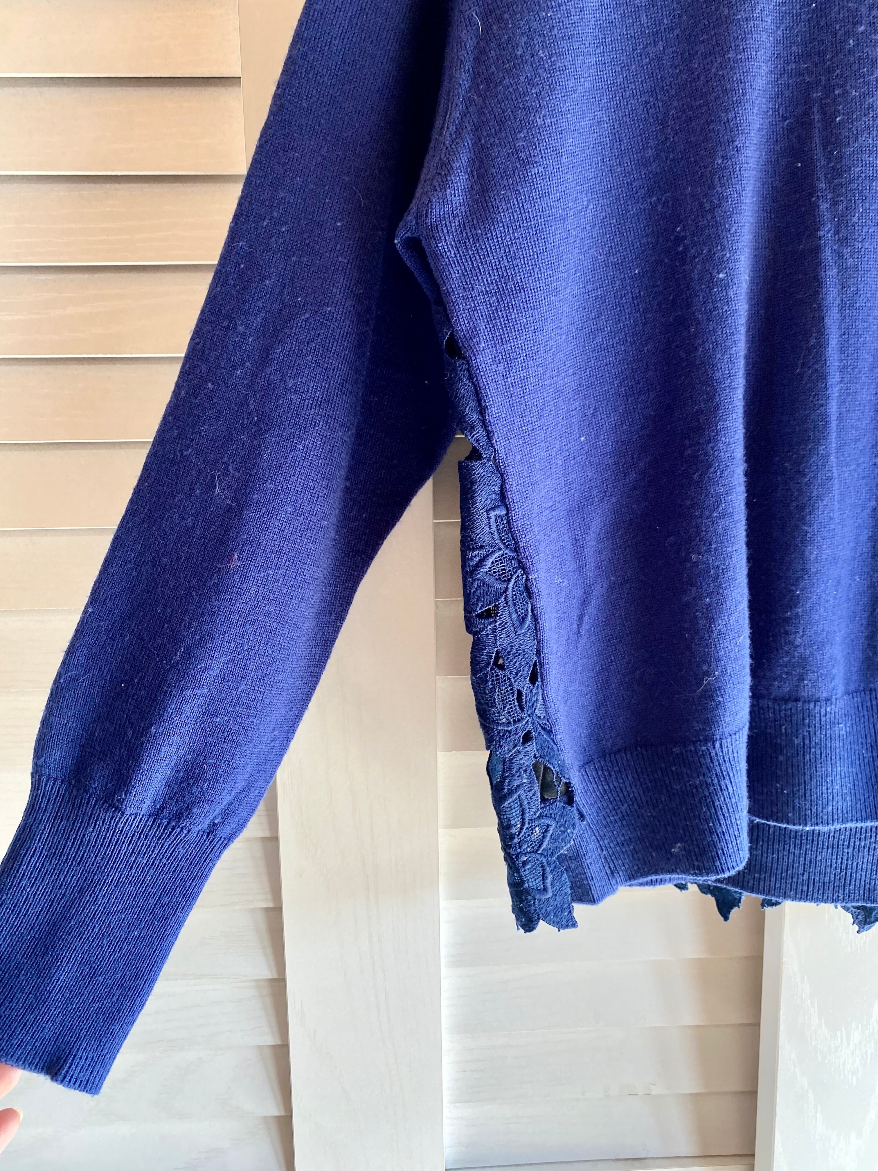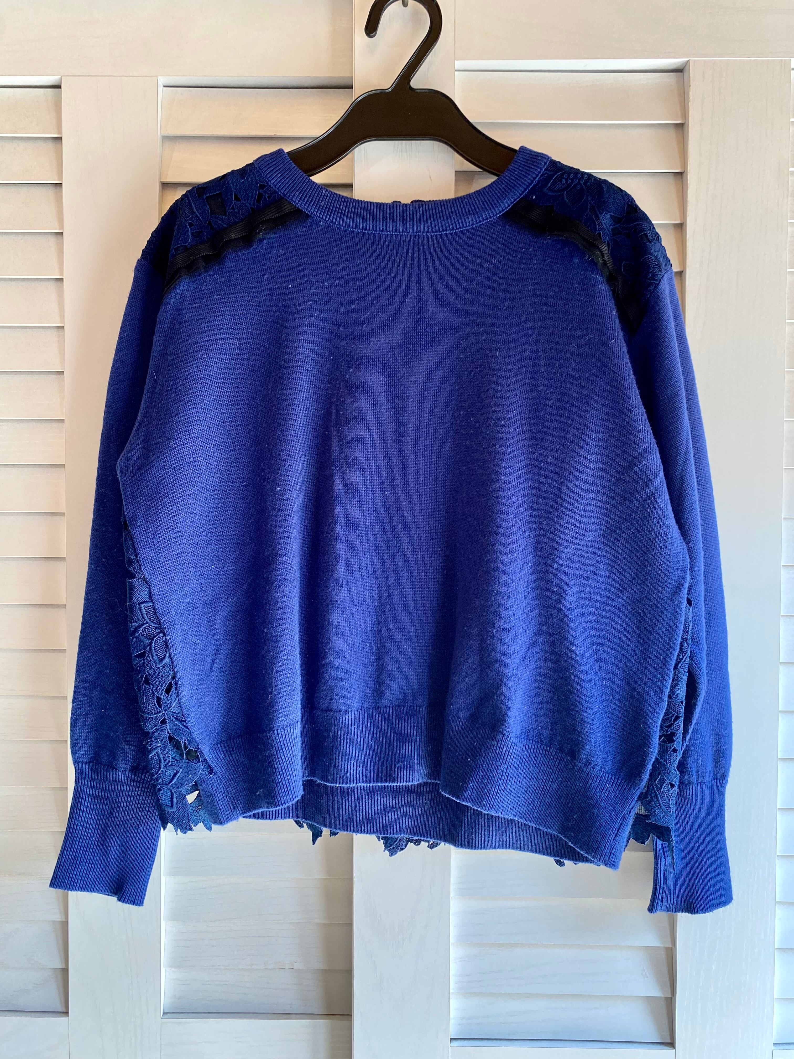 ★BASEクーポン★LANVIN レーヨンウール レースブロッキングデザインプルオーバーニット ブルーネイビー