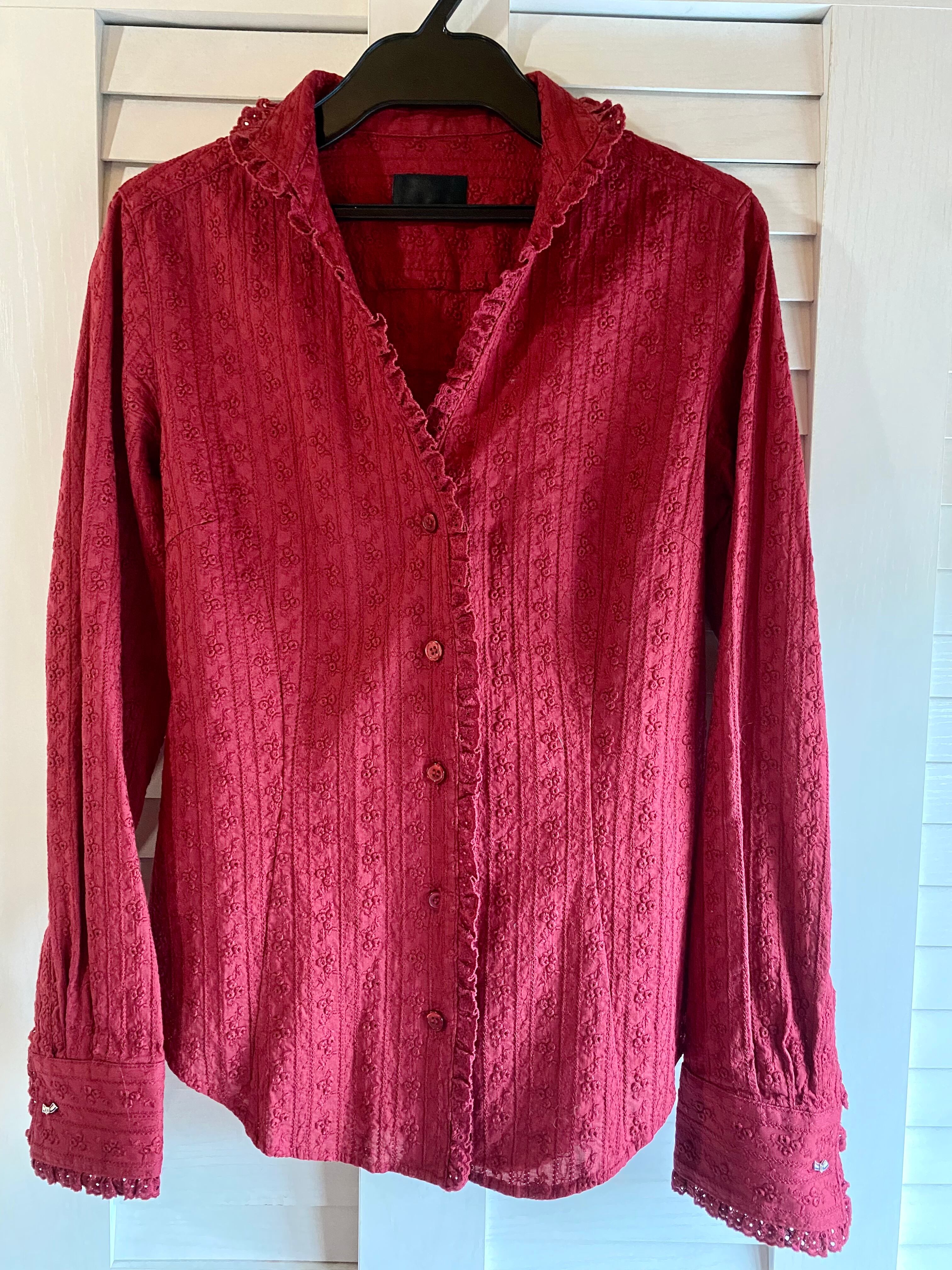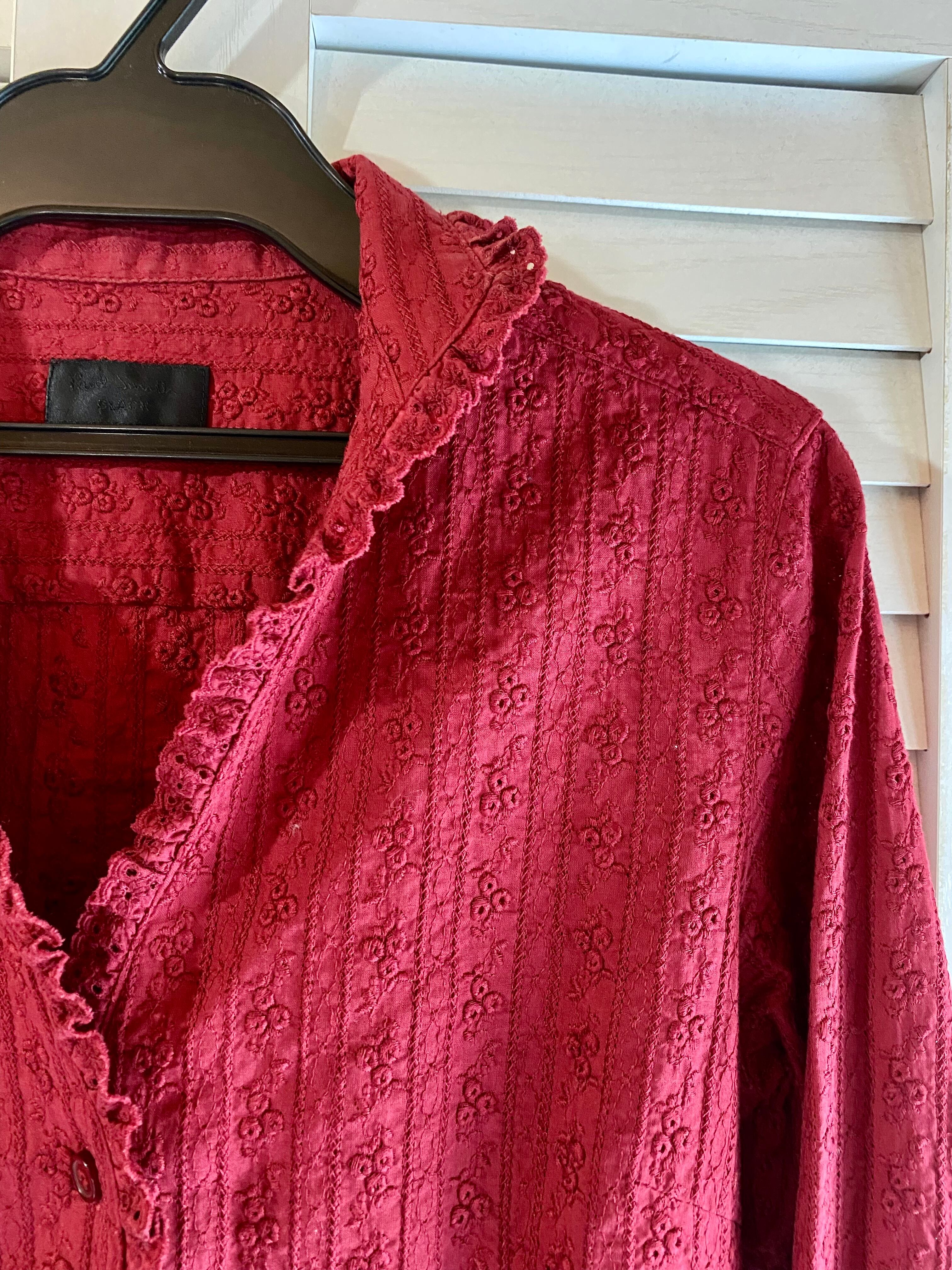★BASEクーポン★ Paul Smith 刺繍コットンレース デザインシャツブラウス レッド