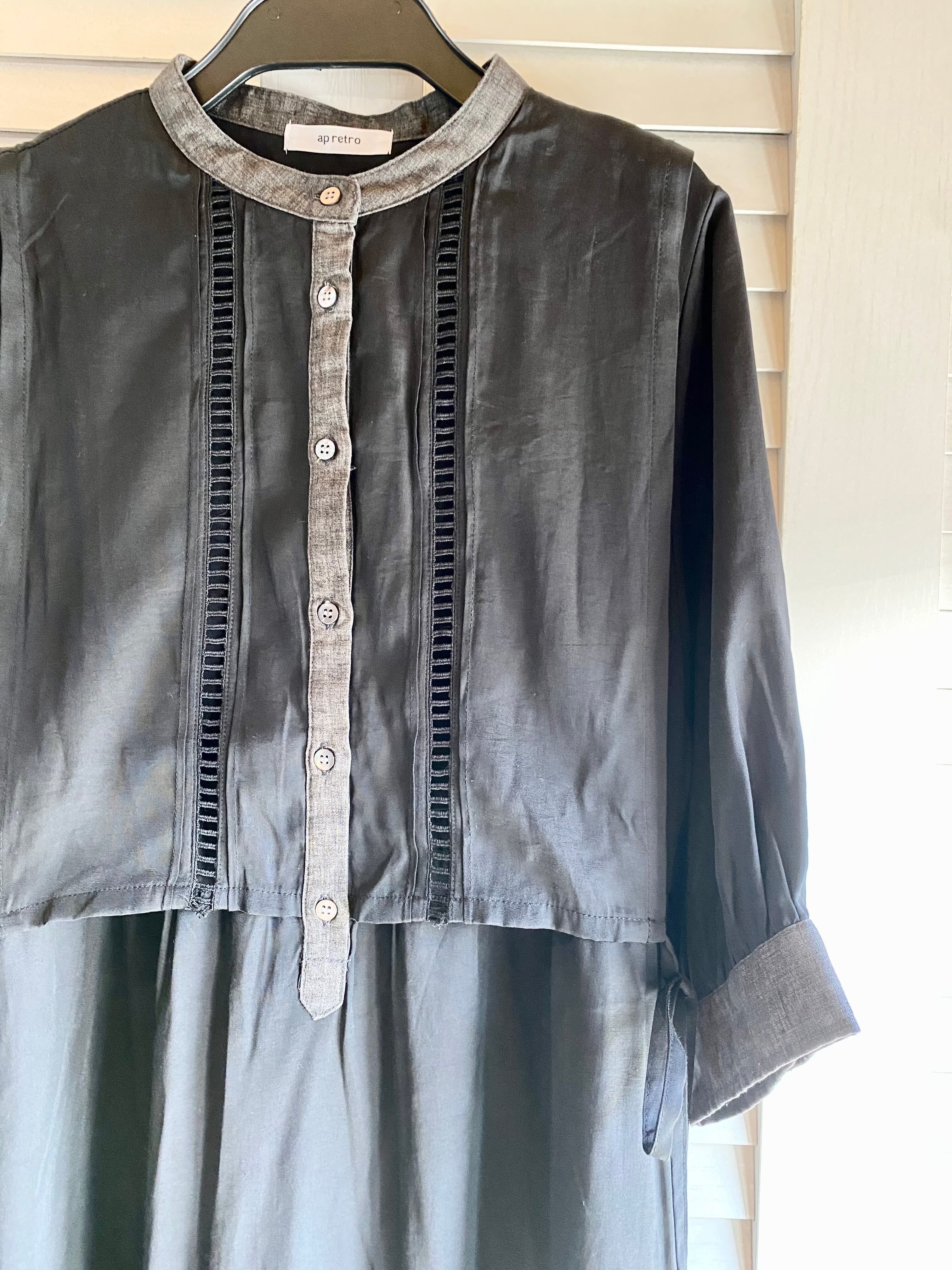 #80 ap retro 異素材コンビ 7分袖 細見えロングワンピ ブラック
