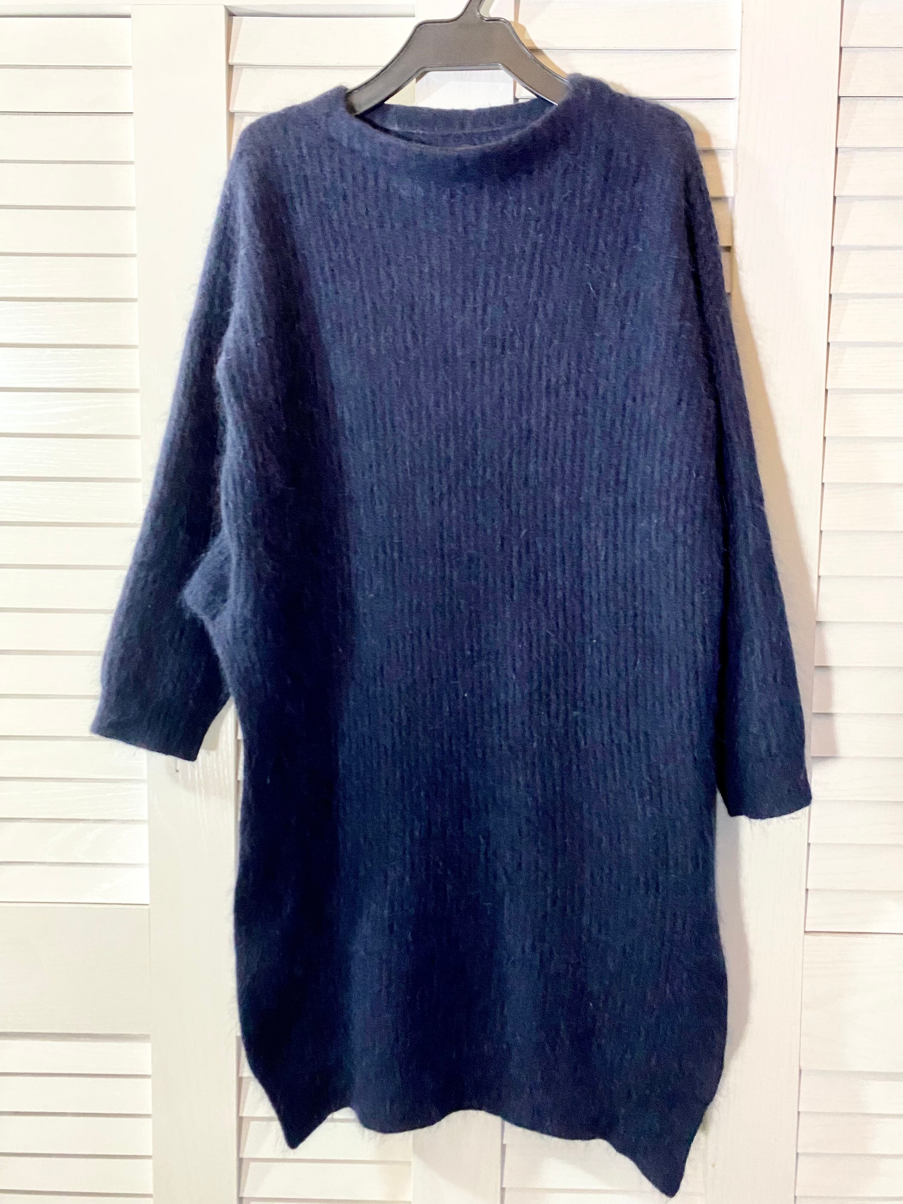 ★BASEクーポン★GRACE CONTINENTAL イレギュラーデザイン アンゴラナイロンリブニット ネイビー