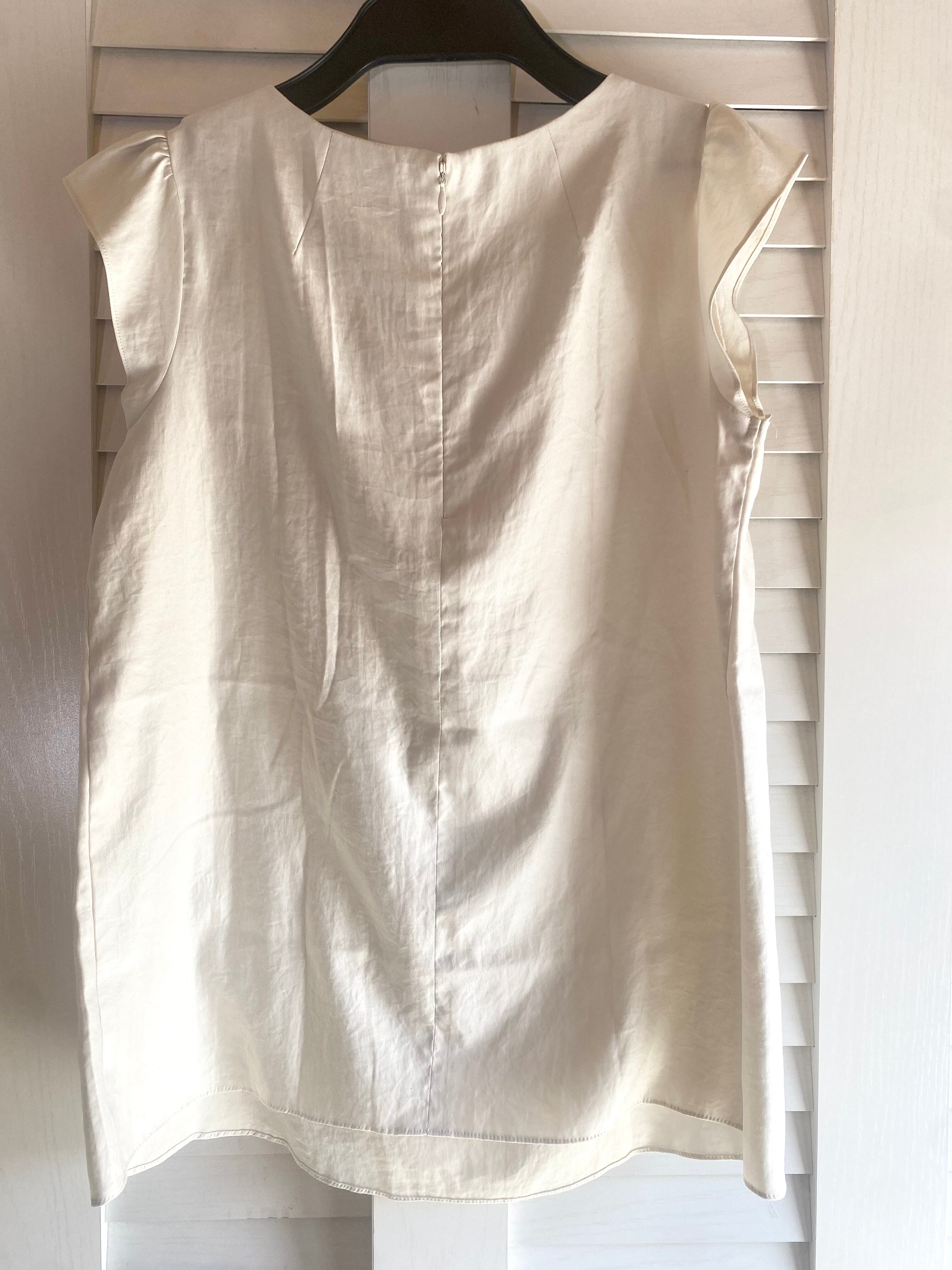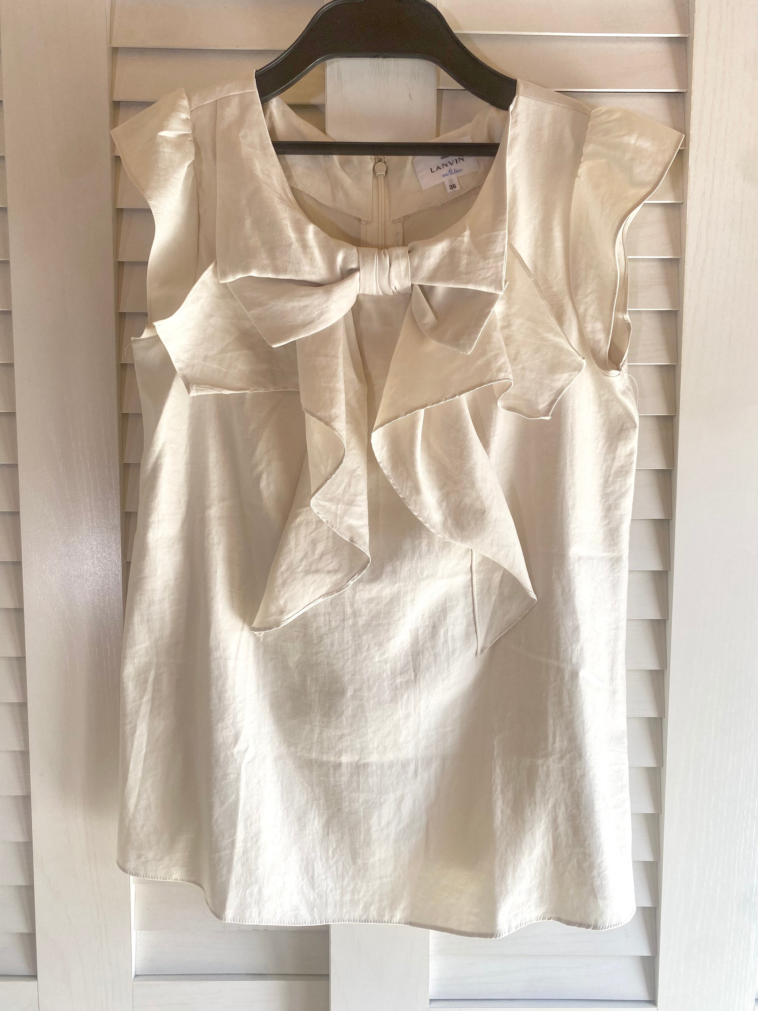 #78 LANVIN バックサテン リボンカラー フレンチスリーブブラウス アンティークベージュ