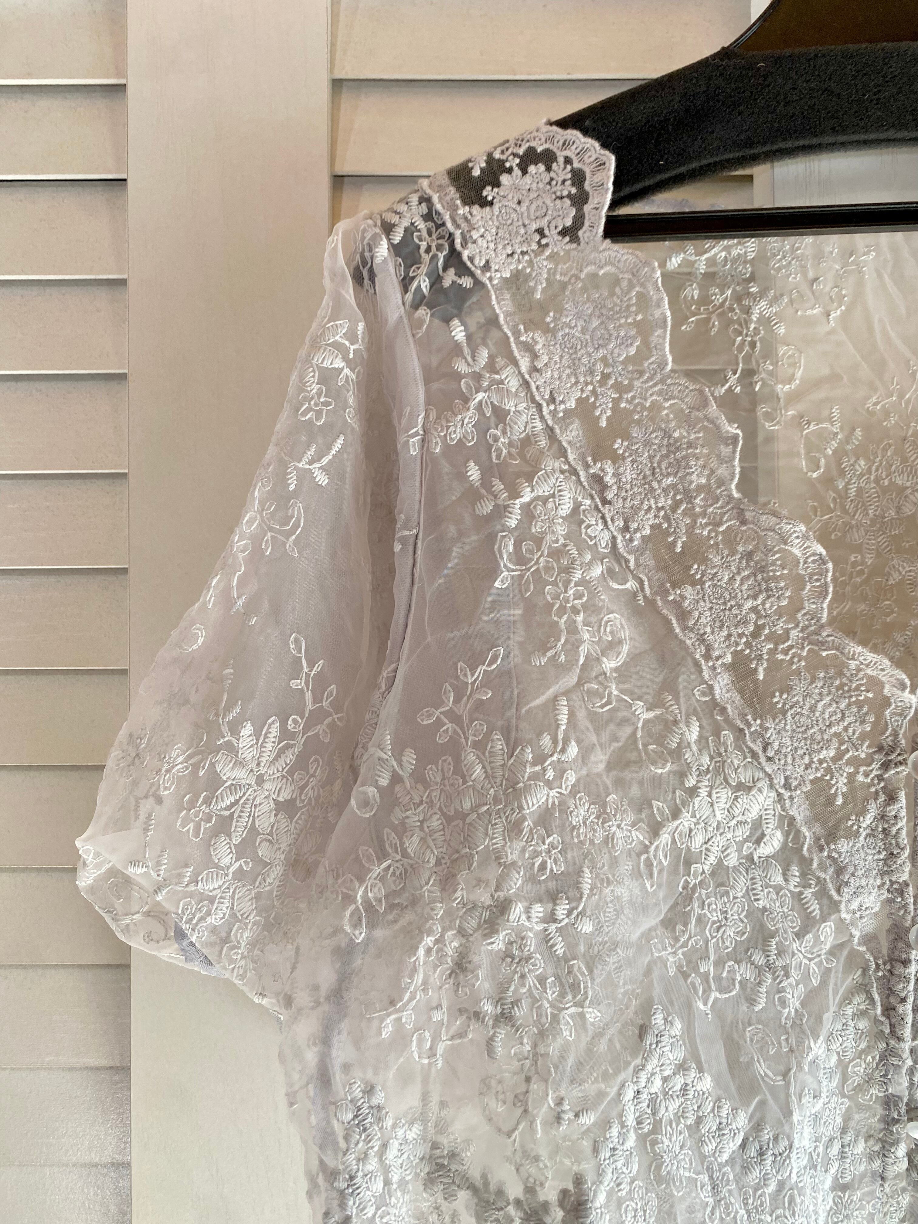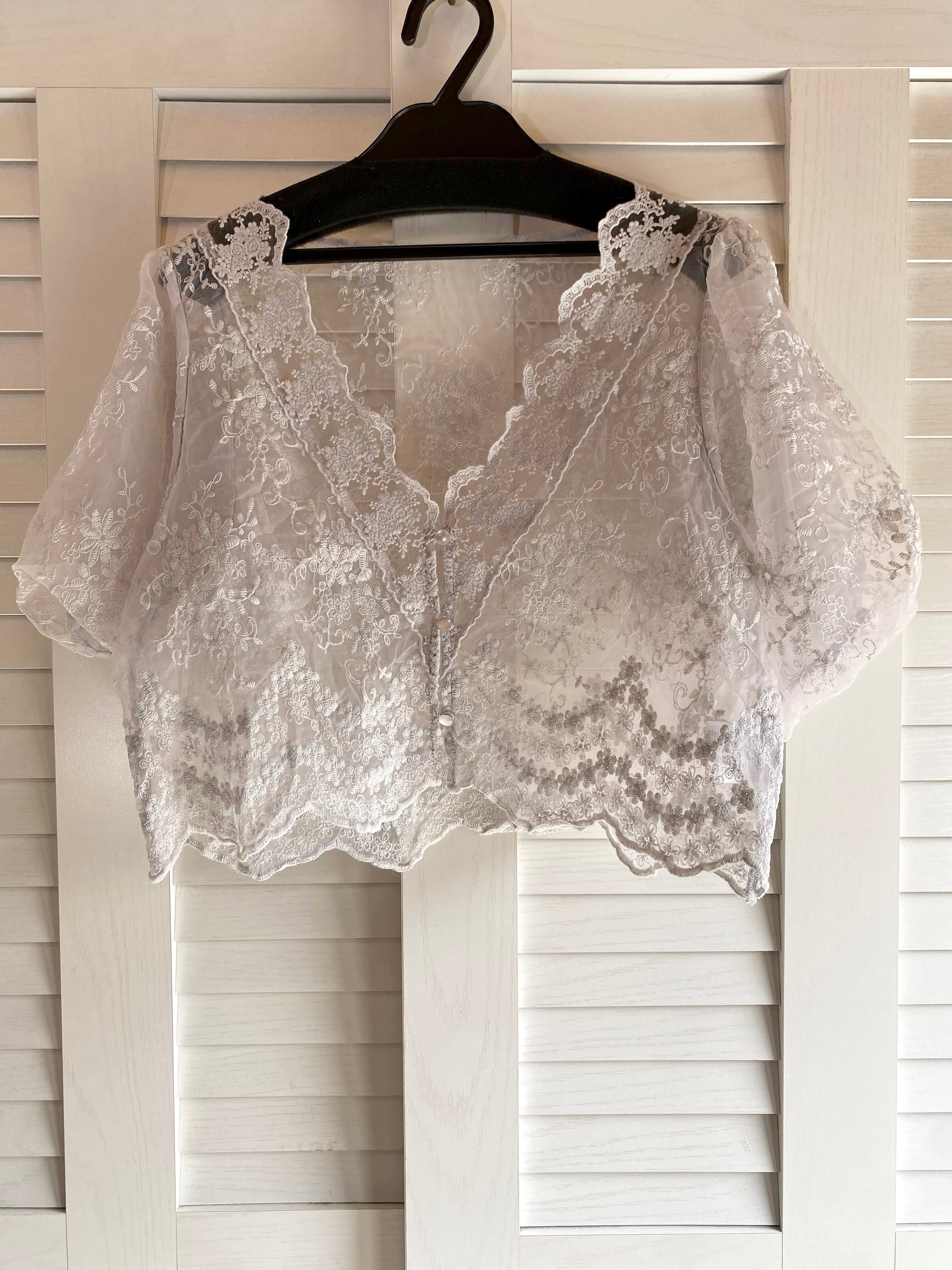 #79 ems excite 刺繍オーガン ボリュームスリーブ ボレロブラウス ライトグレー