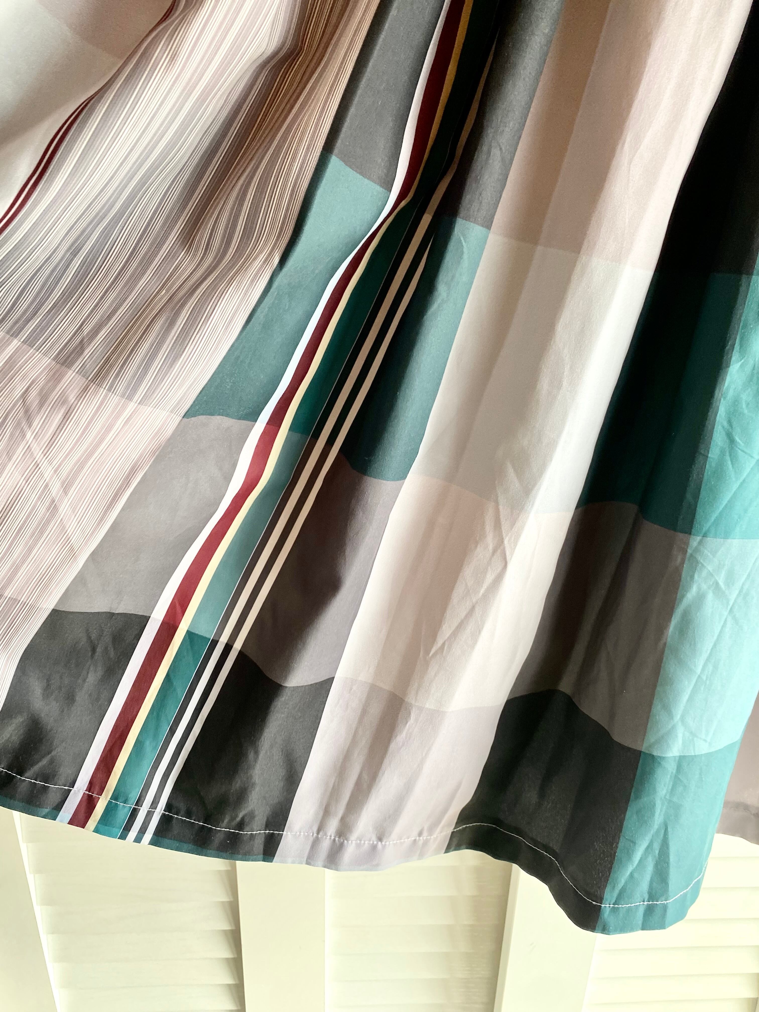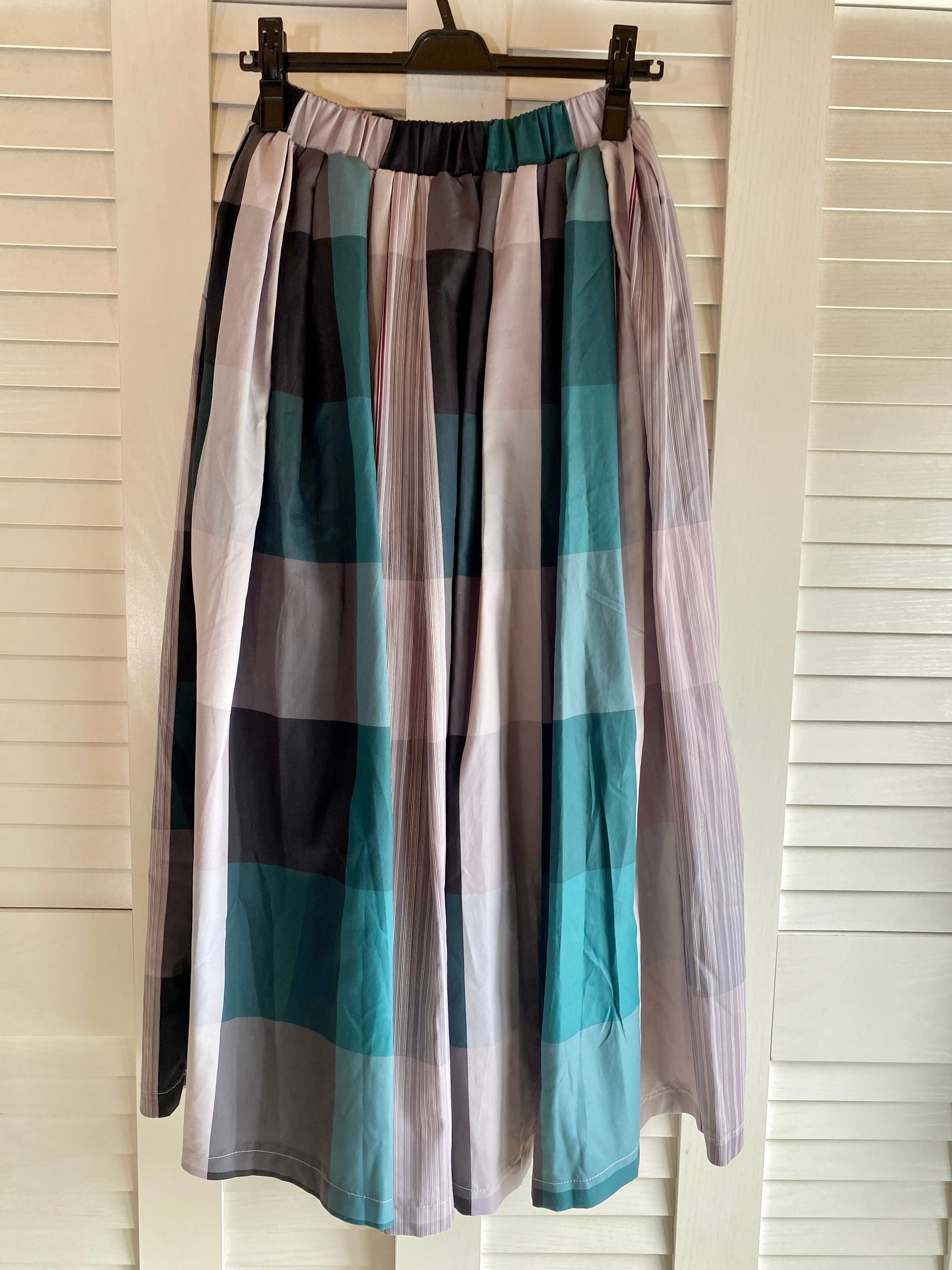 #79 emi+ マルチチェック ポリエステルタフタ ボリュームフレアースカート グリーン