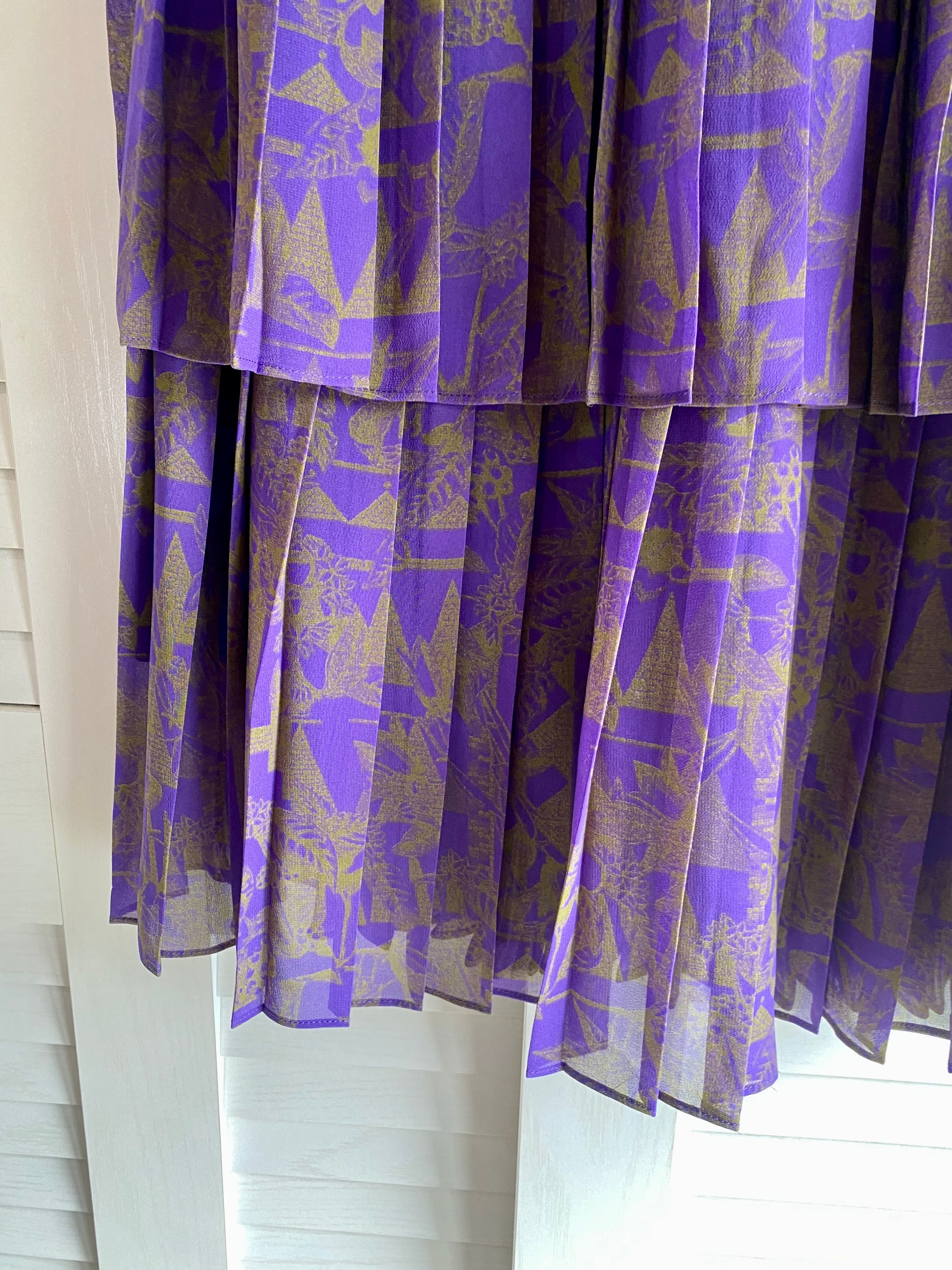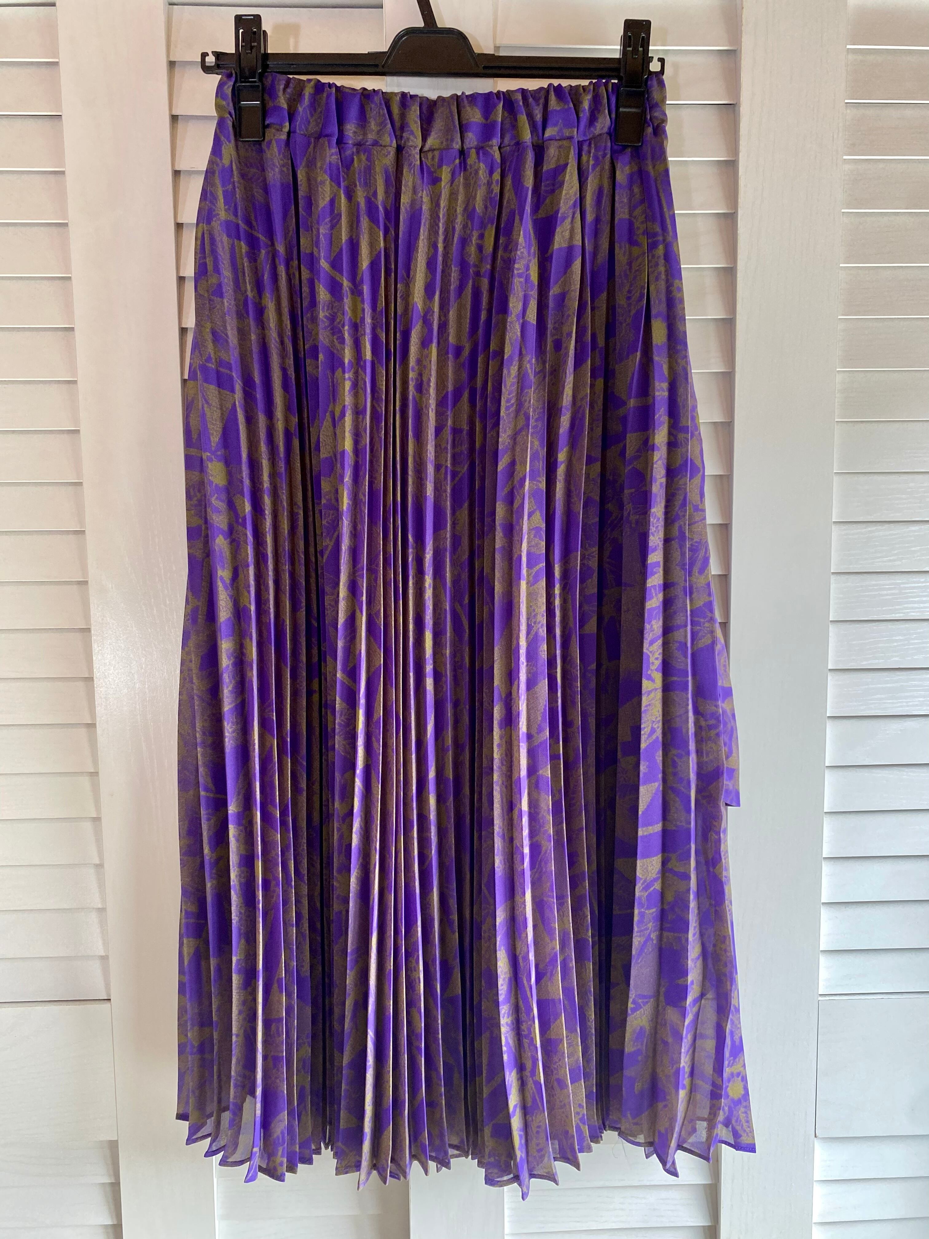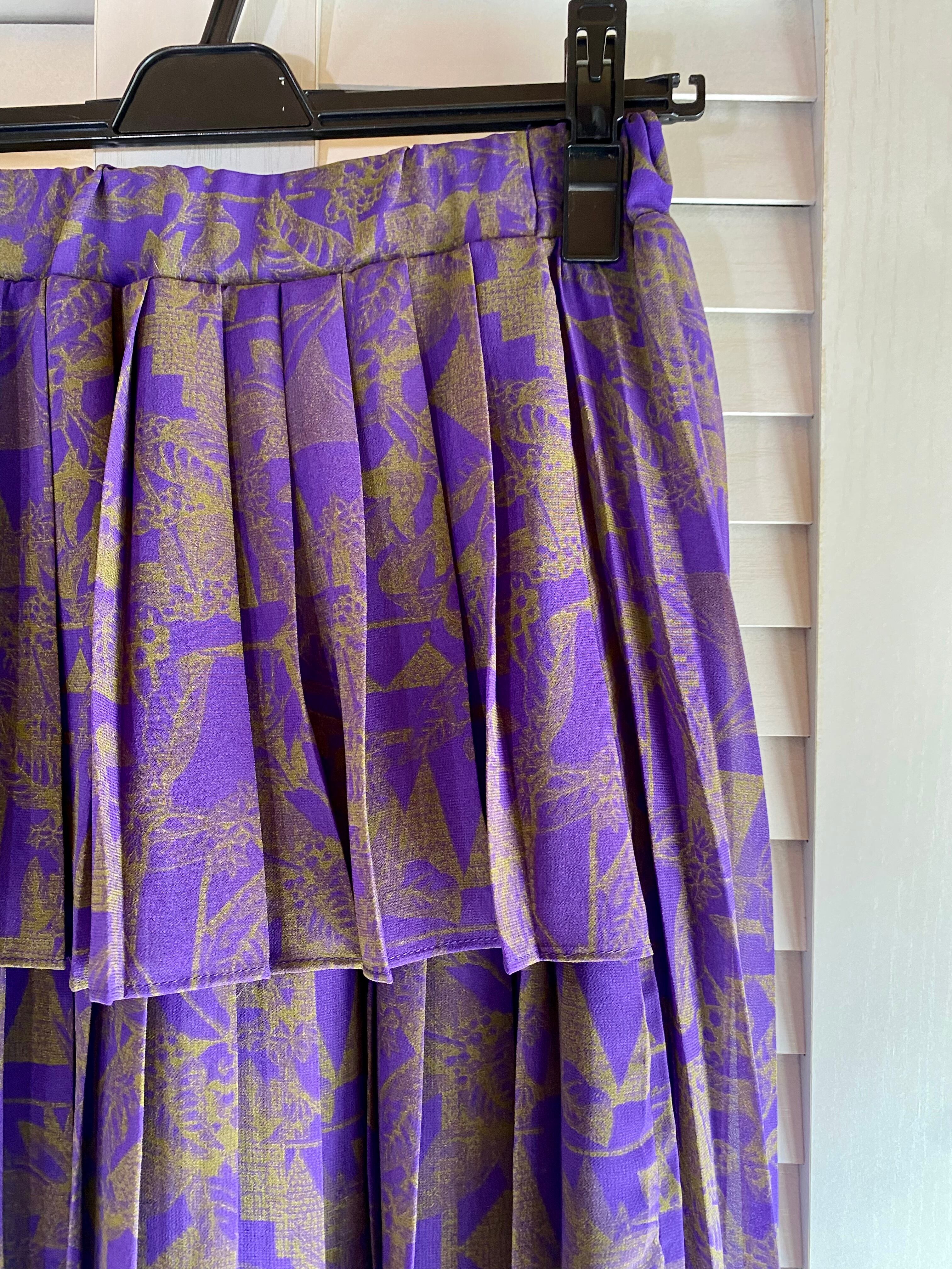 #79 ROSE BUD シフォンジョーゼット ジオメトリックプリント プリーツティアードスカート パープル