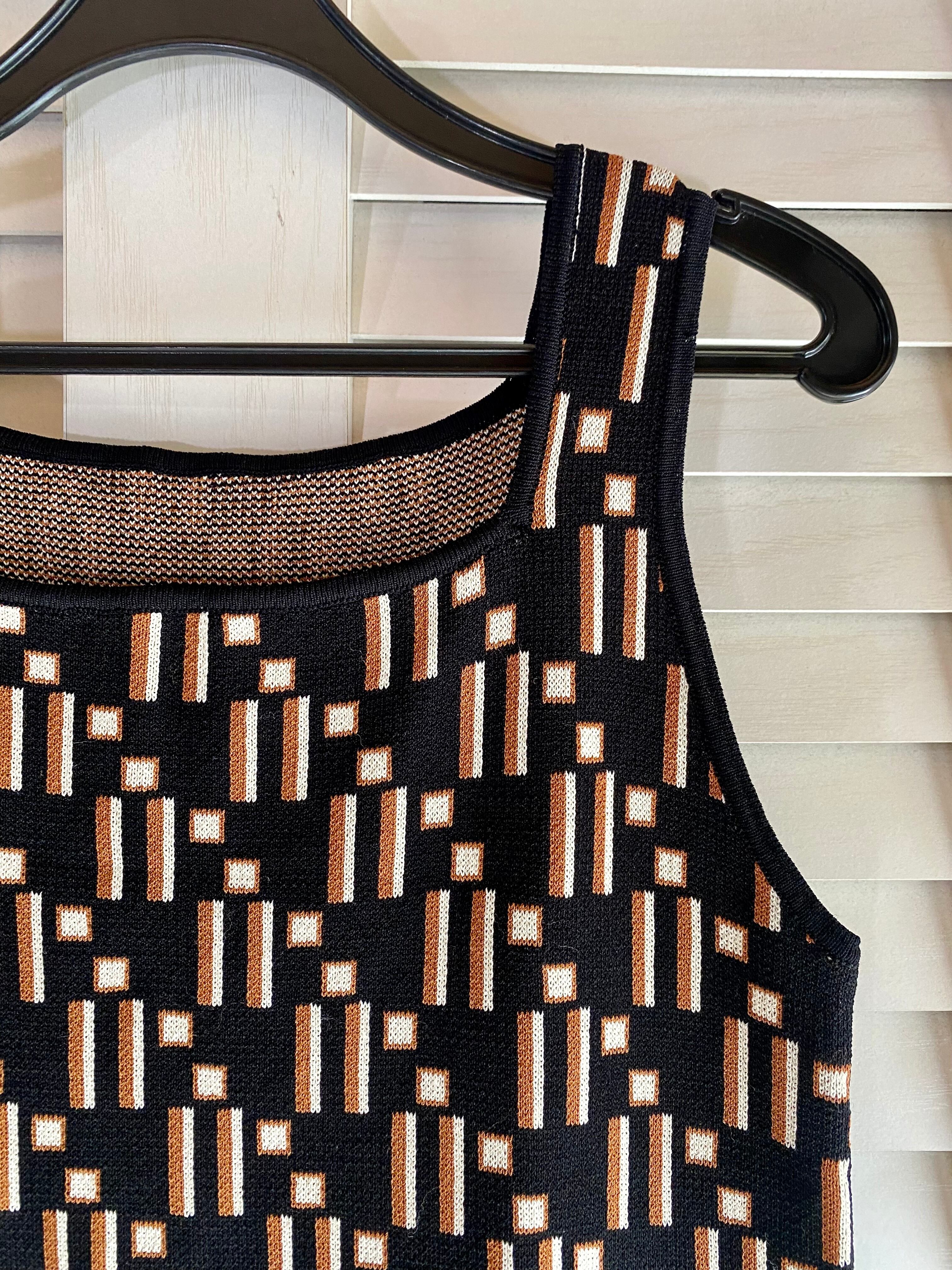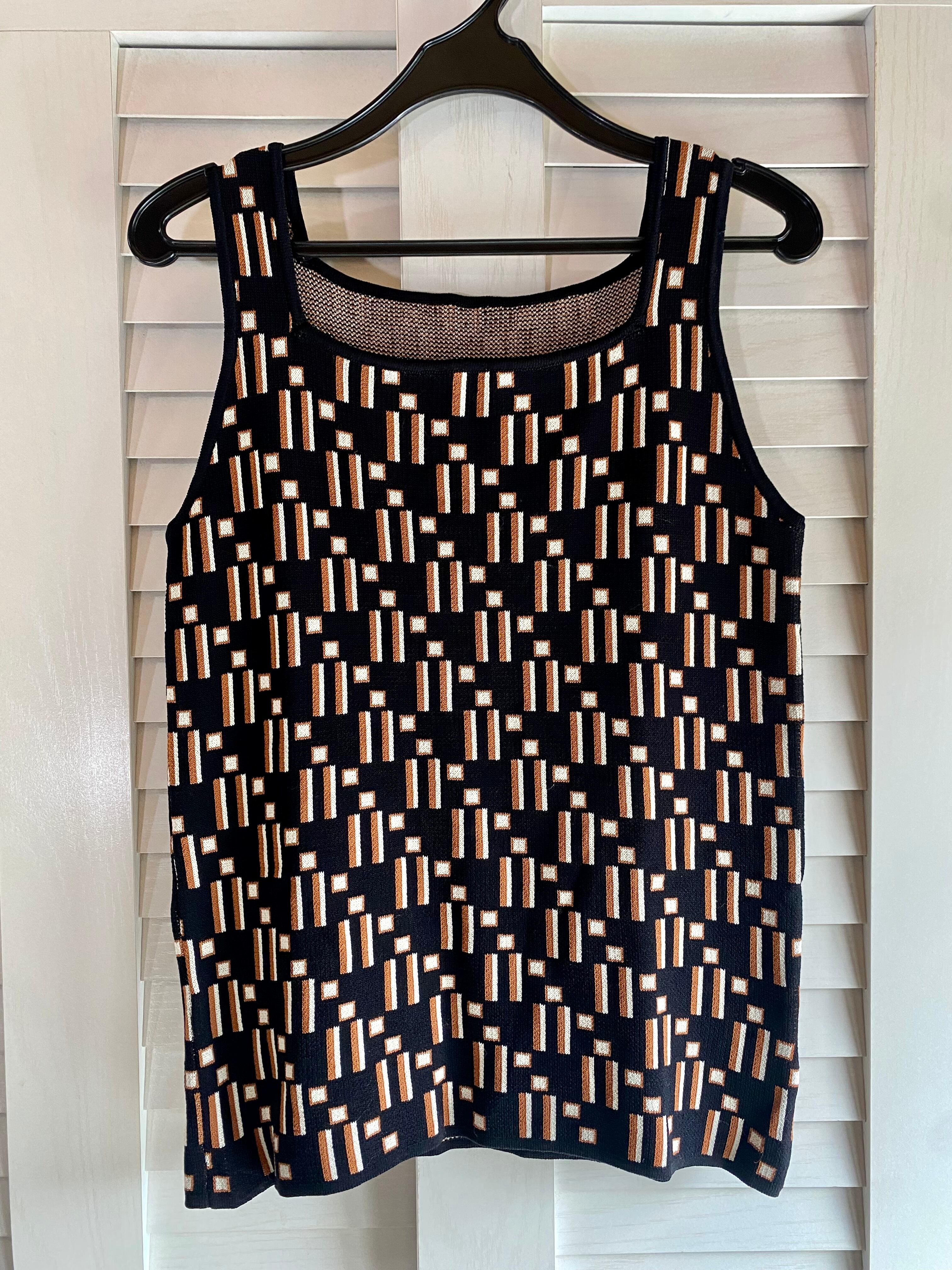 E様専用◎#79 LOWRYS FARM レトロ幾何学 ジャガードノースリーブニット ブラック