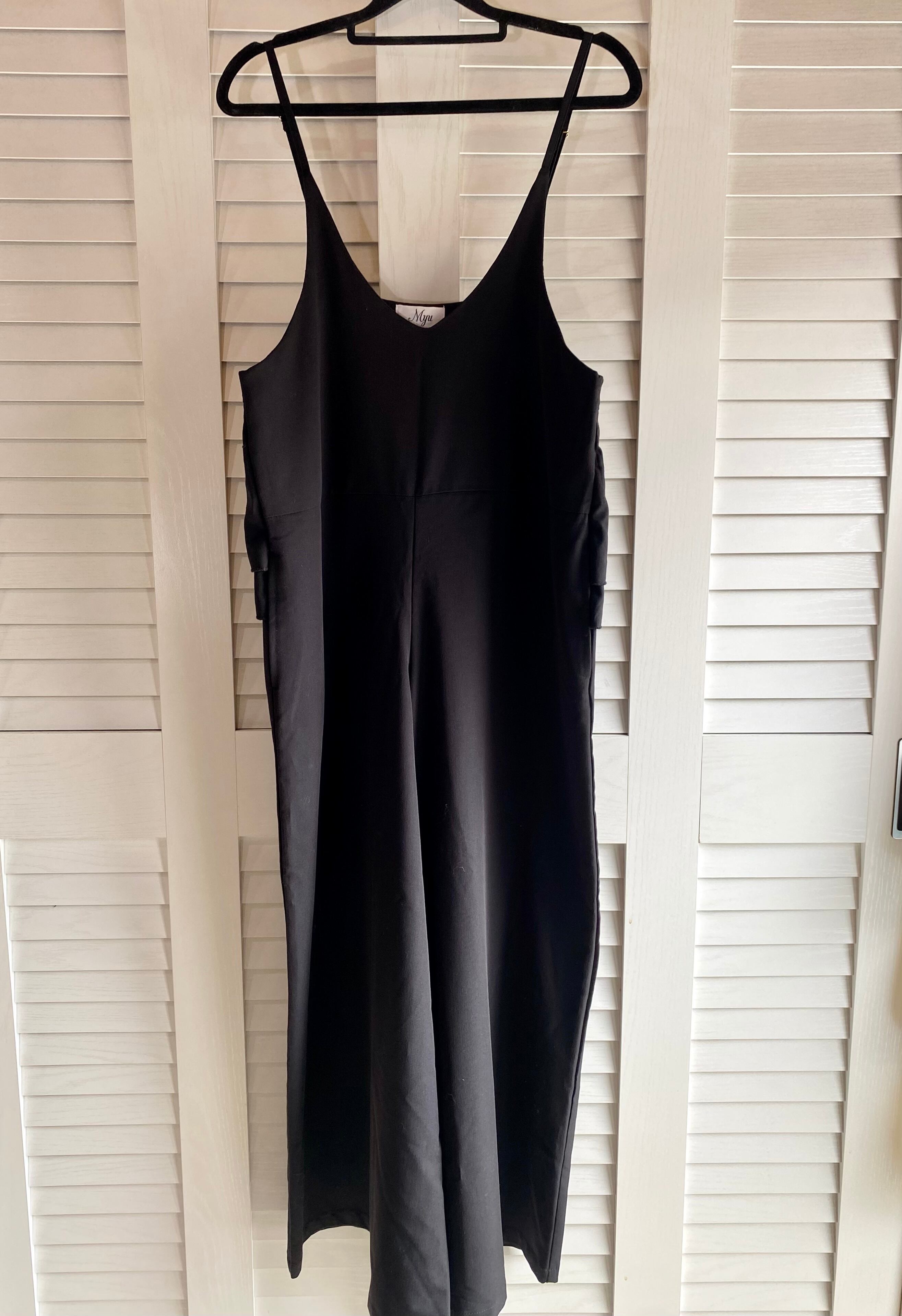 #79 Myu バックフリル ストレッチサロペットワイドパンツ ブラック