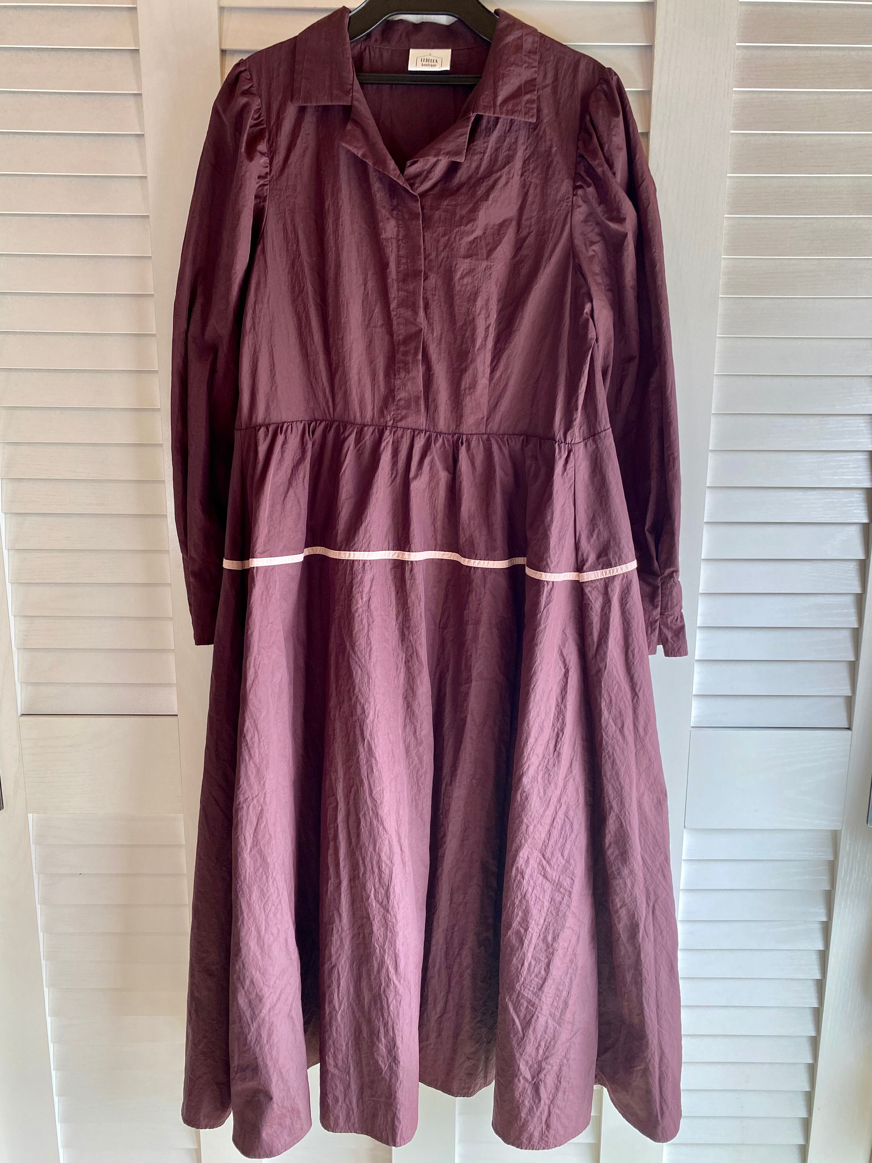 #80 LEBECCA boutique ワッシャーナイロン ウエスト切替シャツワンピ バーガンディ