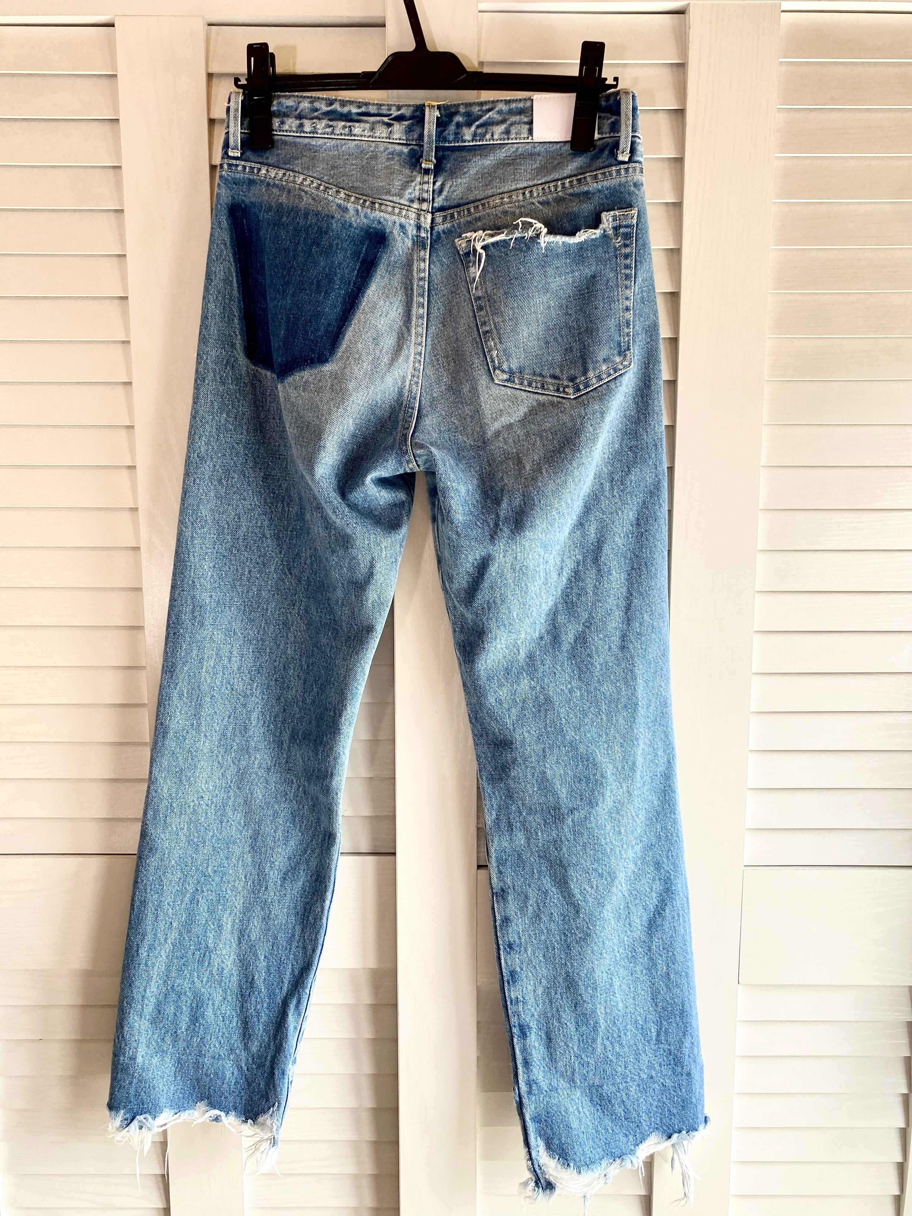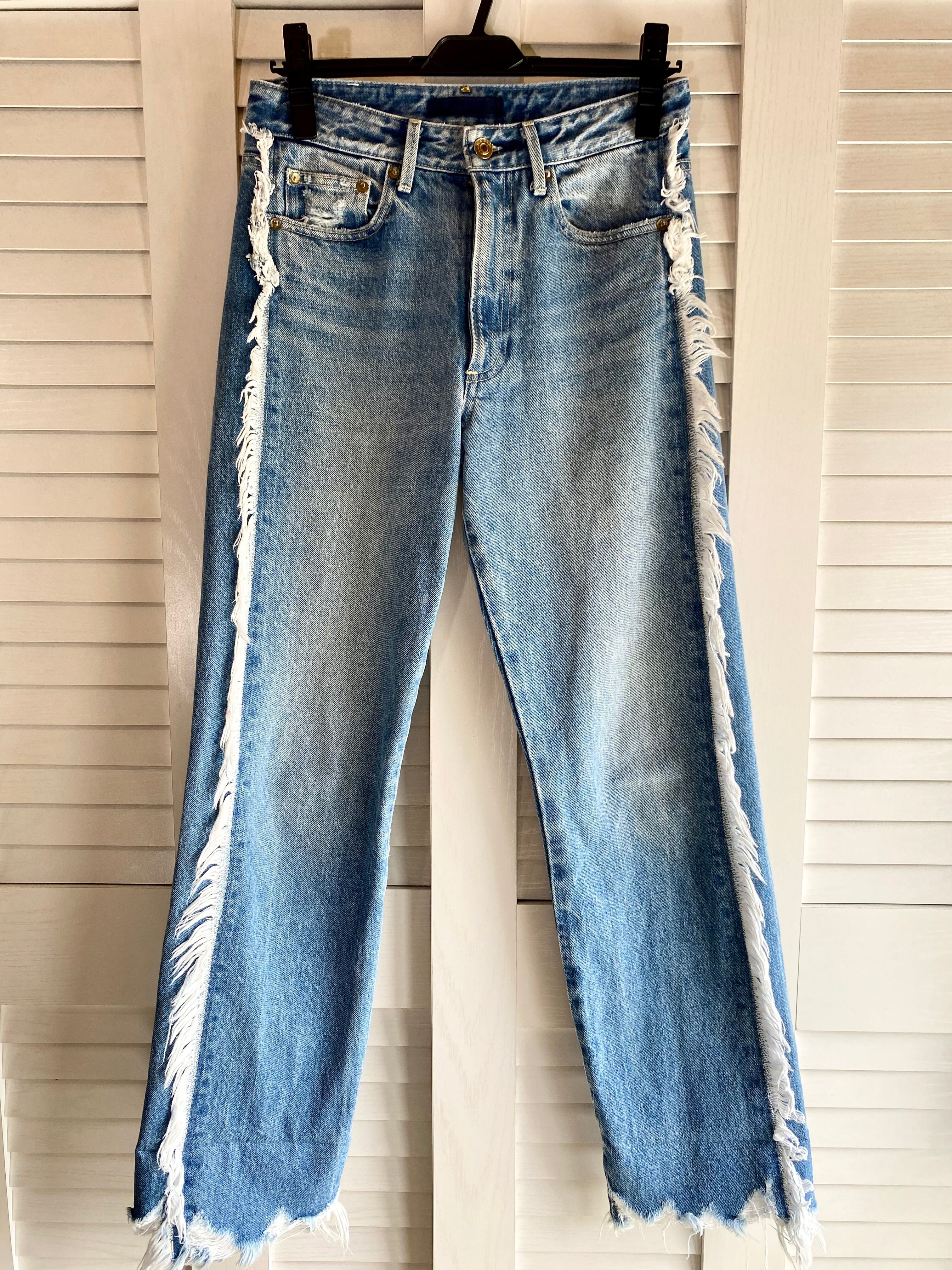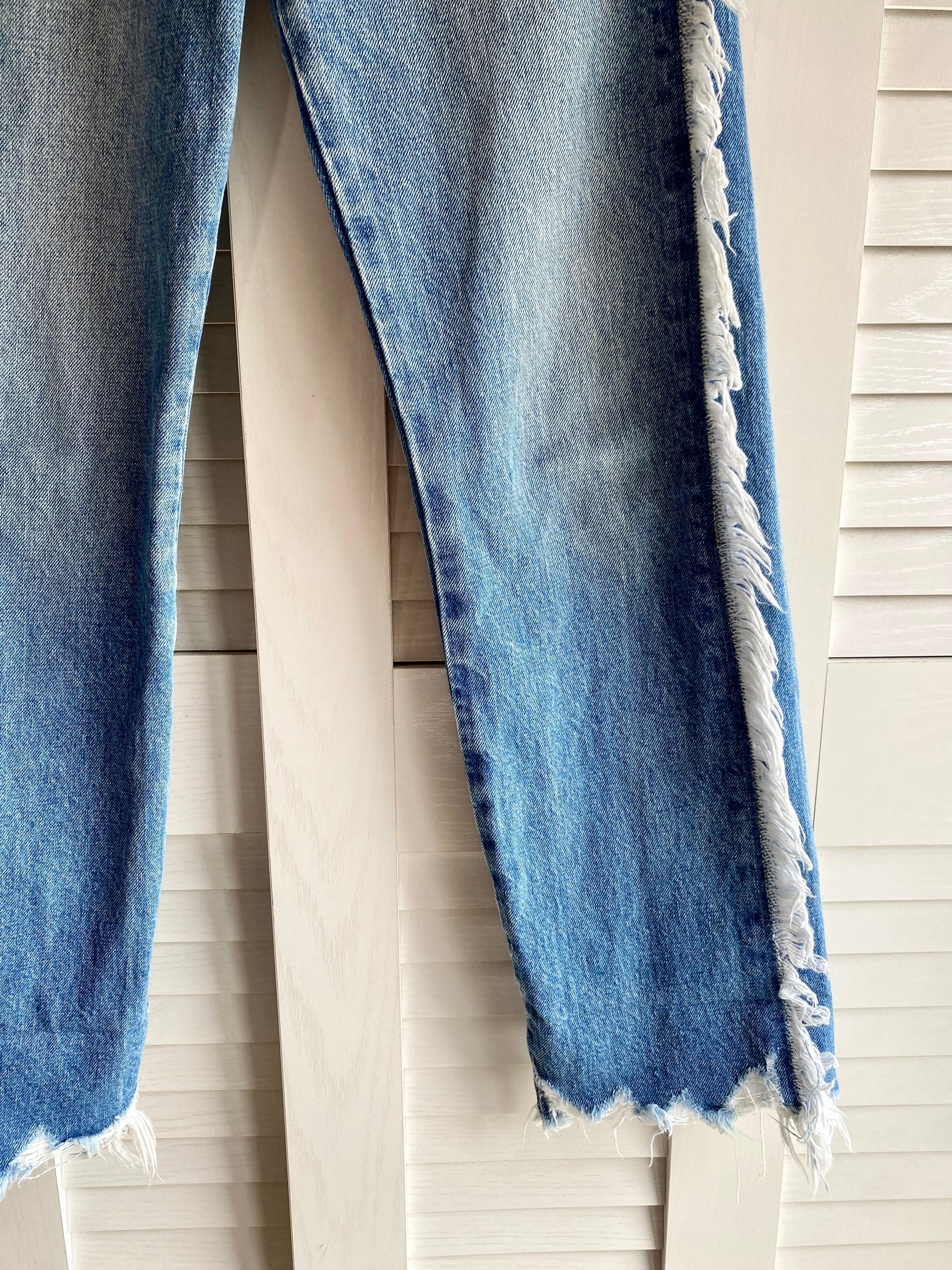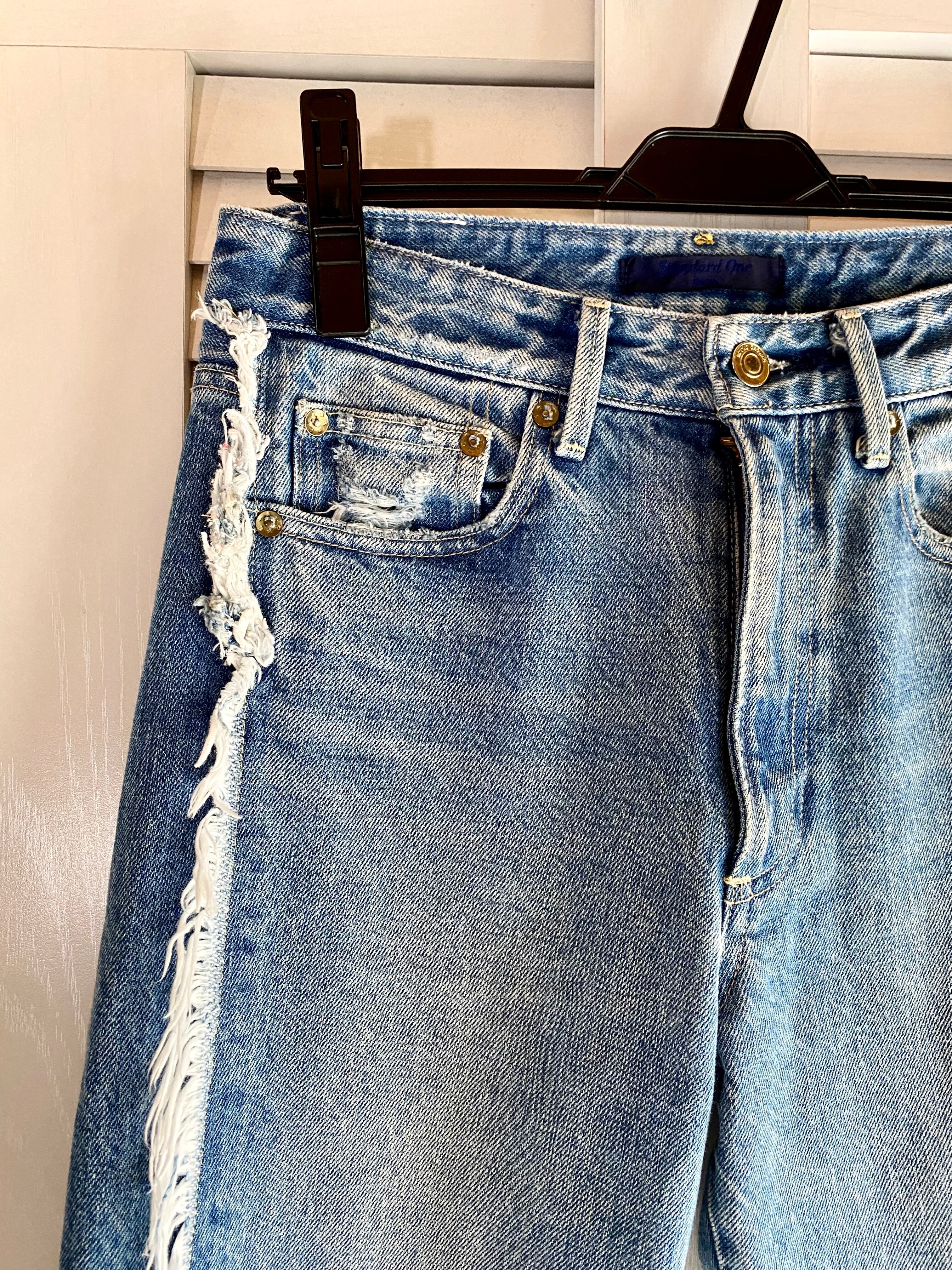 #80 RODEO CROWNS サイドフリンジデザイン ボーイフレンドジーンズ ブルー