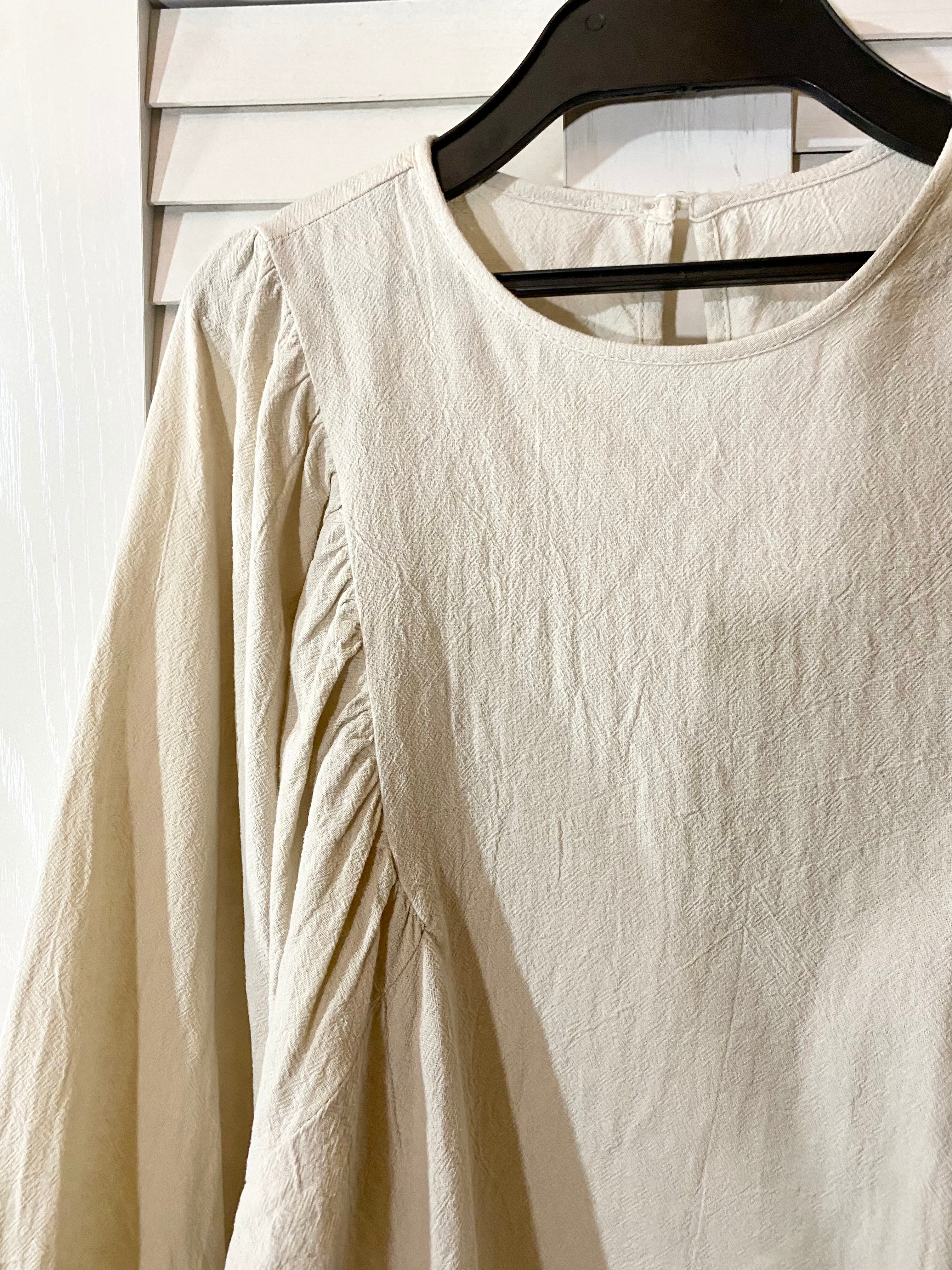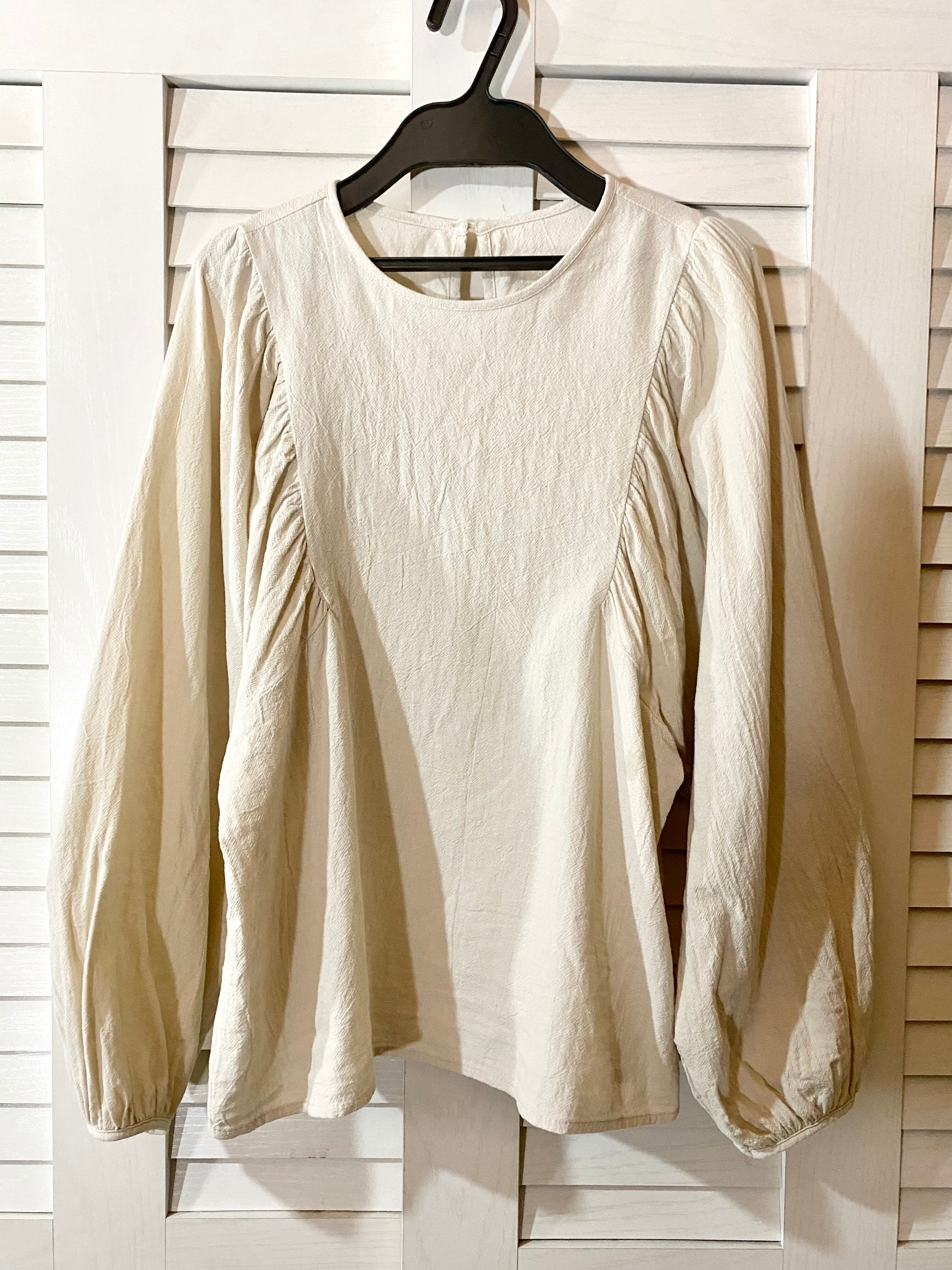 ★配信★JUNOAH ナチュラルコットン デザインバルーンスリーブブラウス ナチュラルベージュ