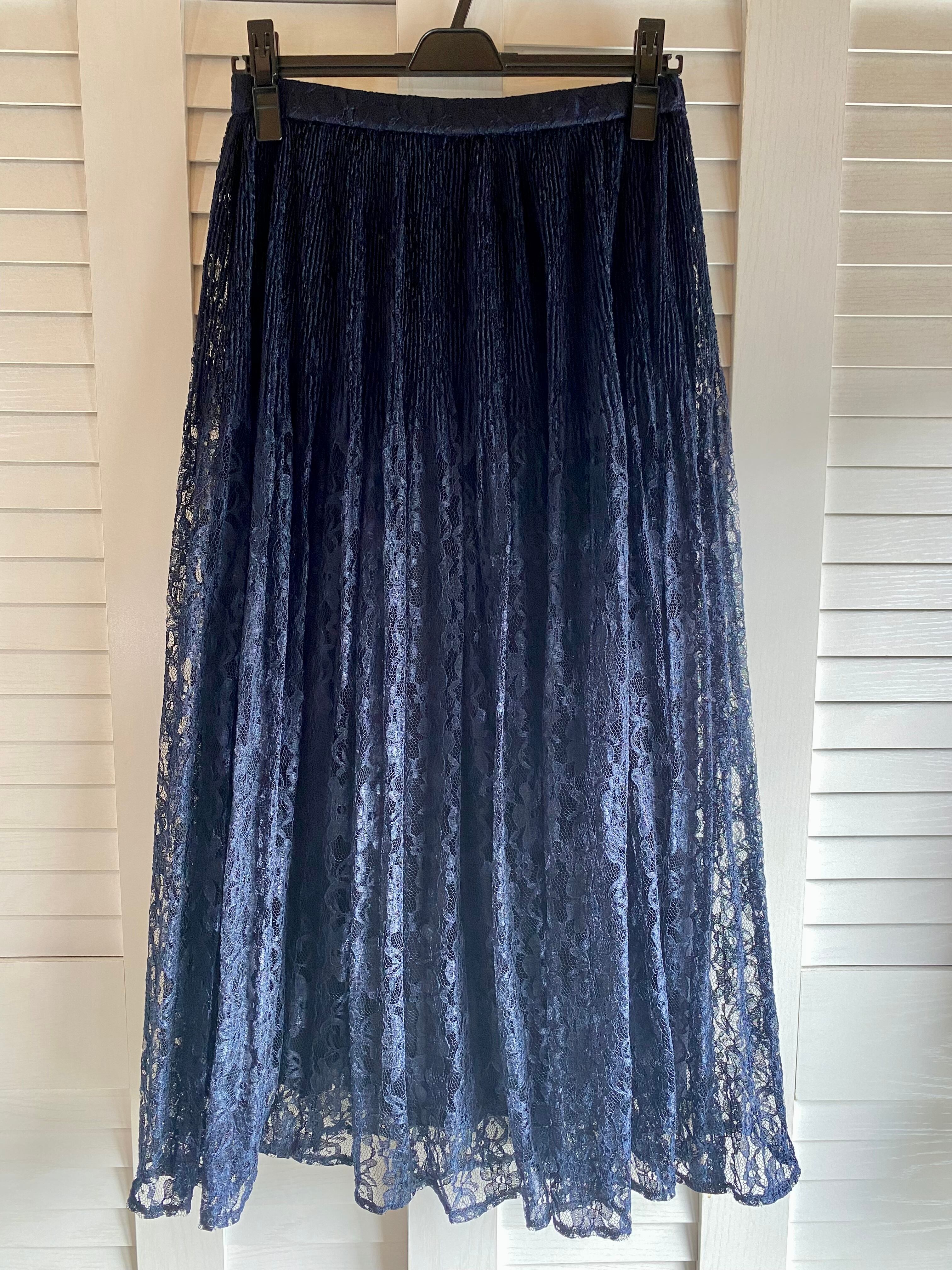 #82 DRESKIP 総レース アコーディオンプリーツ ボリュームスカート ネイビー