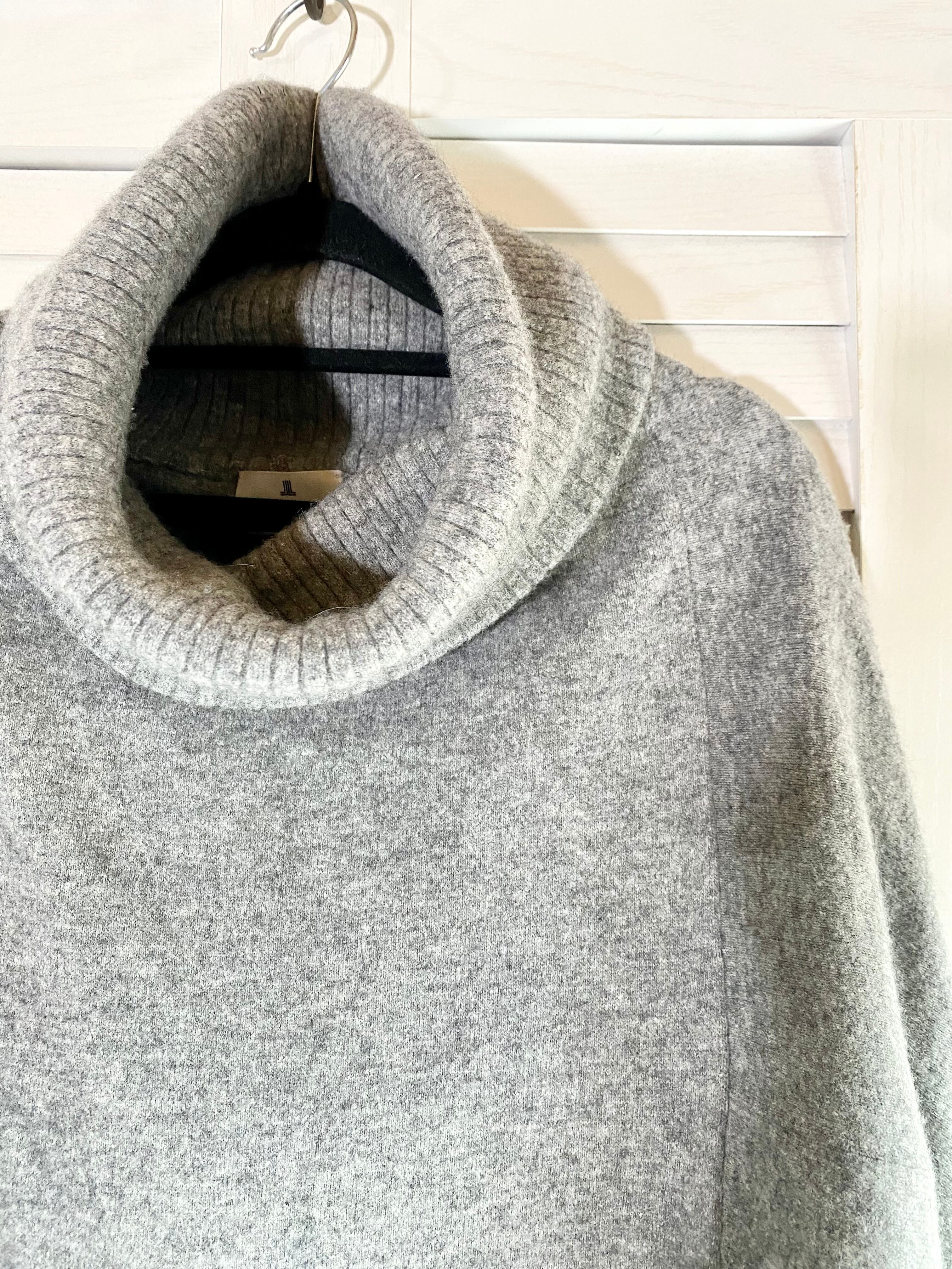 #83 LANVIN ボリュームカラー 半袖ドルマン ウールニット ライトグレー