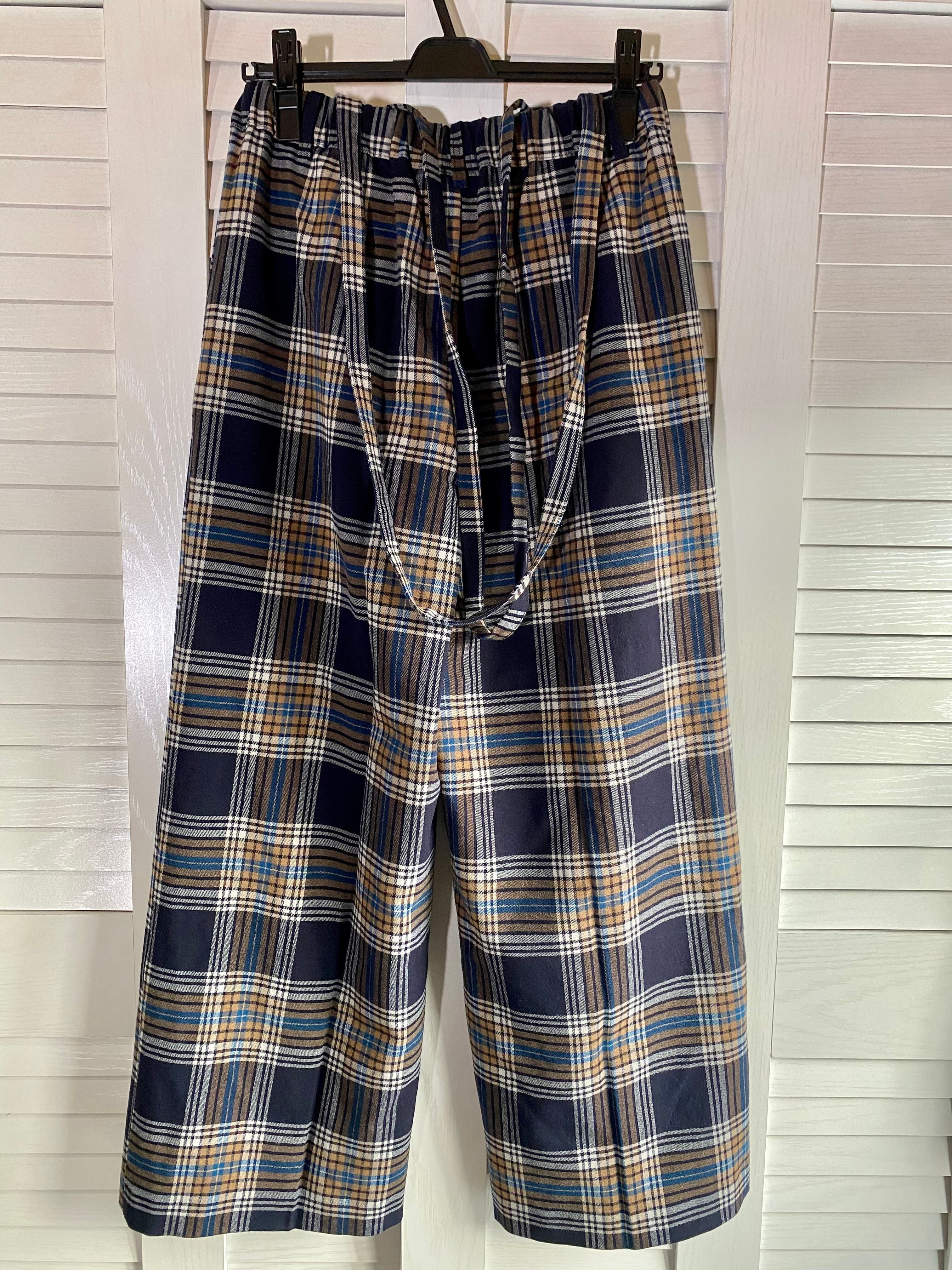 #83 niko and… ストレッチウールライクタータンチェック サスペンダーワイドパンツ ネイビー