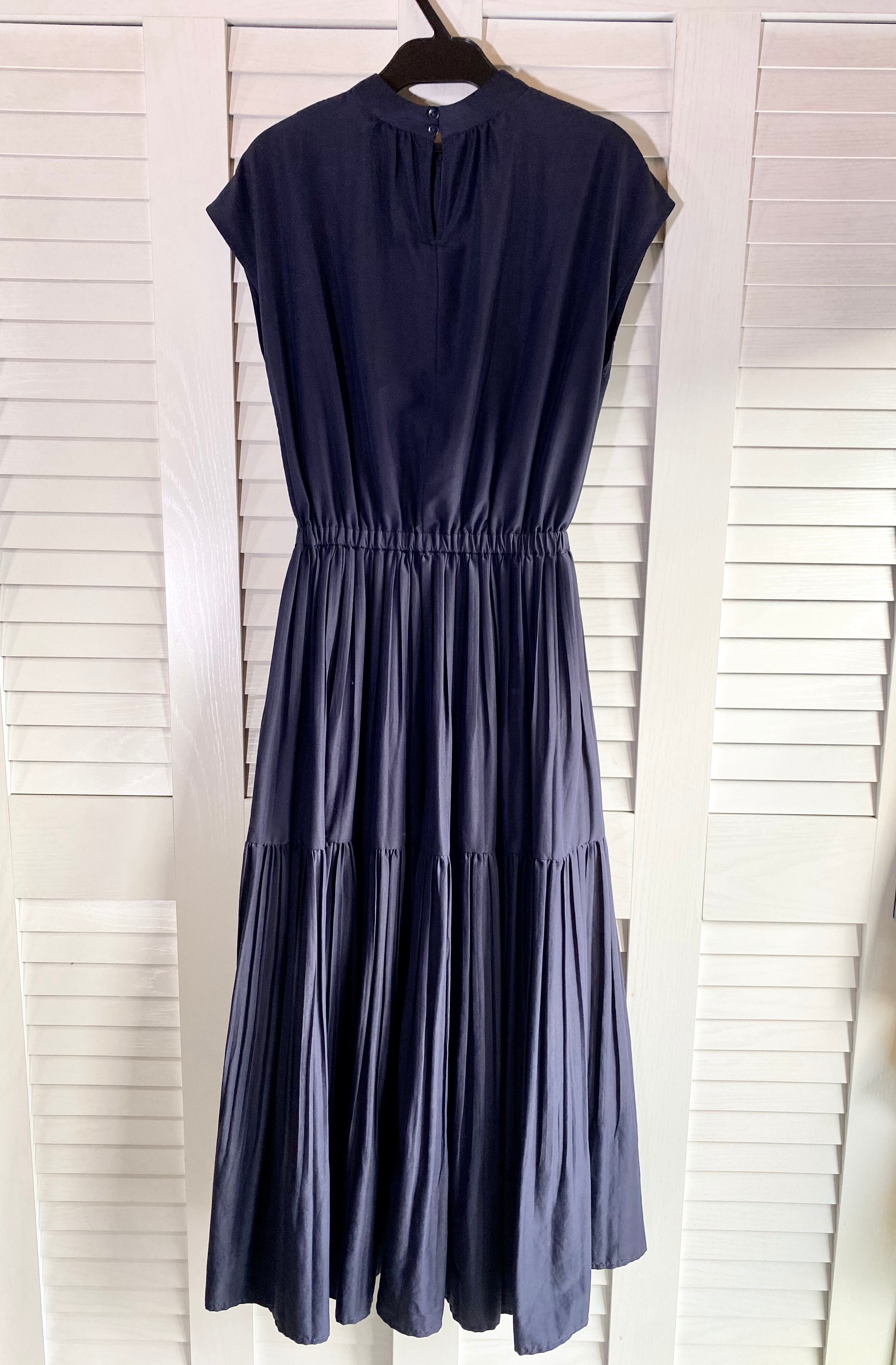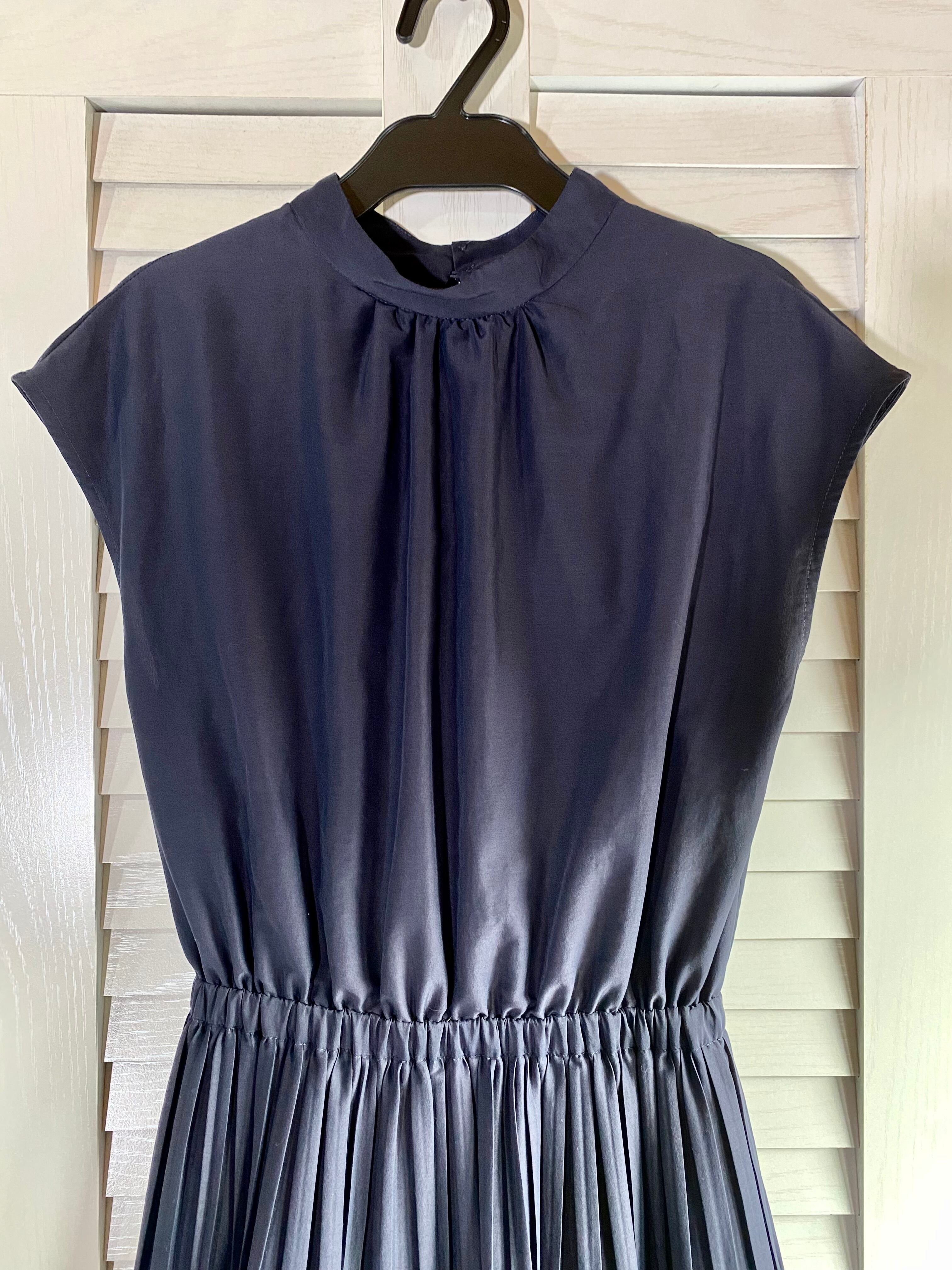 #83 NATURAL BEAUTY フレンチスリーブ アコーディオンプリーツティアードスカートワンピ ネイビー