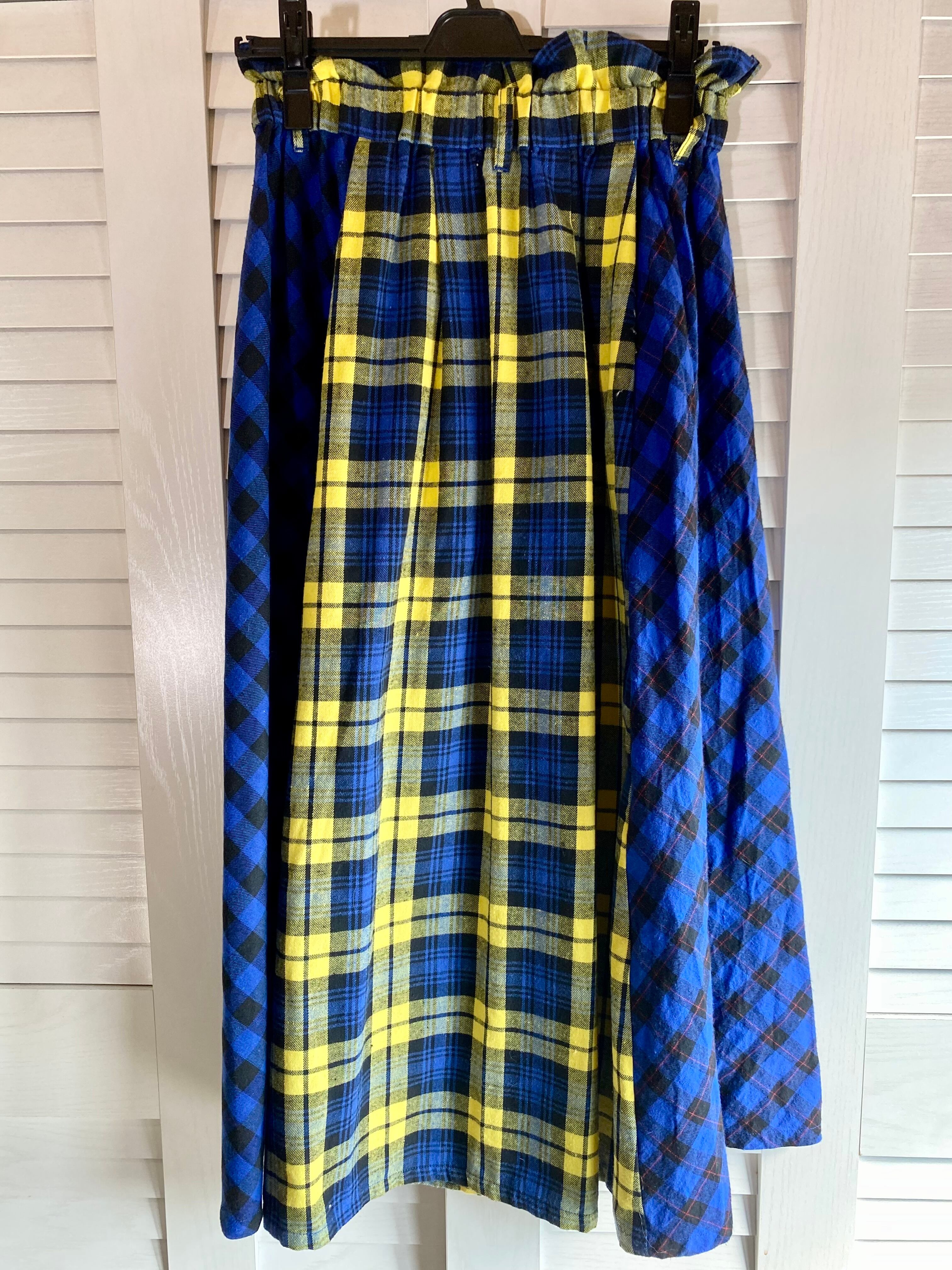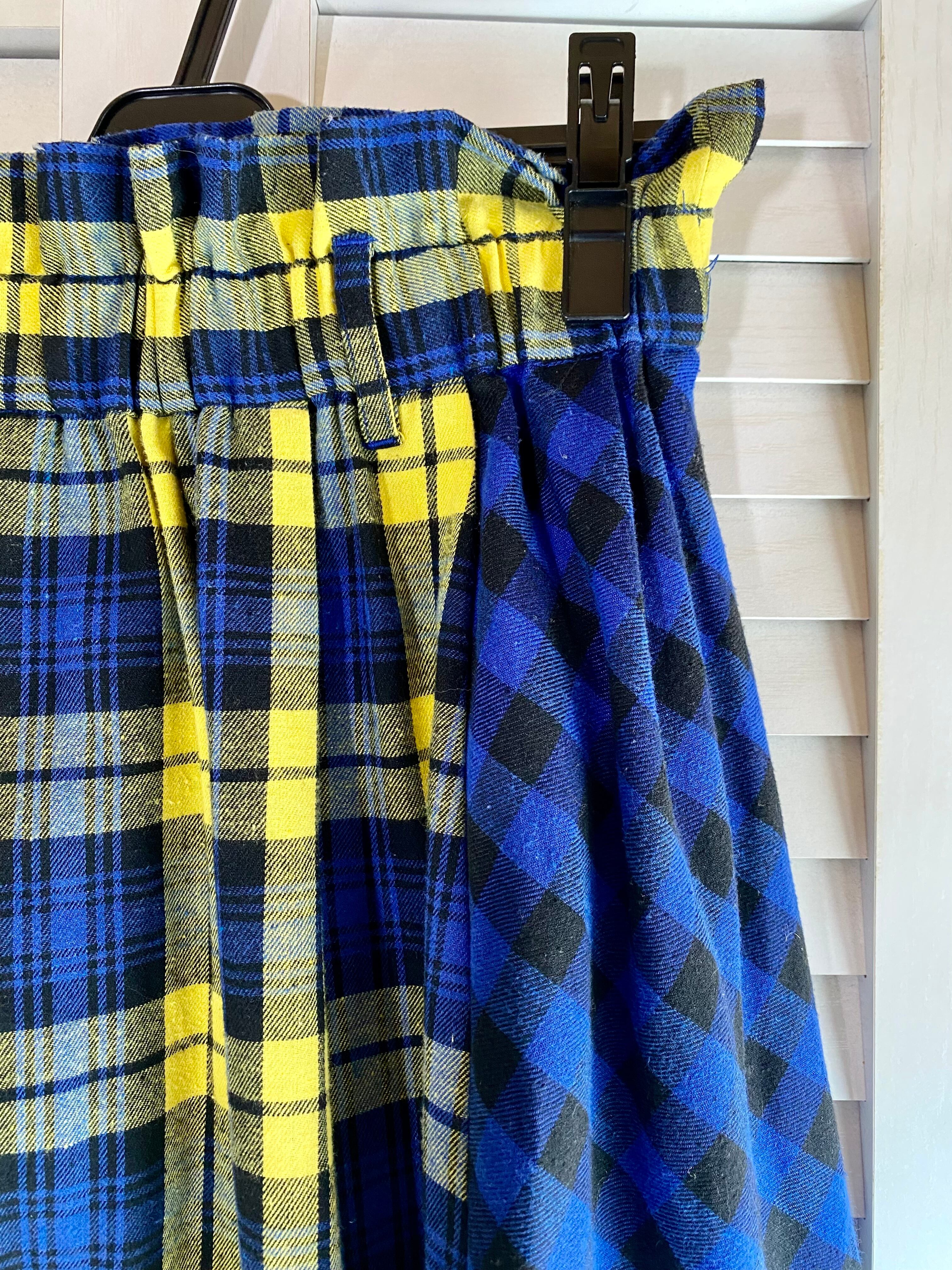 #84 Wears inc. パターンタータンチェックパッチワーク ハイウエスト フランネルボリュームスカート イエロー×ブルー