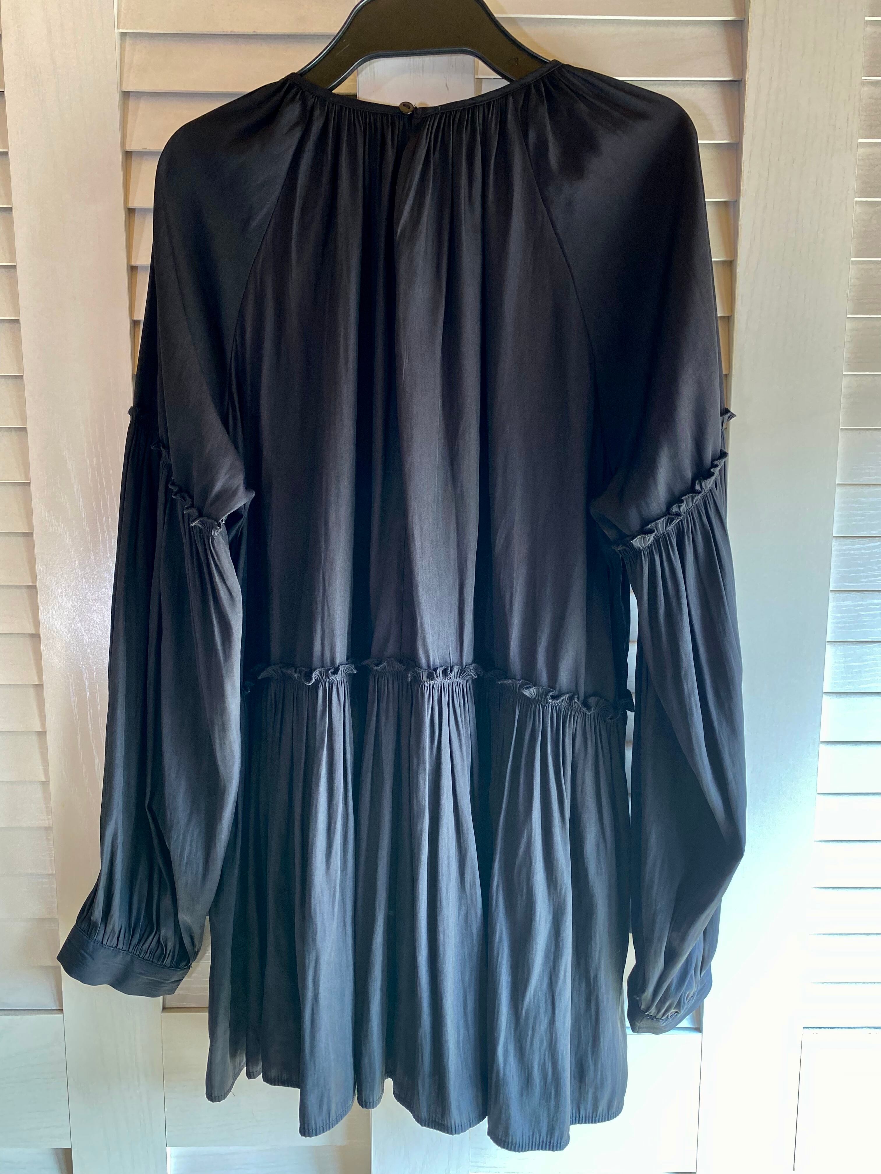 #84 AMERICAN HOLIC バックサテン バルーンスリーブ ティアードブラウス ブラック