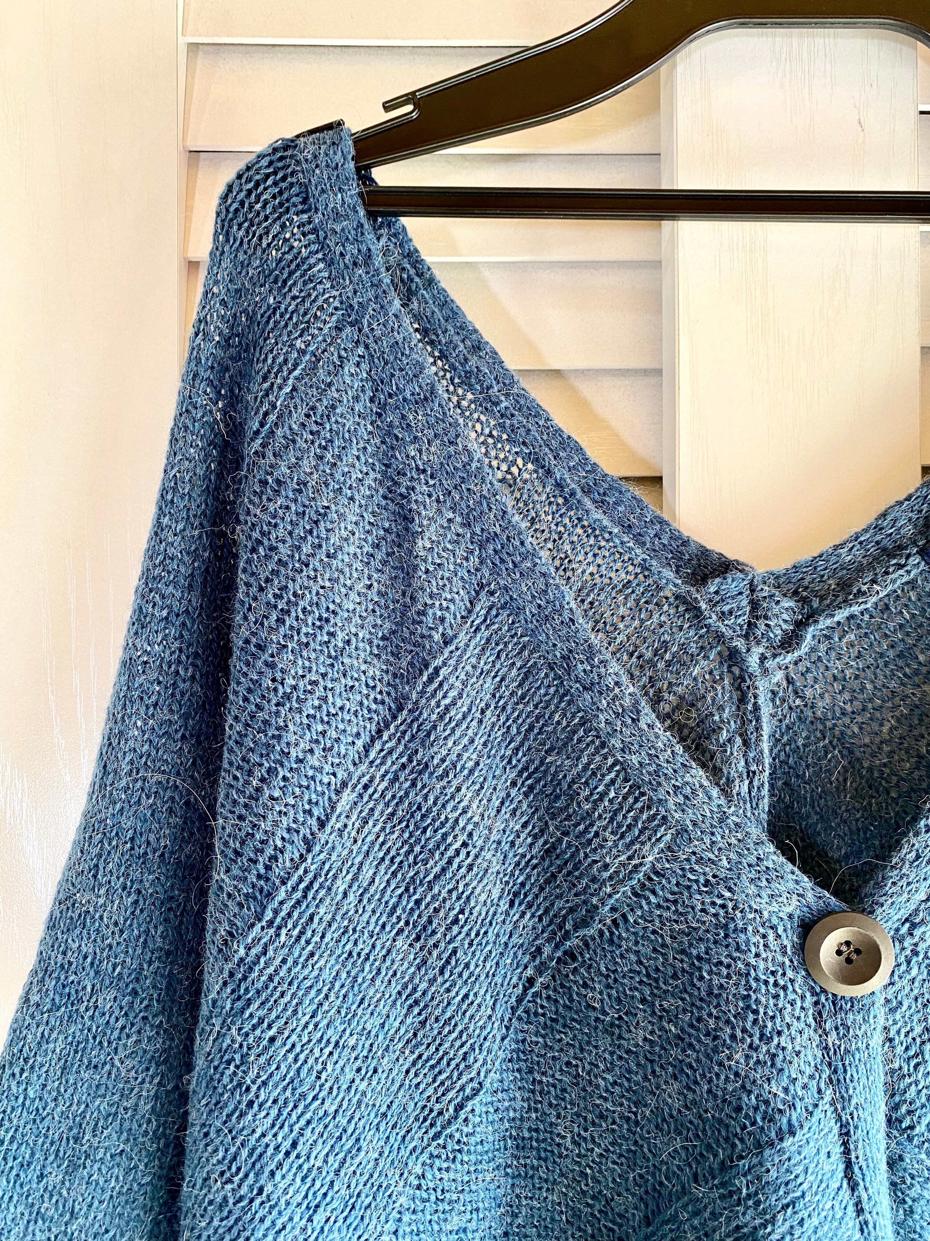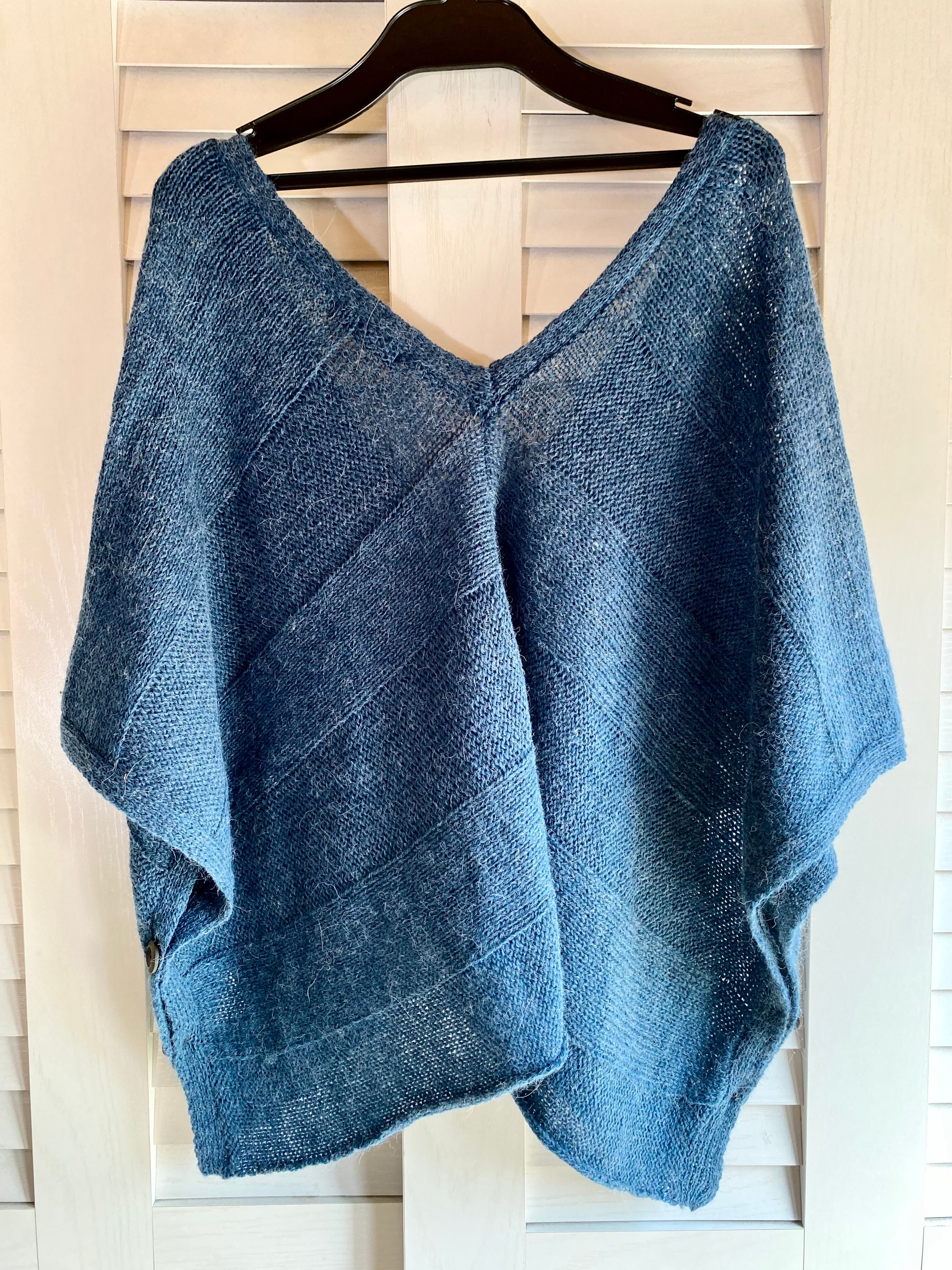 #84 MELROSE アルパカウール ショート丈 変形ポンチョカーデ ダークブルー