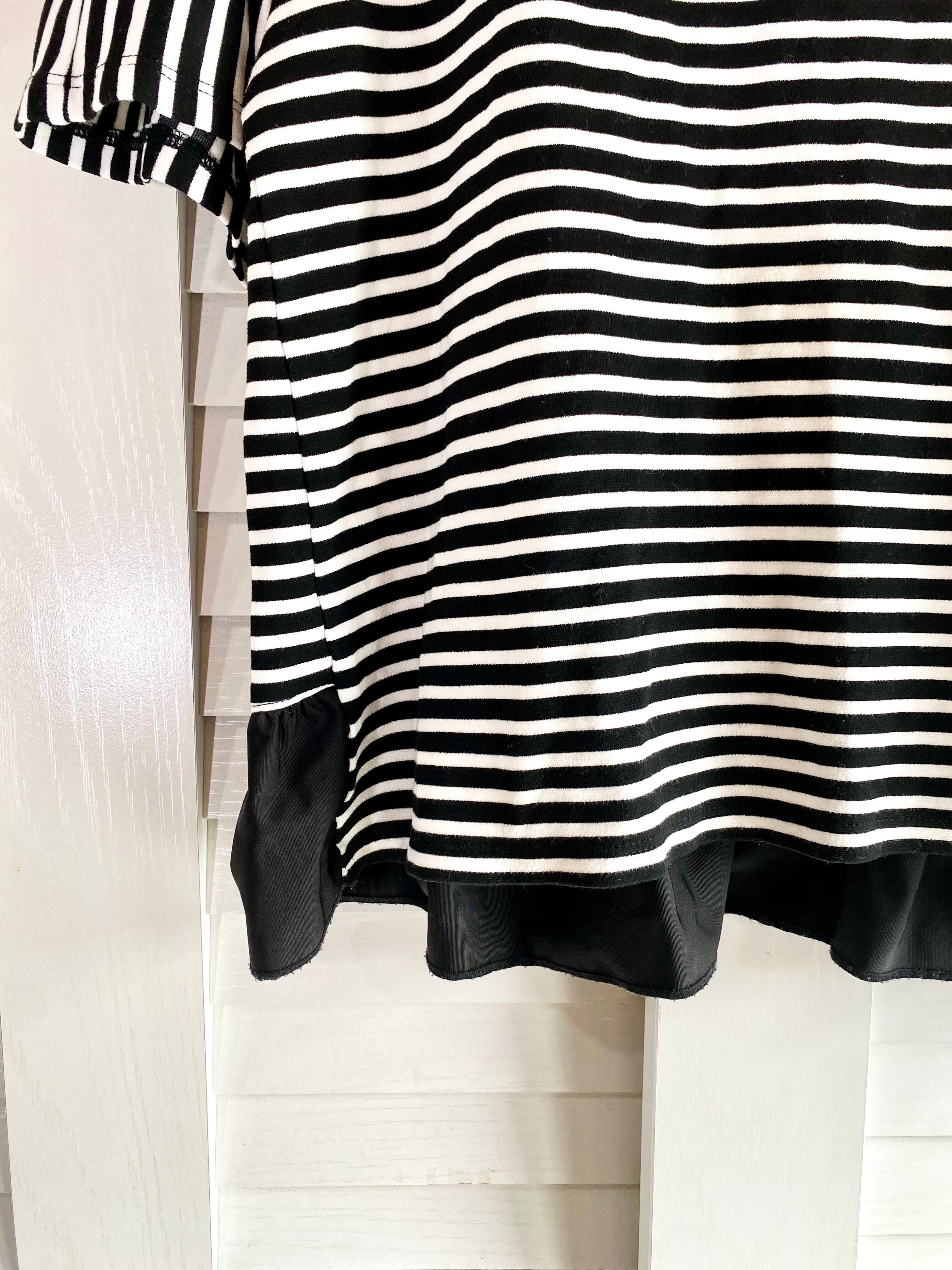 #85 LANVIN バックグラグランリボン&タフタフリル ボーダーカットソーブラウス ブラック