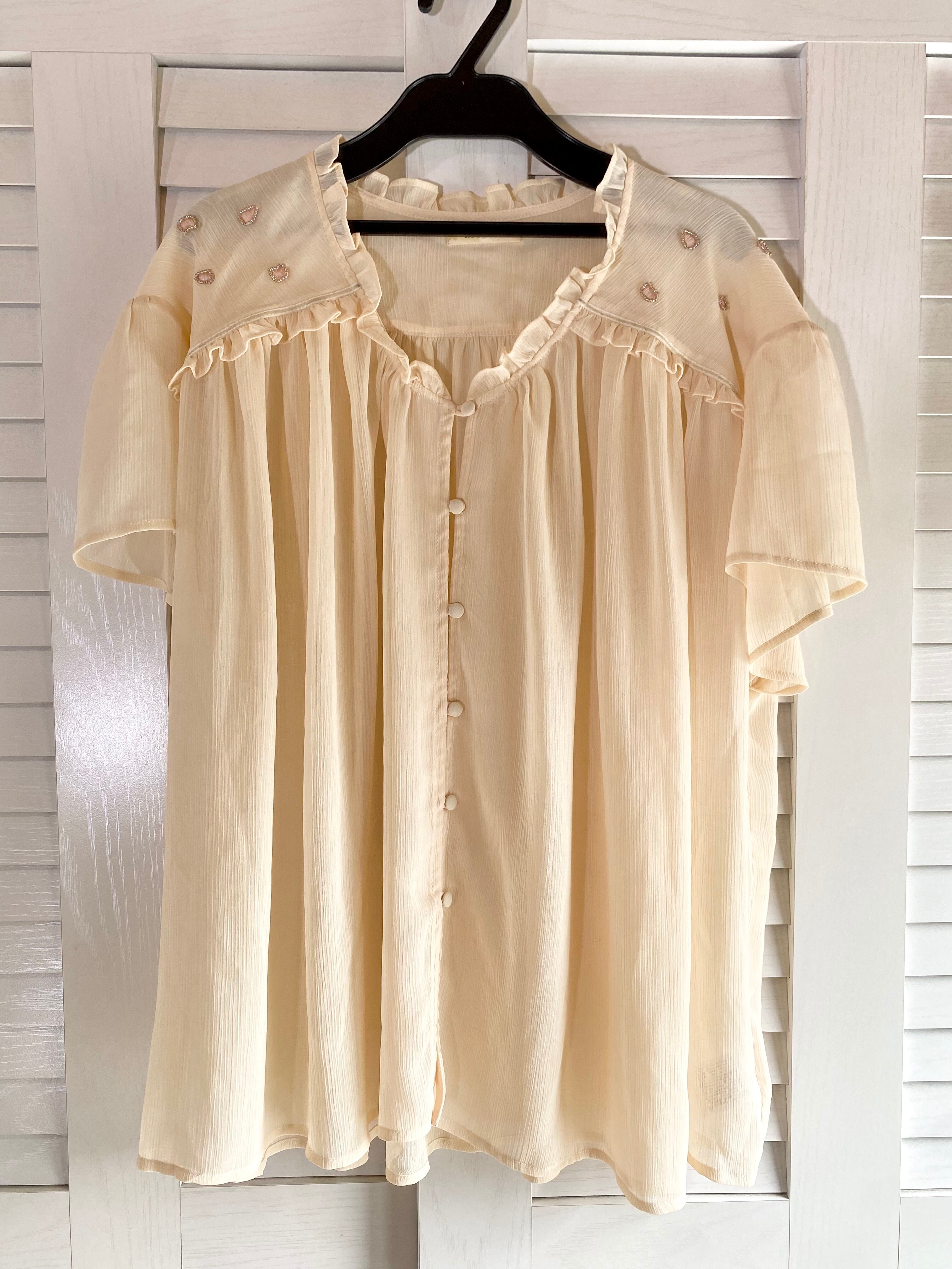 #85ROSE BUD ビーズ&ドット刺繍 楊柳ジョーゼット オーバーブラウス クリームベージュ