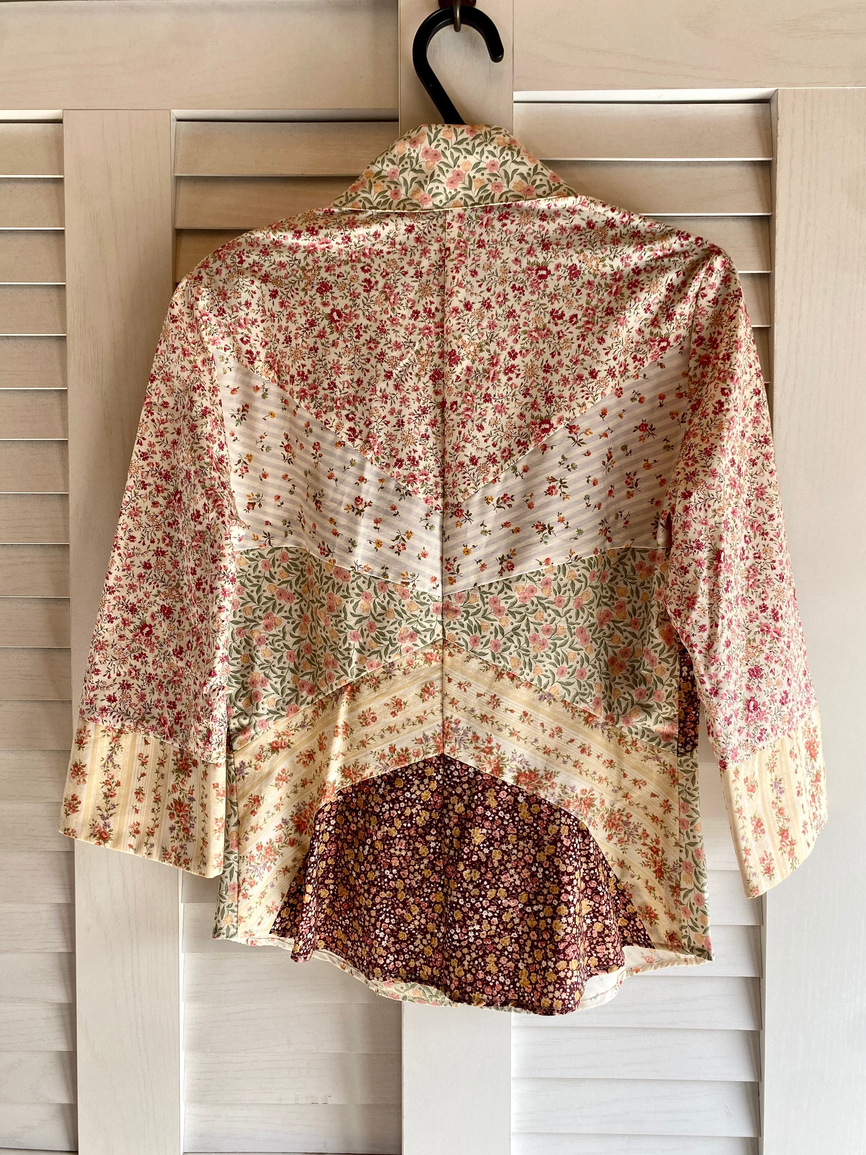 #86 GRACE CONTINENTAL 小花柄パッチワークデザインオーバーシャツブラック アイボリー