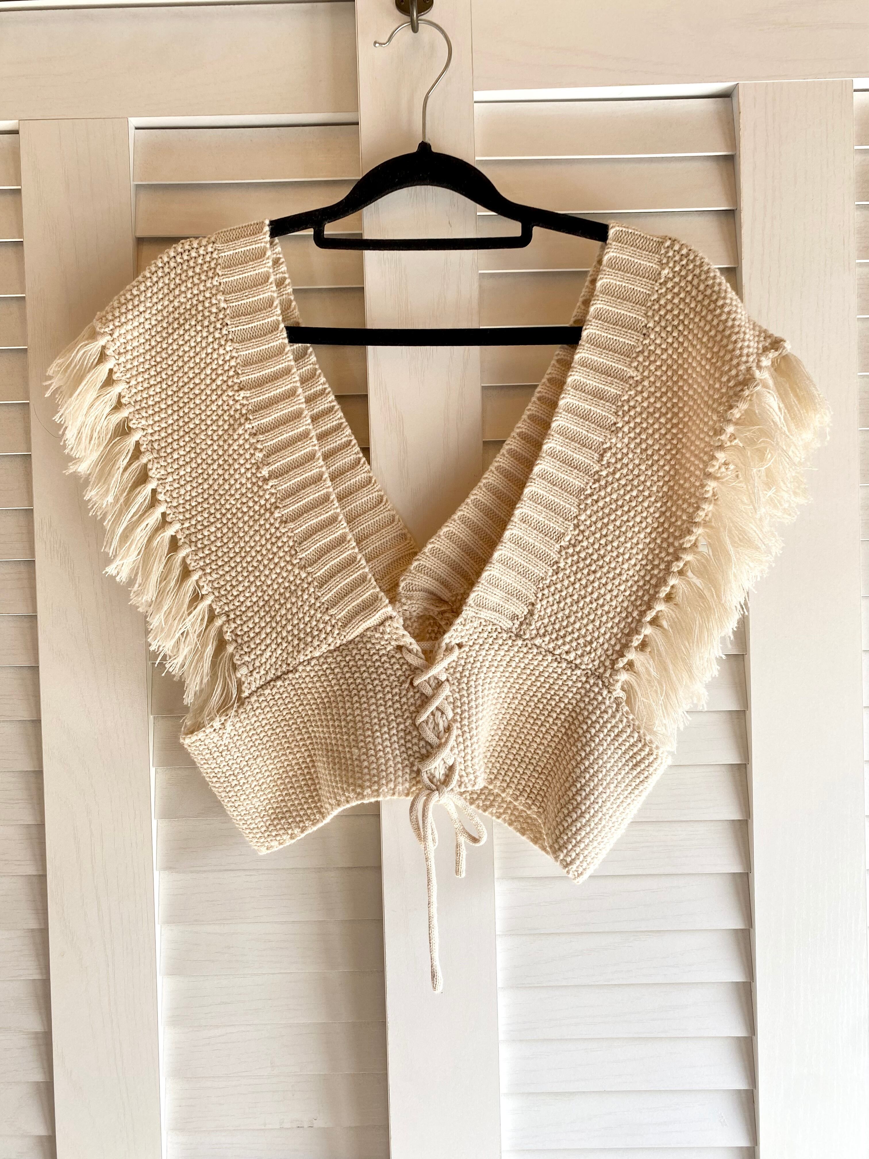 #86 ガーター編みフリンジショルダーニットビスチェ アイボリー