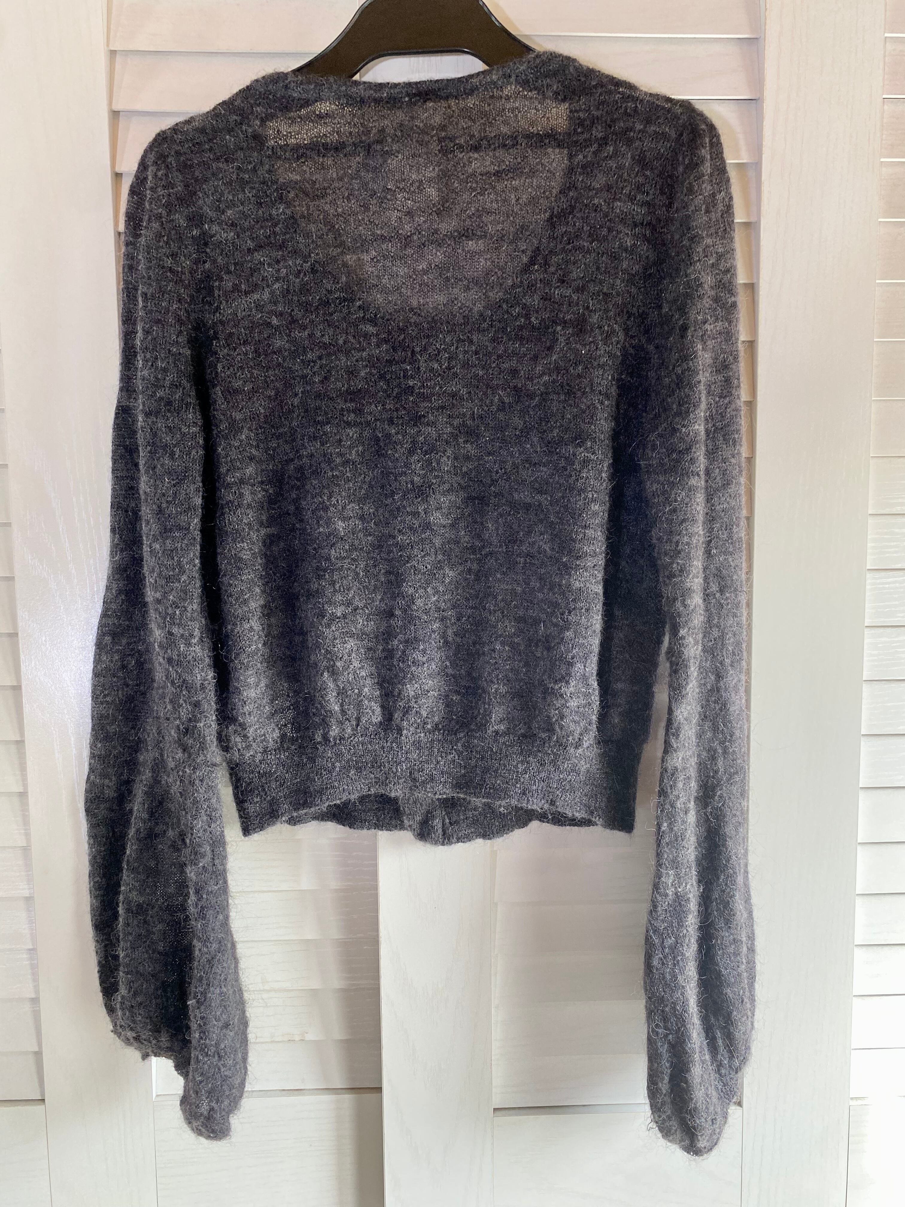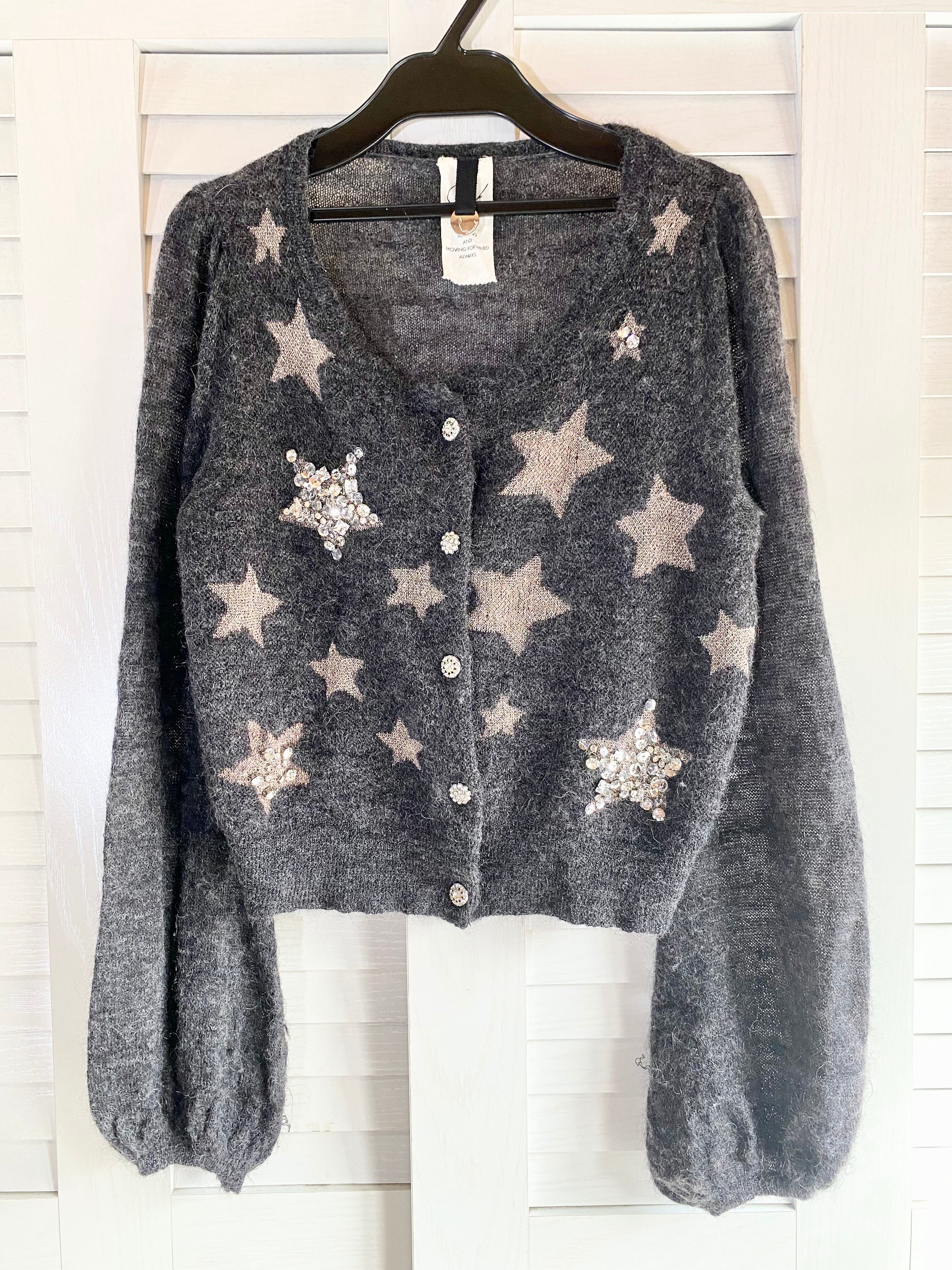 #87 Soareak ブロンズラメスター&スワロフスキー ウールモヘアニットショート丈カーデ チャコールグレー