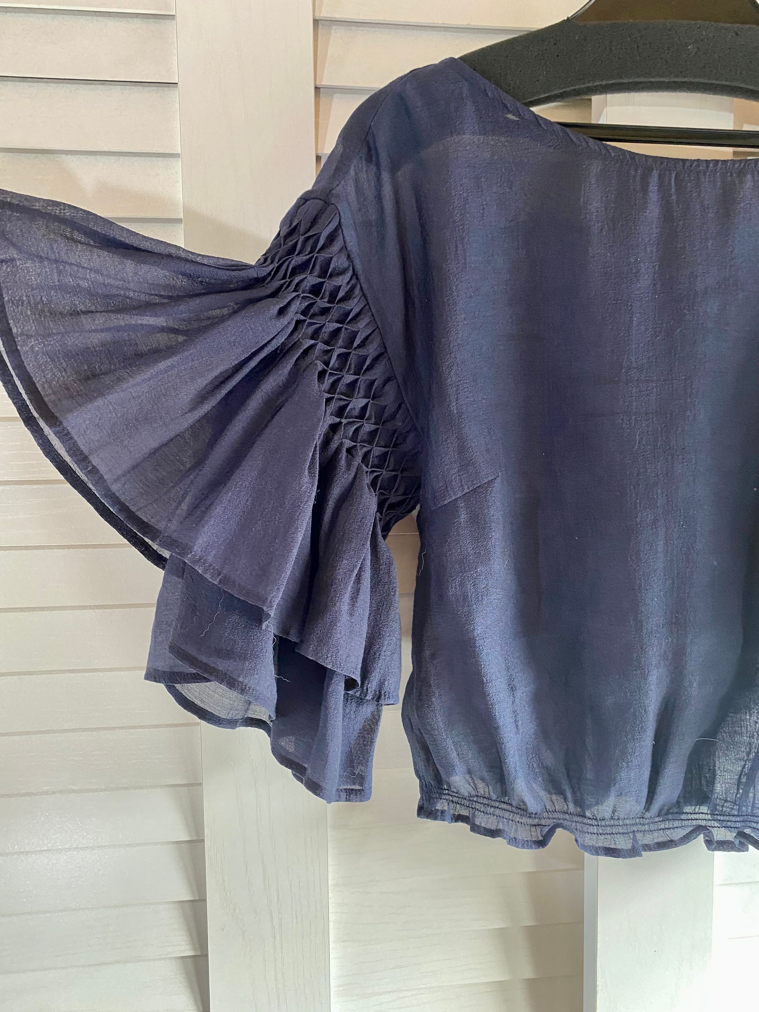 #88 Lily Brown クロッシング刺繍スリーブ ショート丈シアーブラウス ネイビー