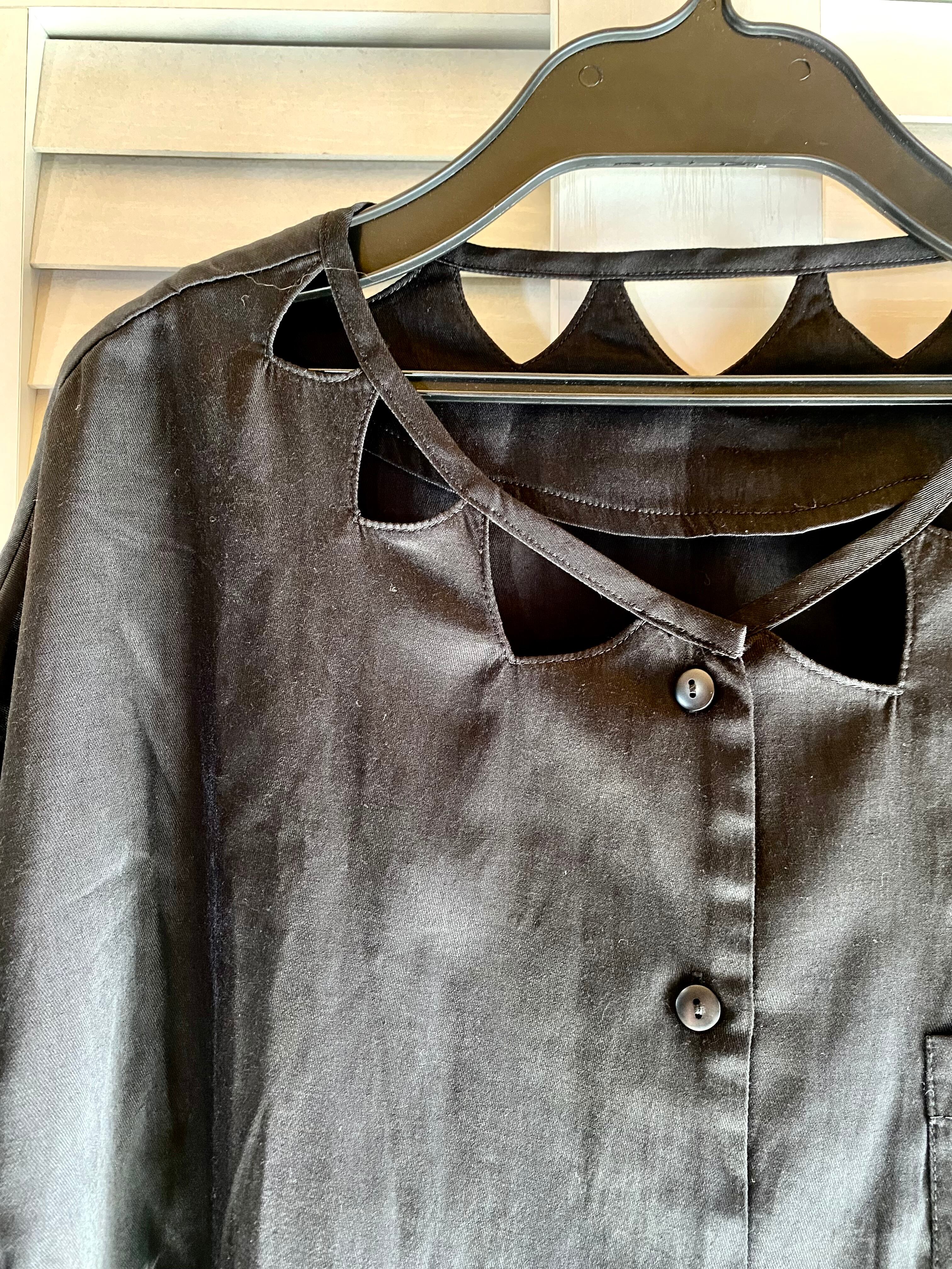 #89 BEAMS トライアングルネック オーバーサイズ半袖シャツブラウス ブラック