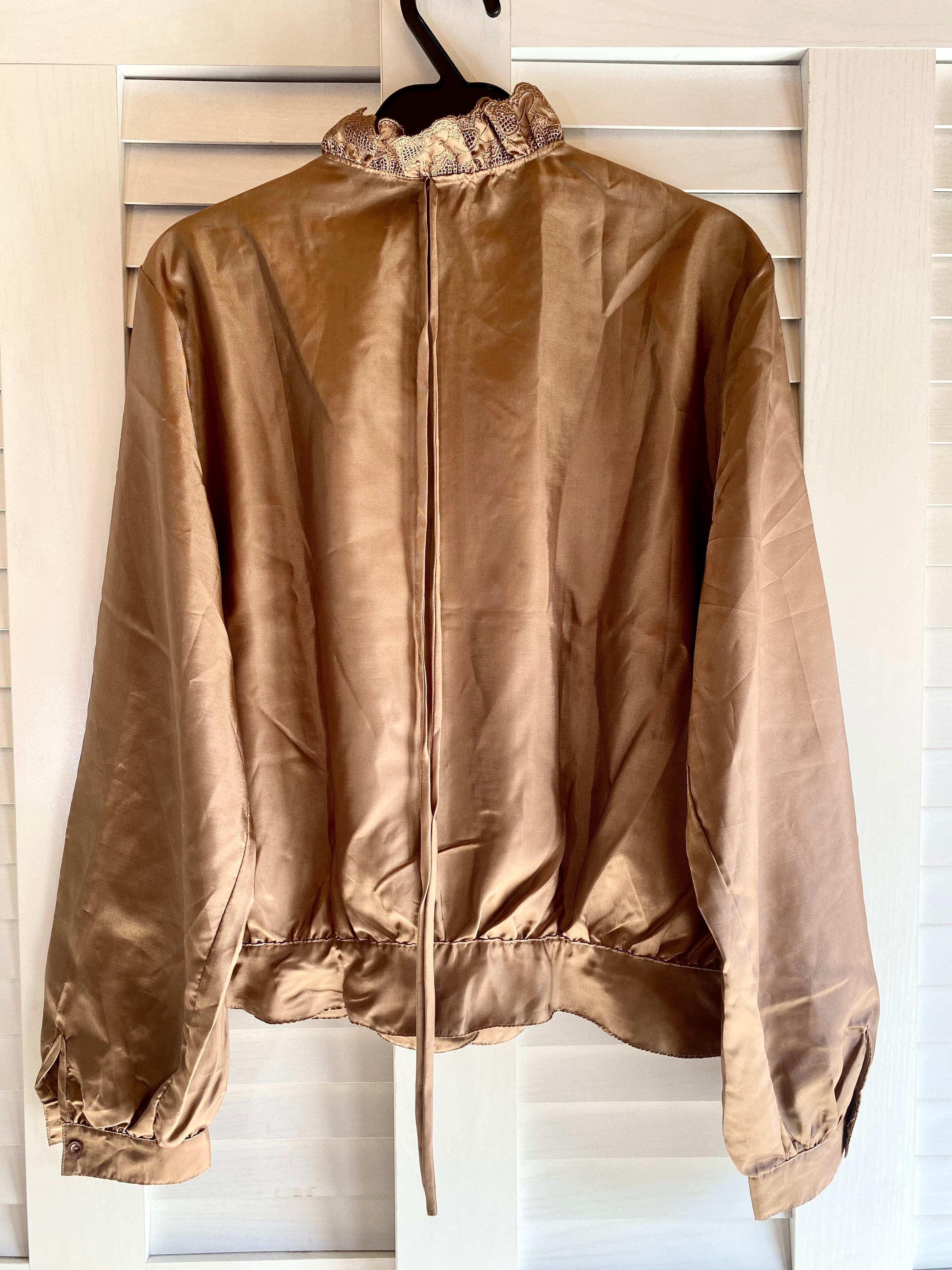 #89【古着屋購入】70Sデッドストック 刺繍レース タフタブラウス ブラウン