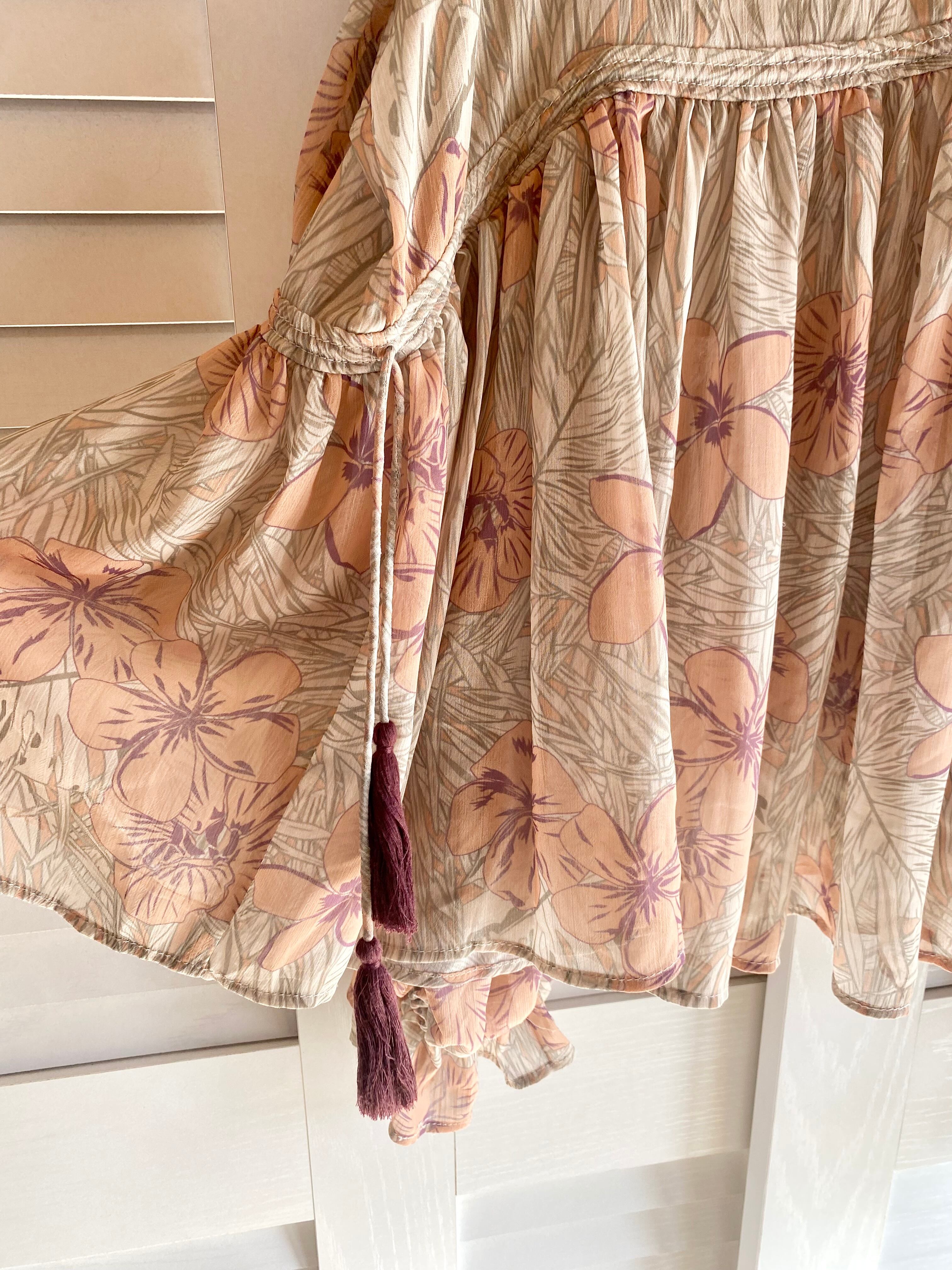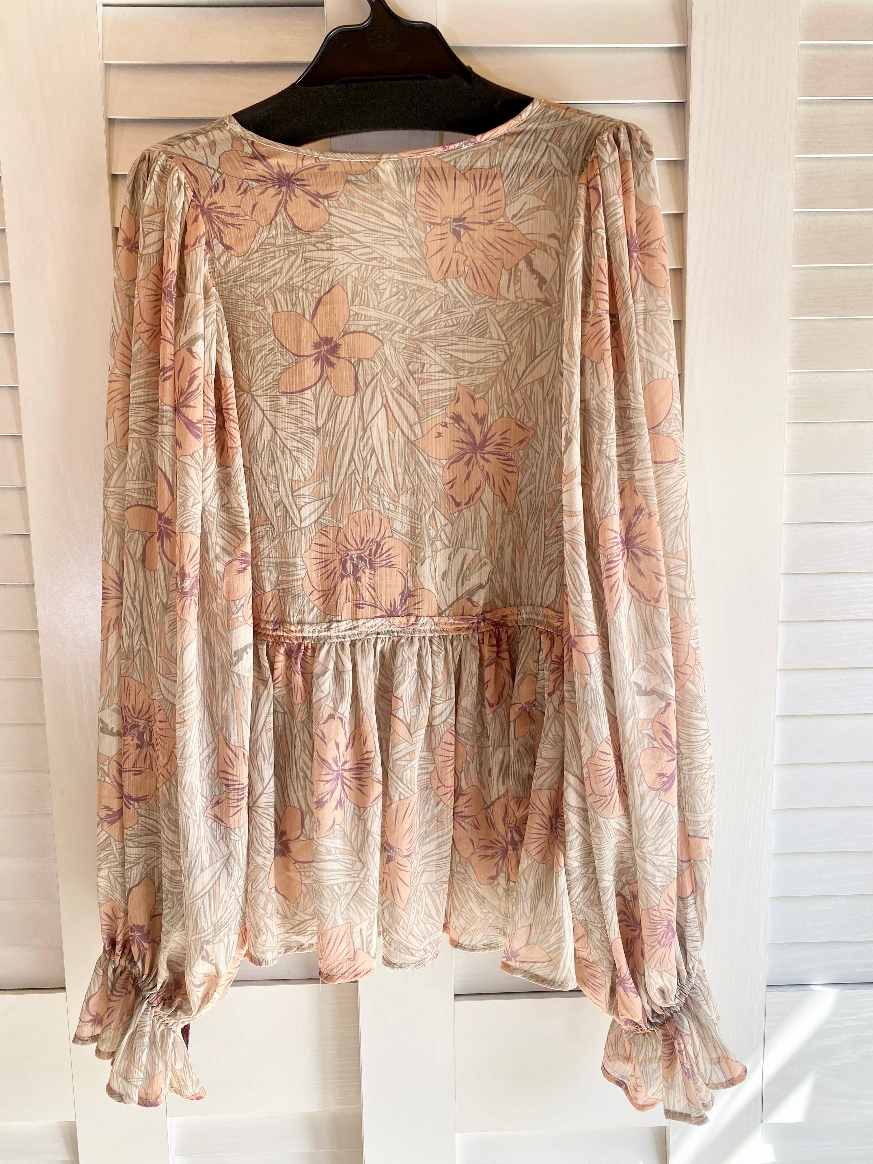 #89 Ungrid シフォンジョーゼット シアープリント ボリュームスリーブブラウス ナチュラルベージュ