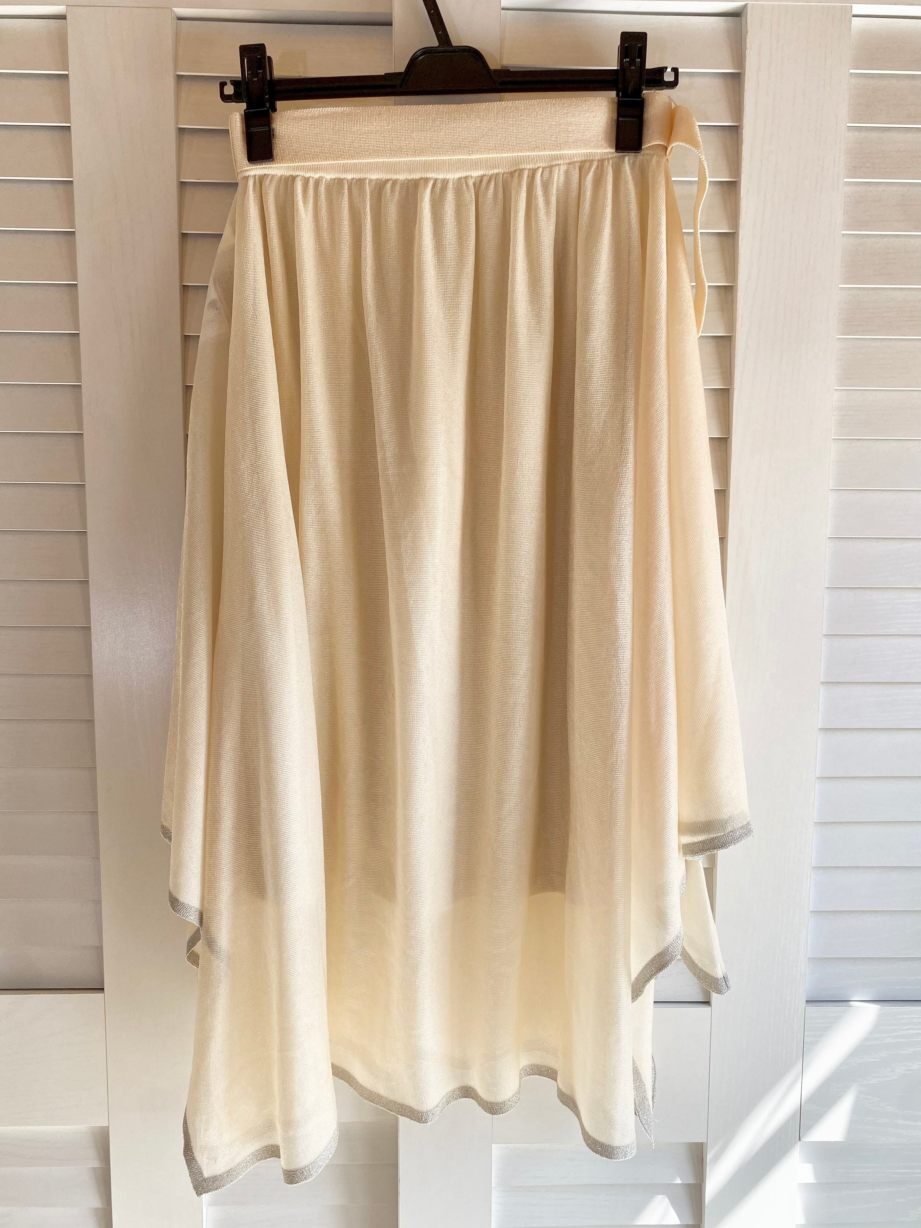 #89 Lily Brown イレギュラーヘムシルバーライン ナイロンニットシアーロングスカート クリームベージュ